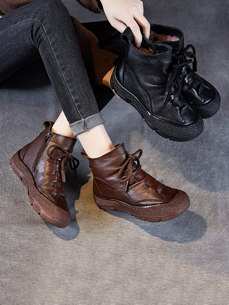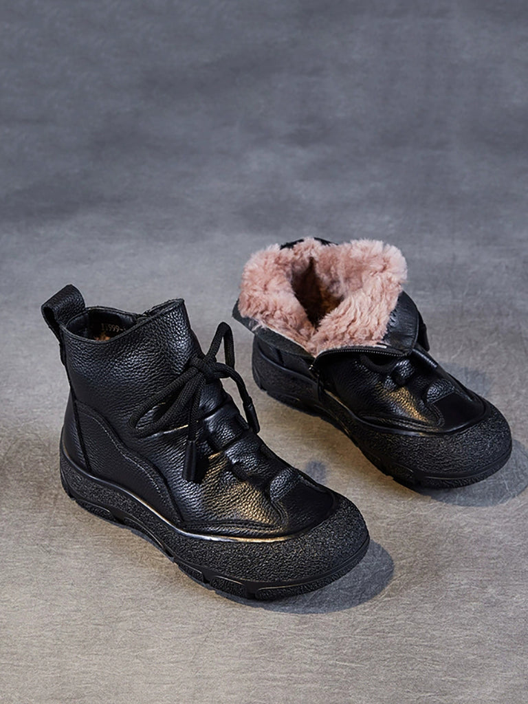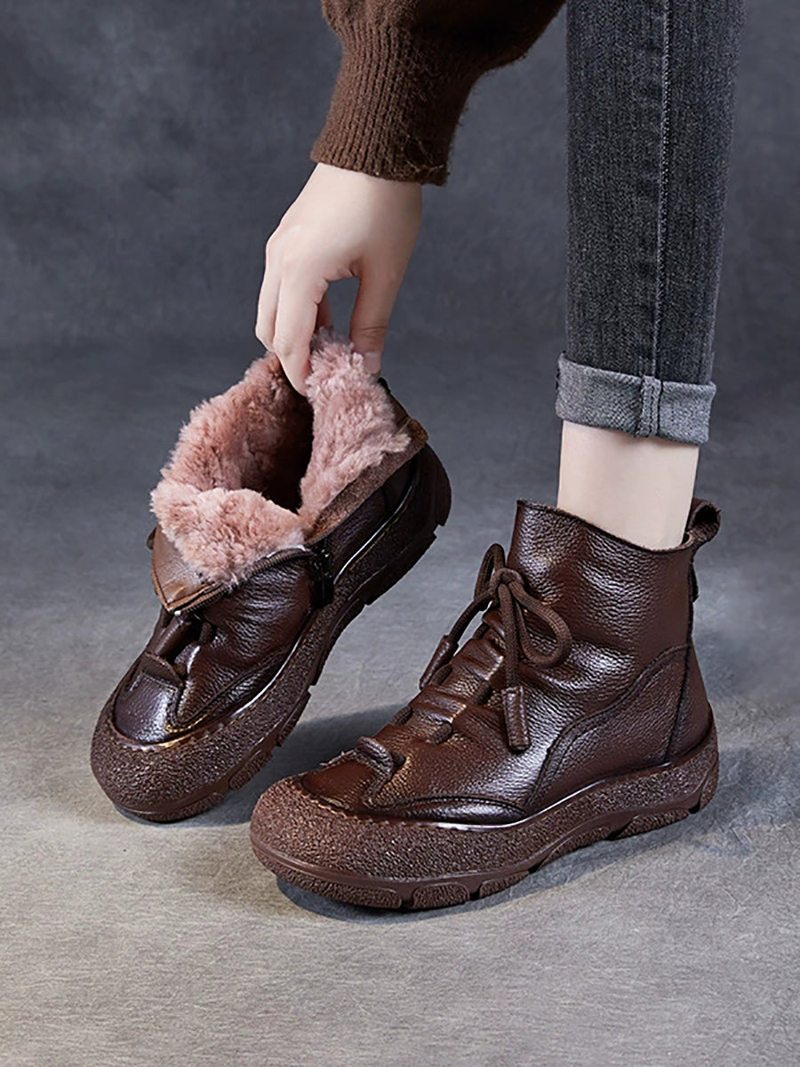 Botas de invierno de piel auténtica con forro polar para mujer