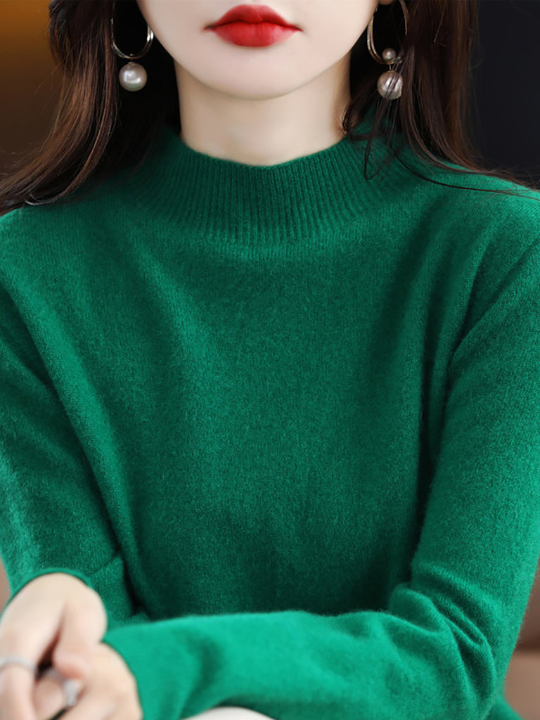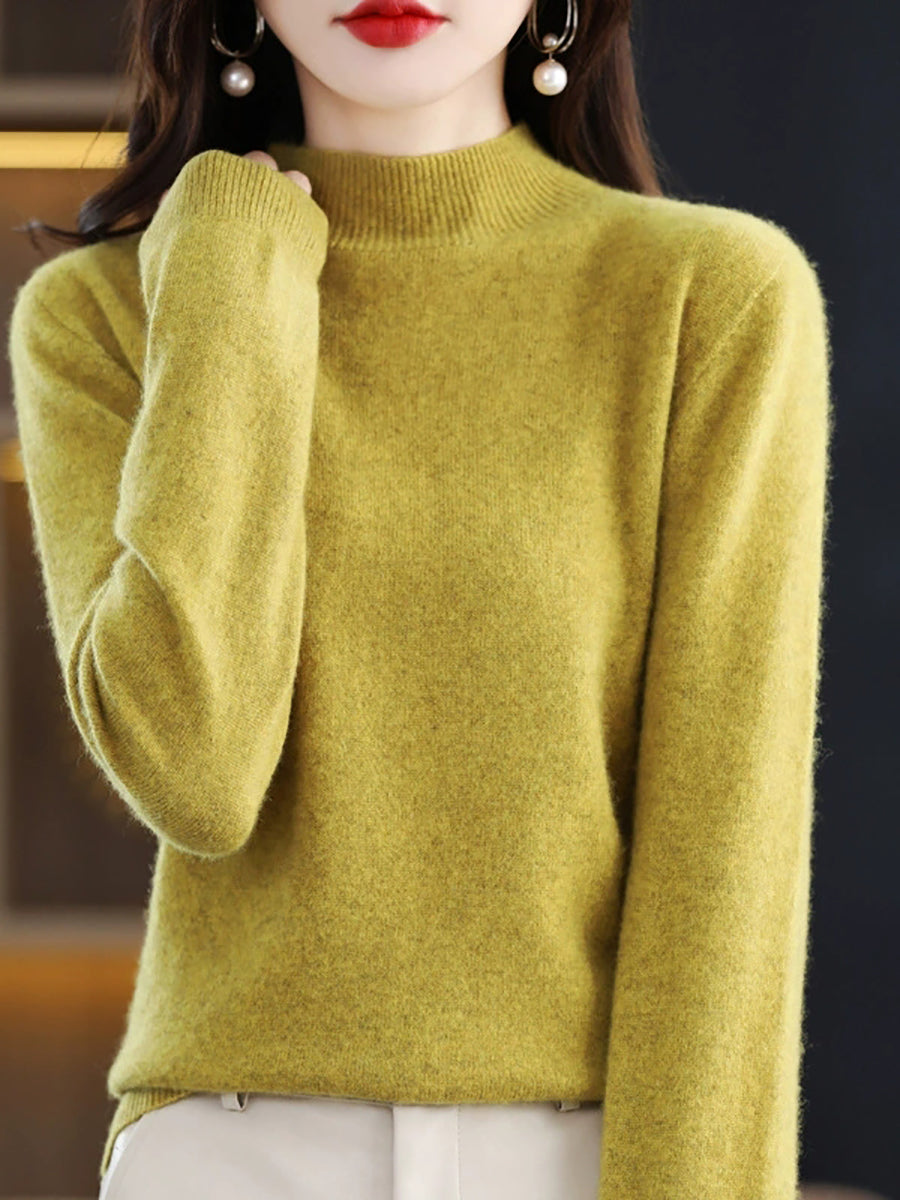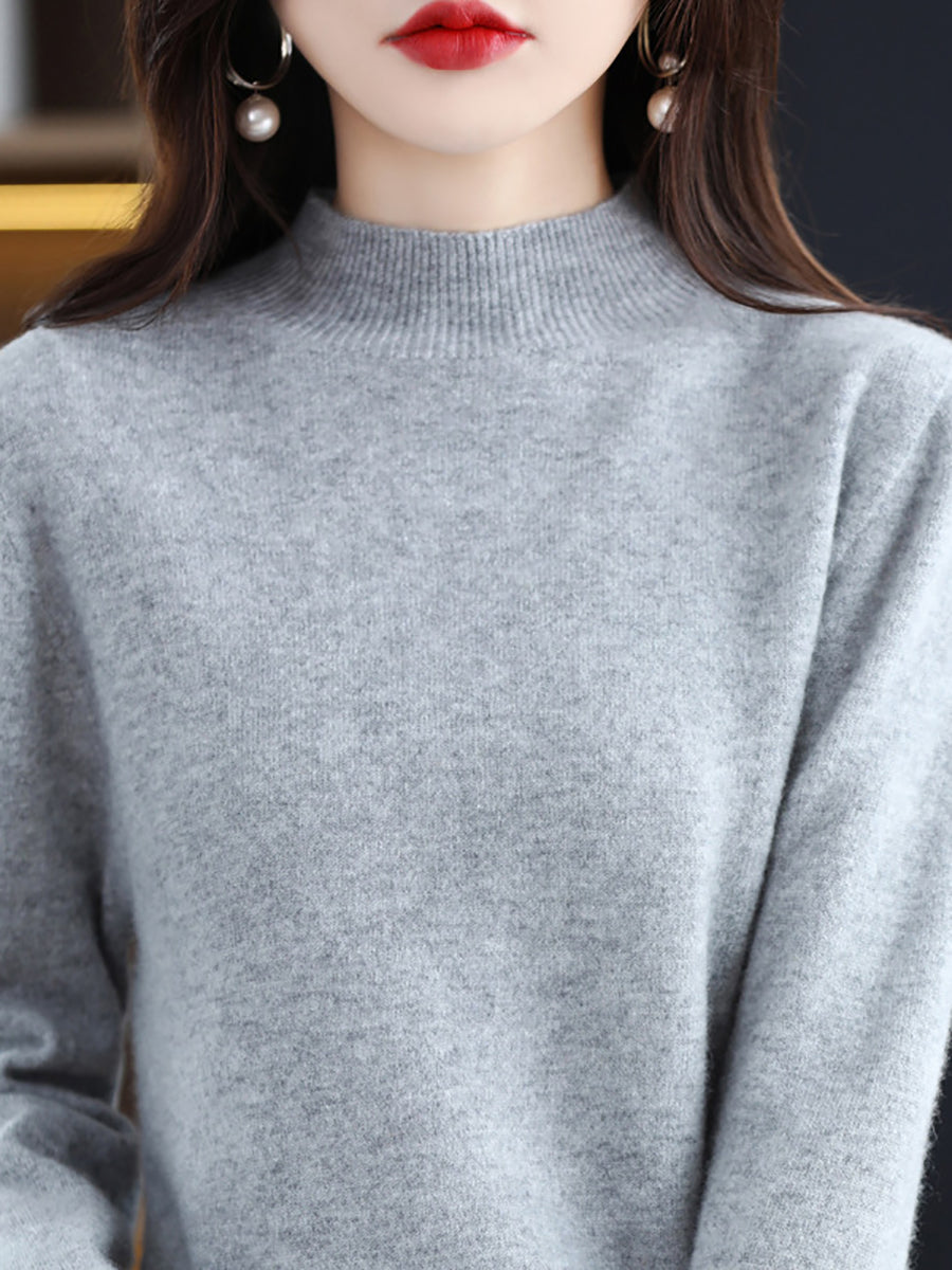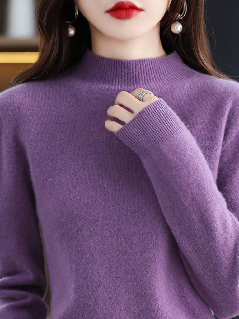Suéter de lana de punto con cuello alto medio de invierno para mujer