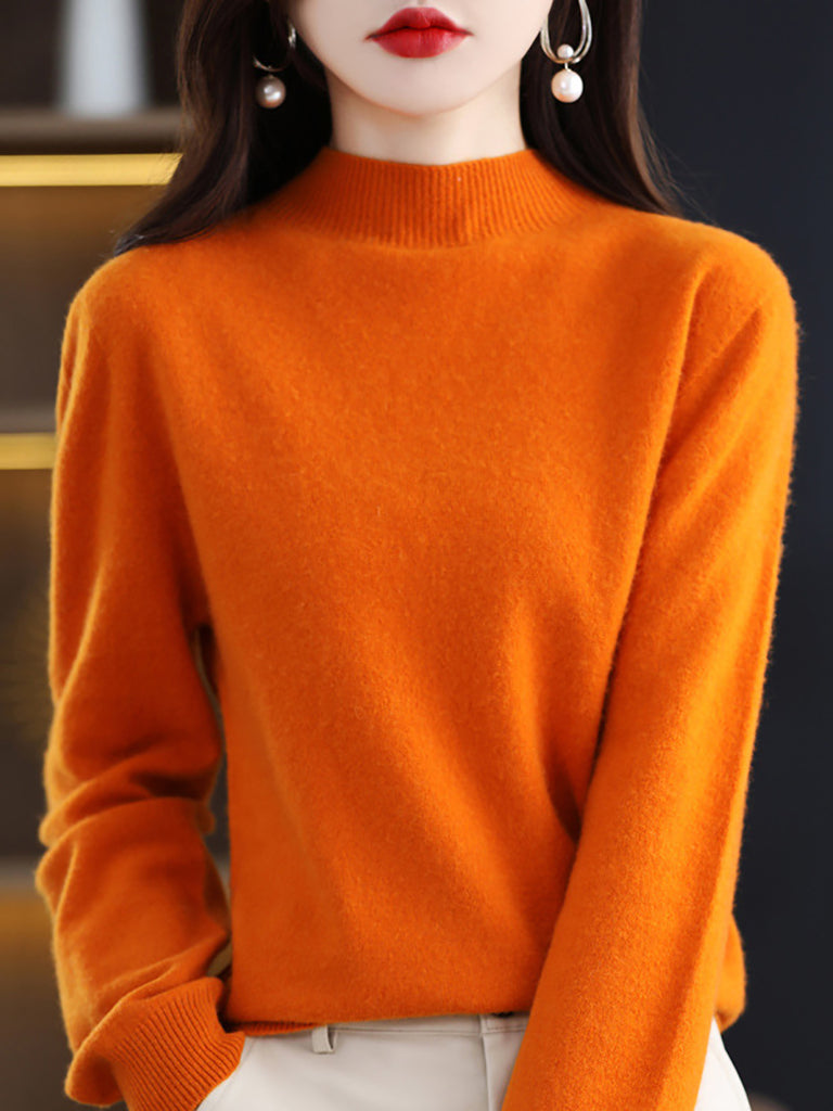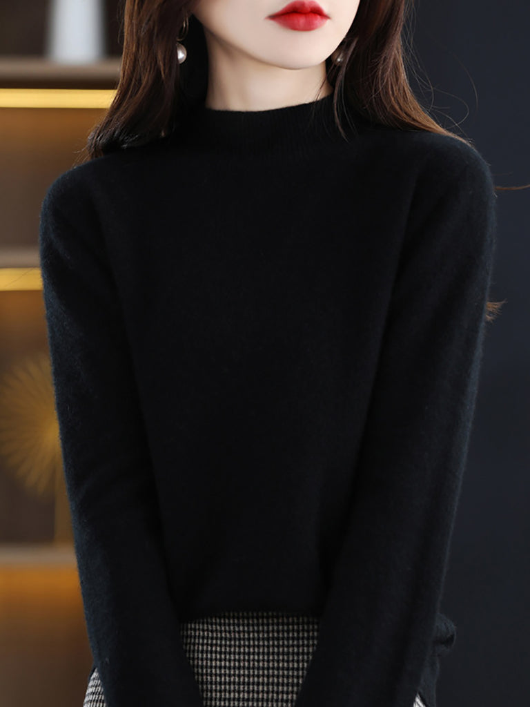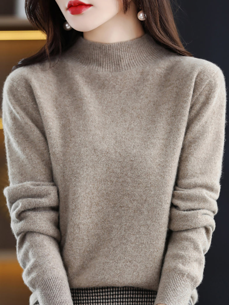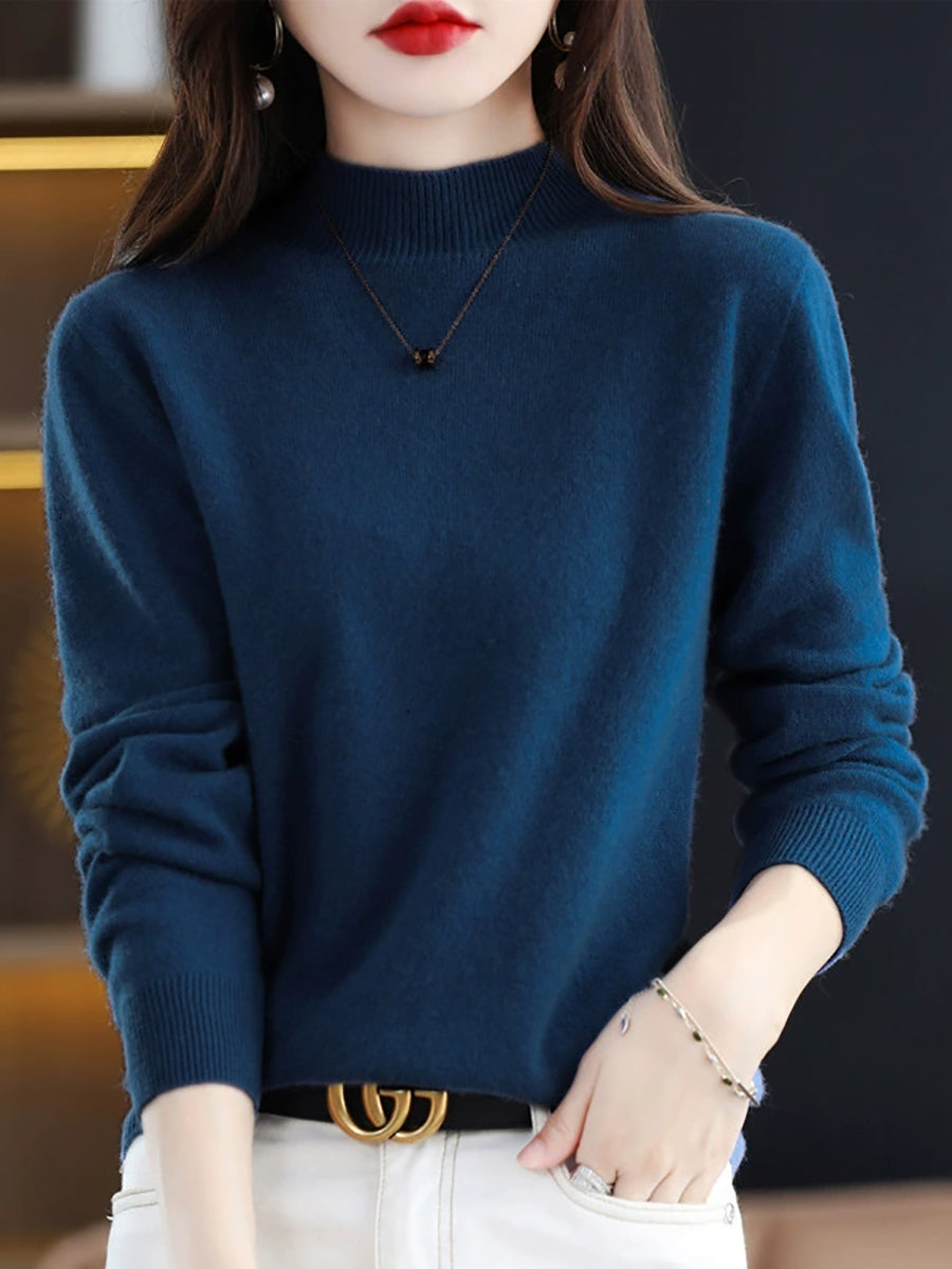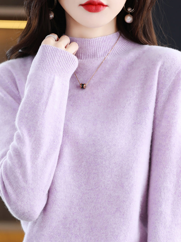 Suéter de lana de punto con cuello alto medio de invierno para mujer