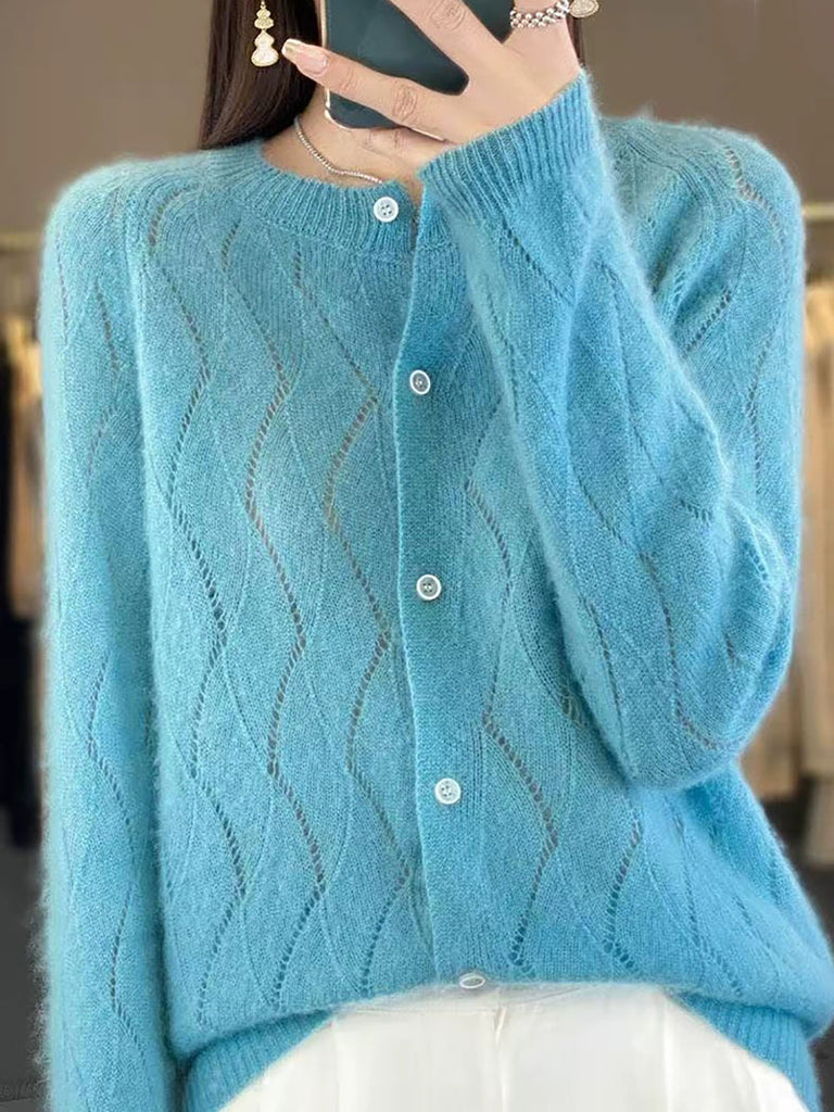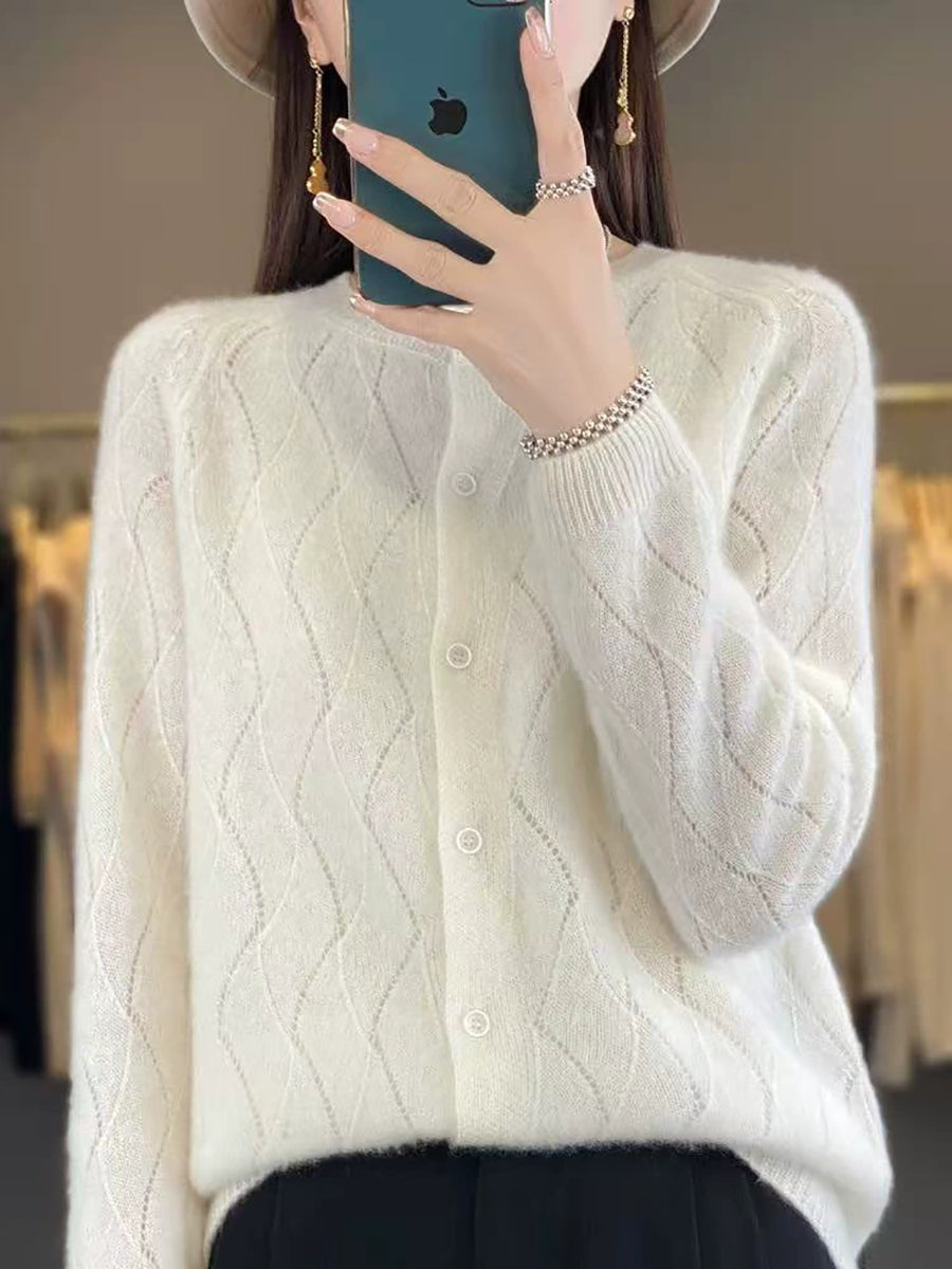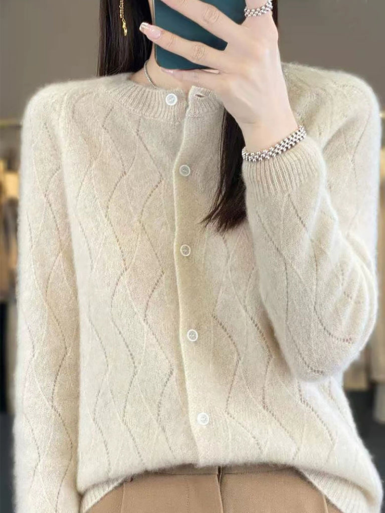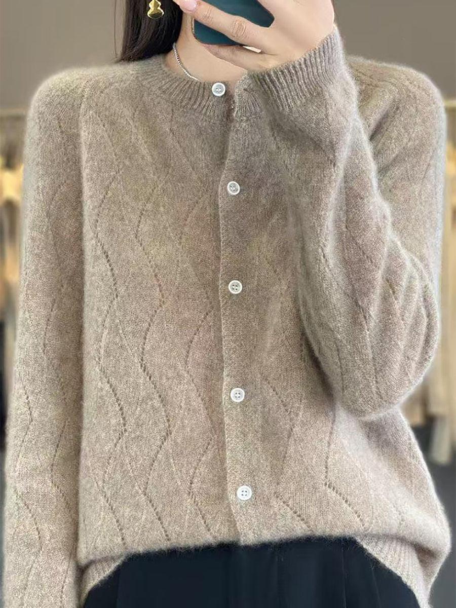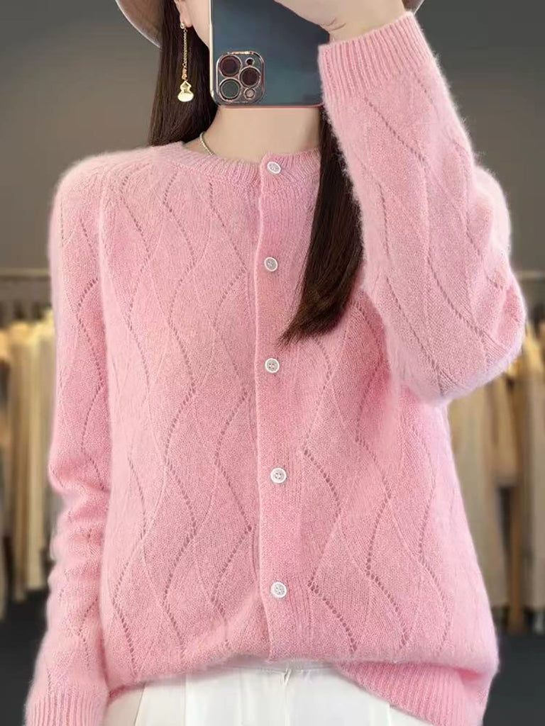Suéter tipo cárdigan de punto con cuello redondo y color puro de invierno para mujer