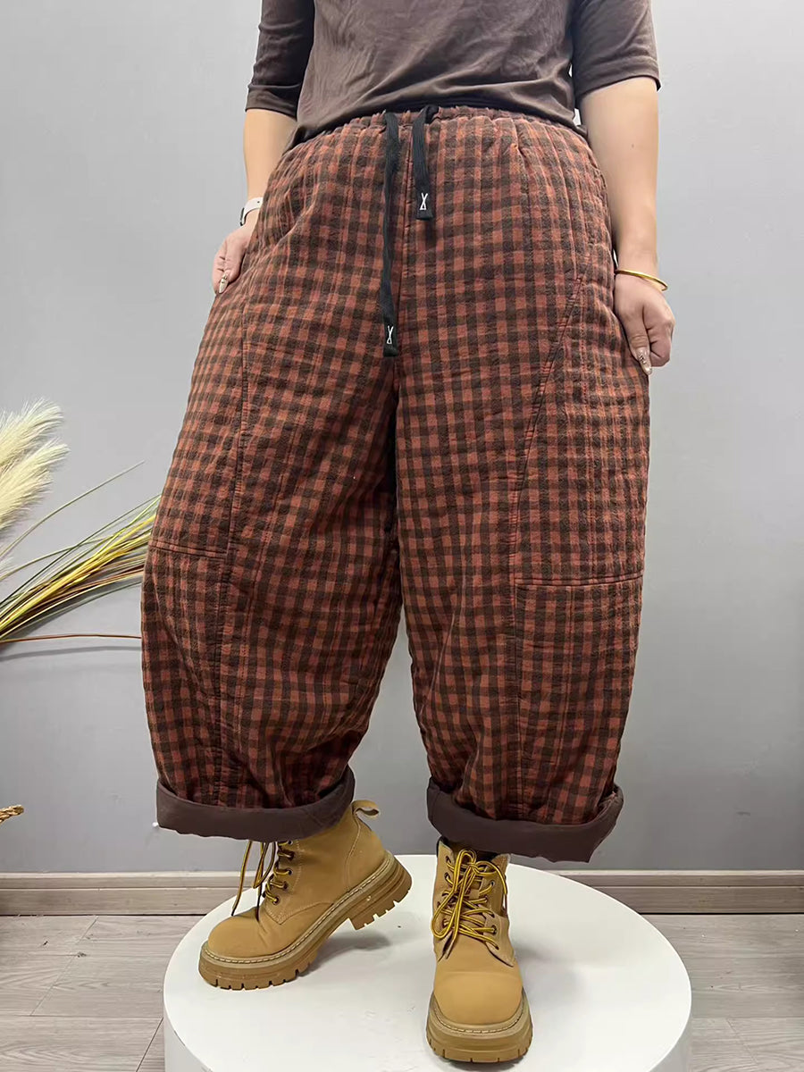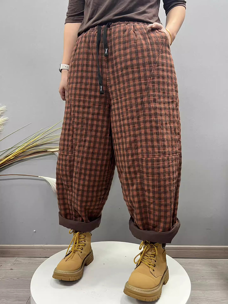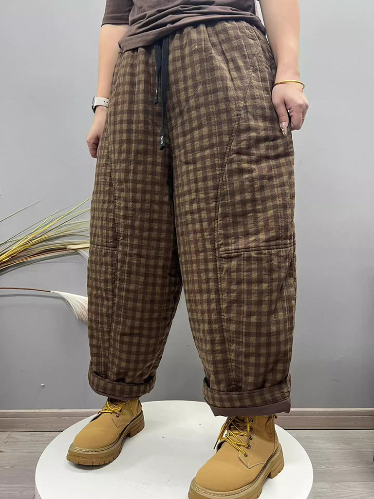 Pantalones harén acolchados a cuadros retro de invierno para mujer