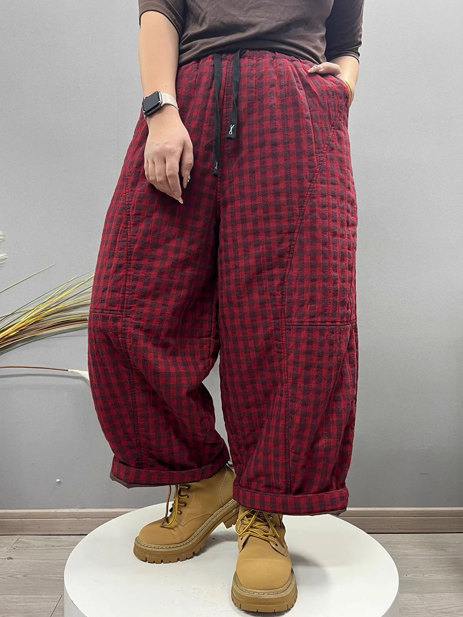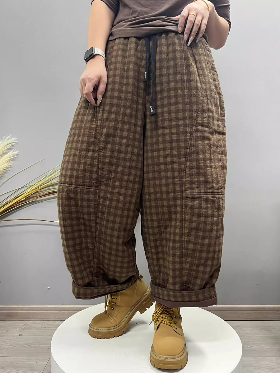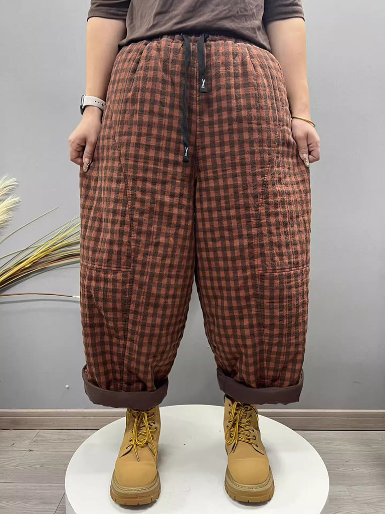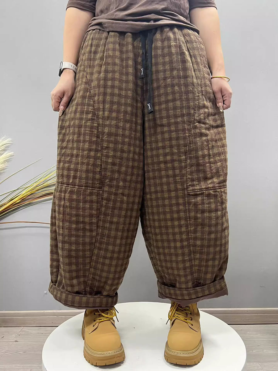 Pantalones harén acolchados a cuadros retro de invierno para mujer