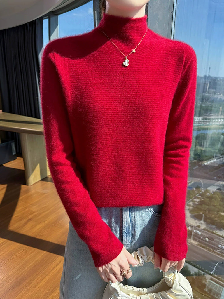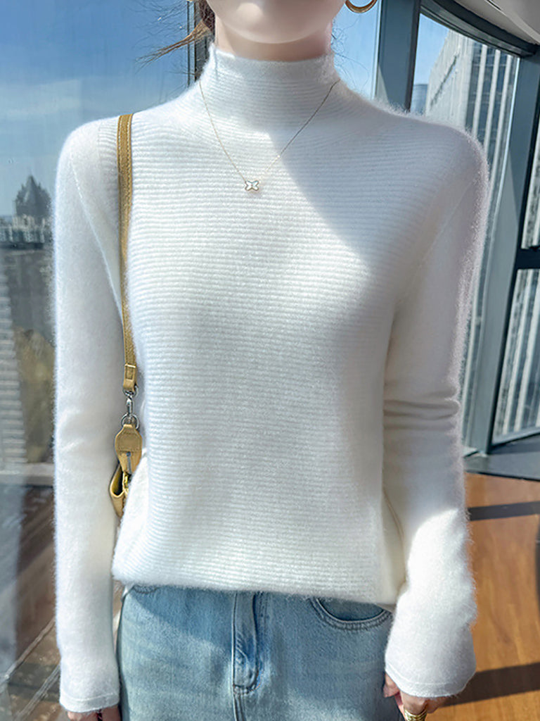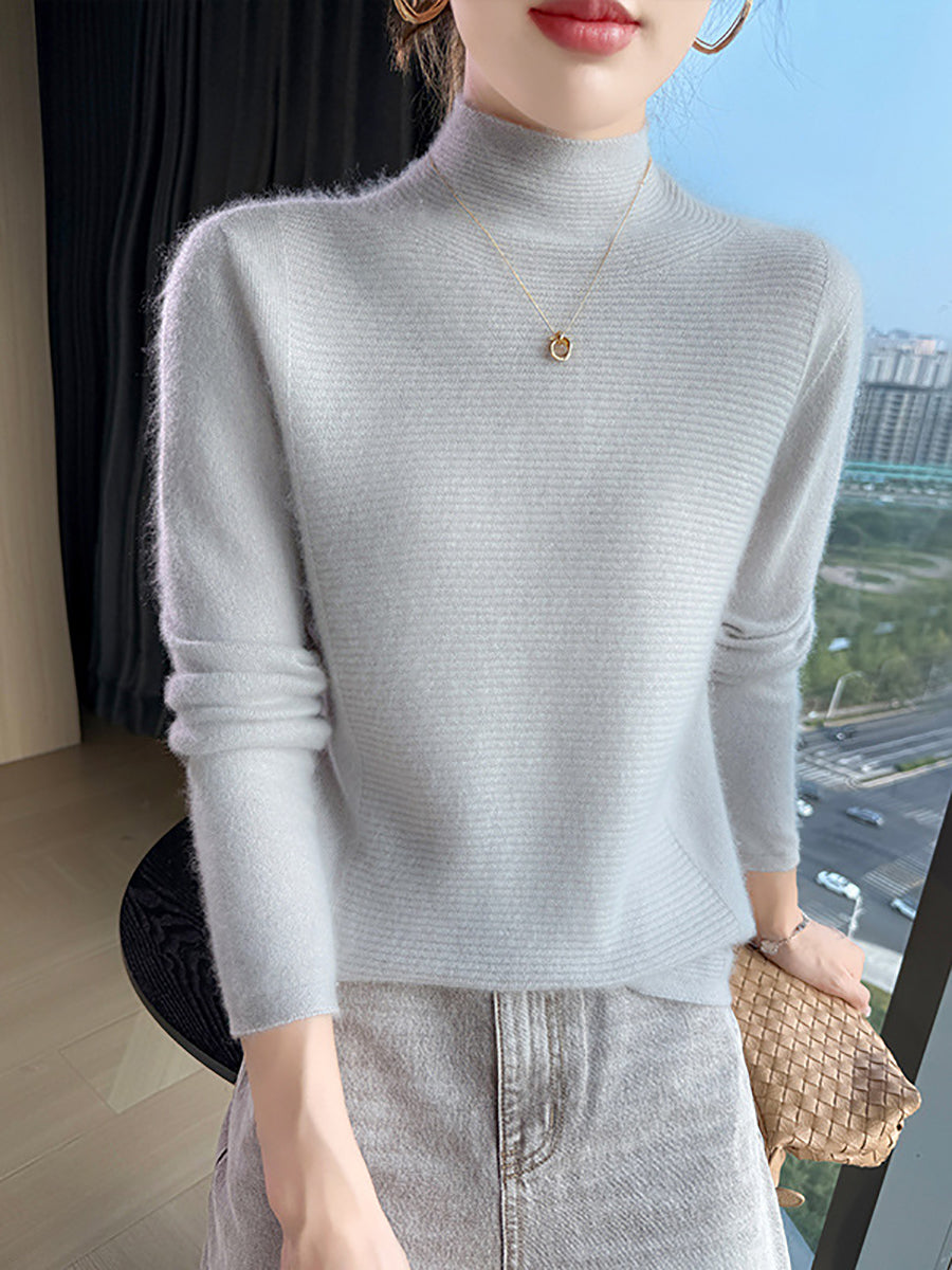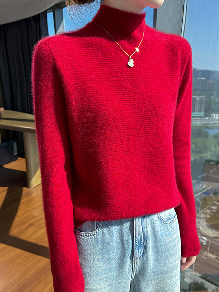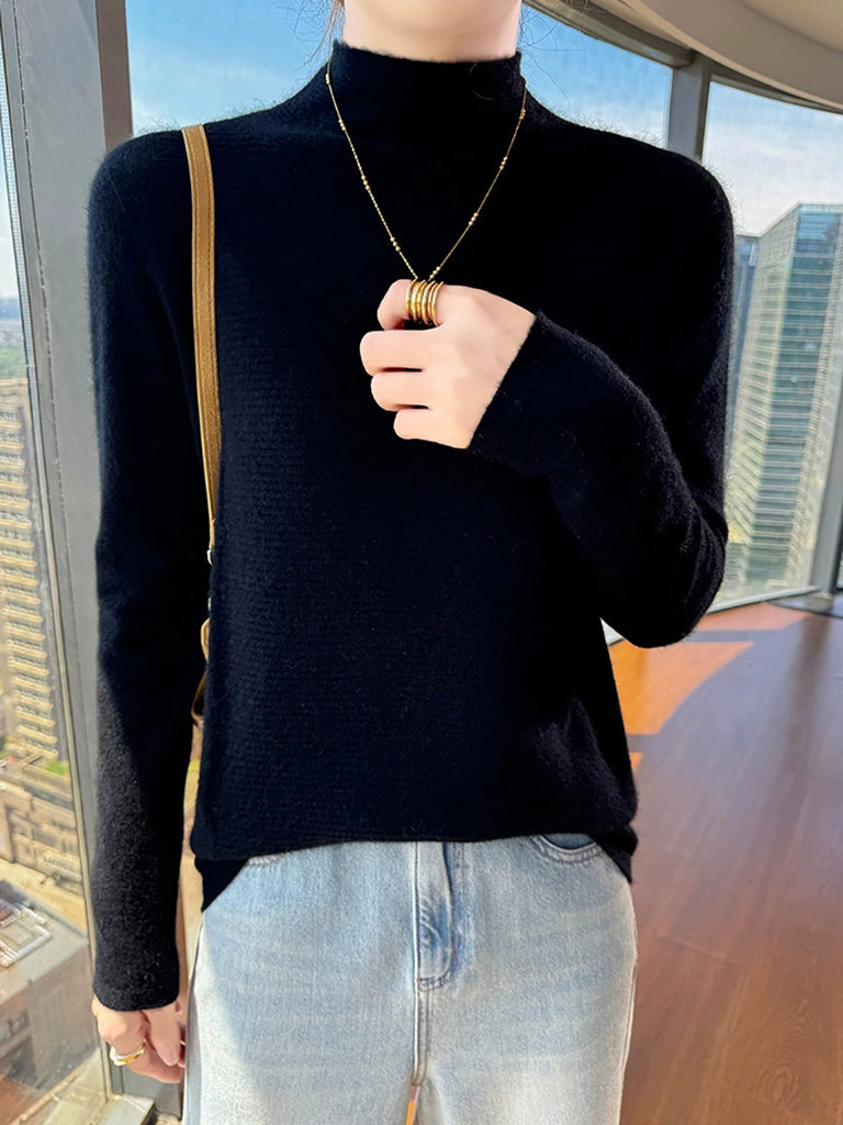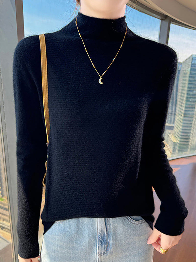 Suéter de cuello alto medio de color puro y artístico de otoño para mujer