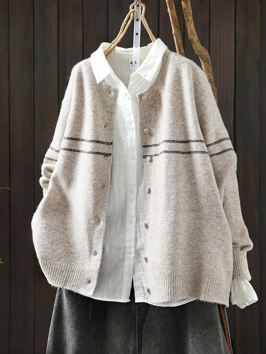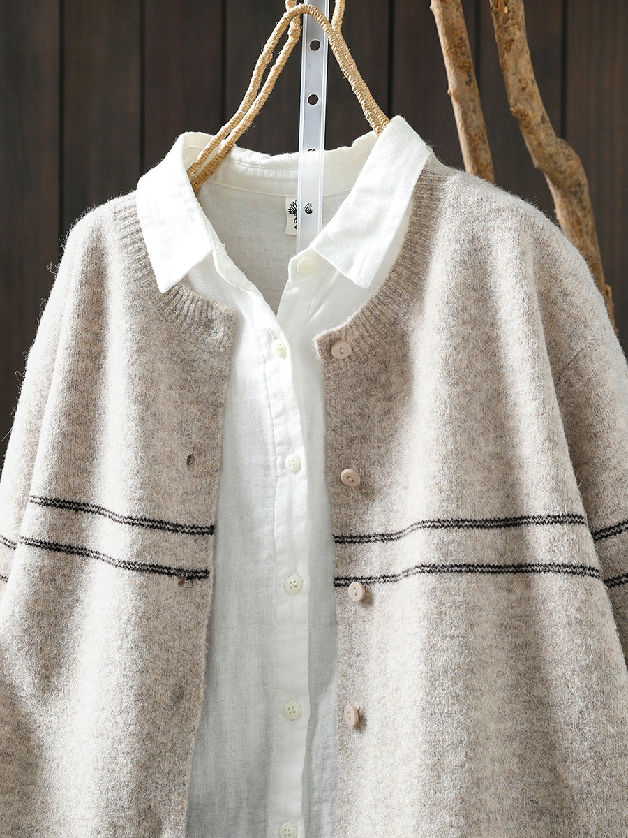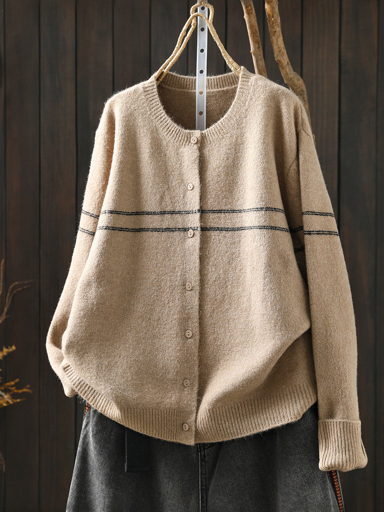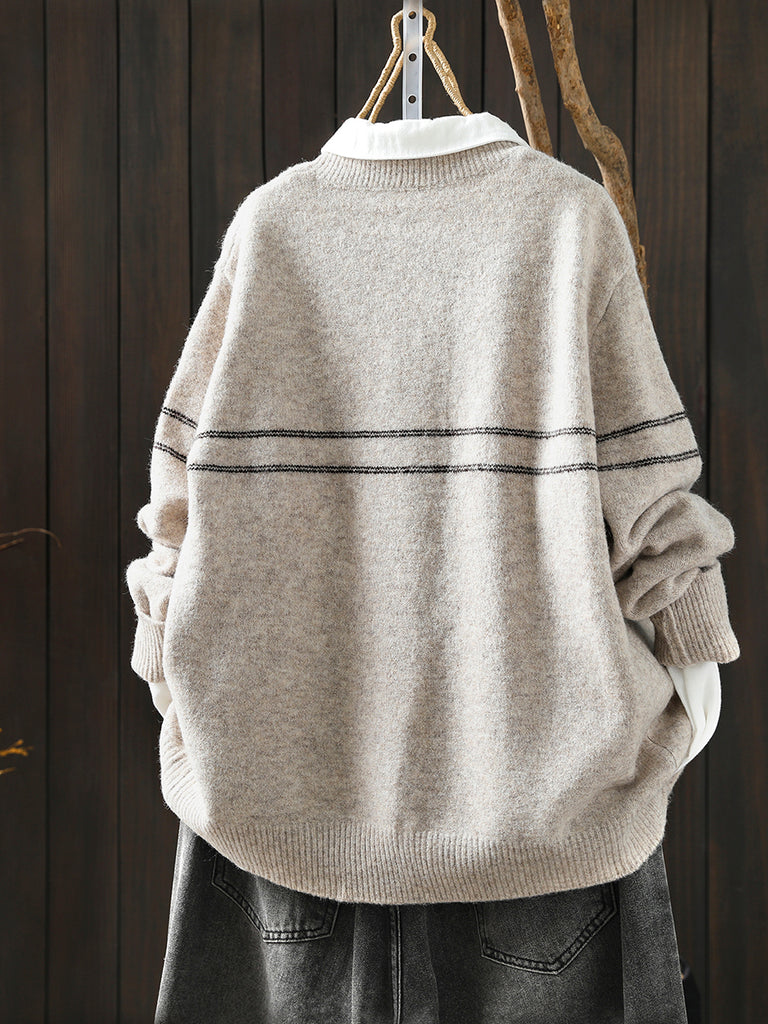 Suéter de punto con cuello redondo y rayas artísticas de otoño para mujer
