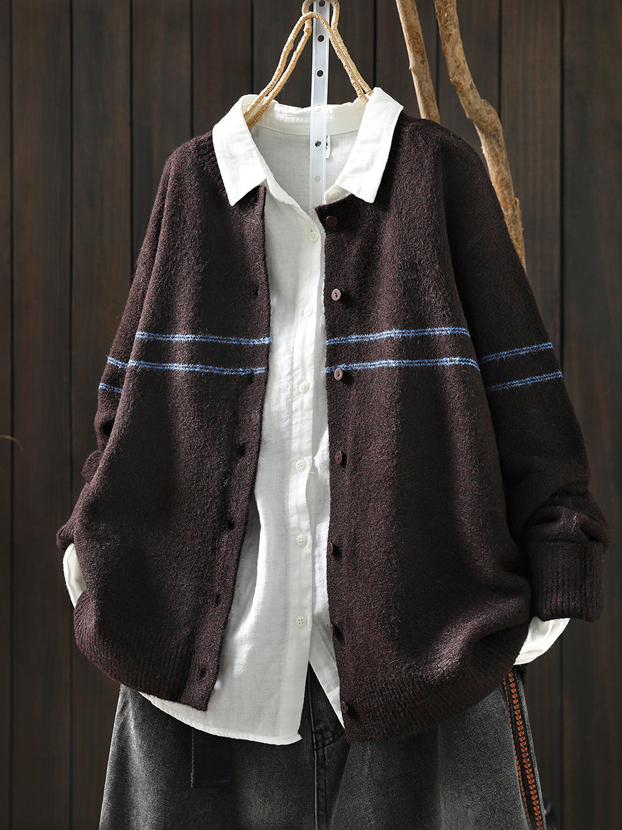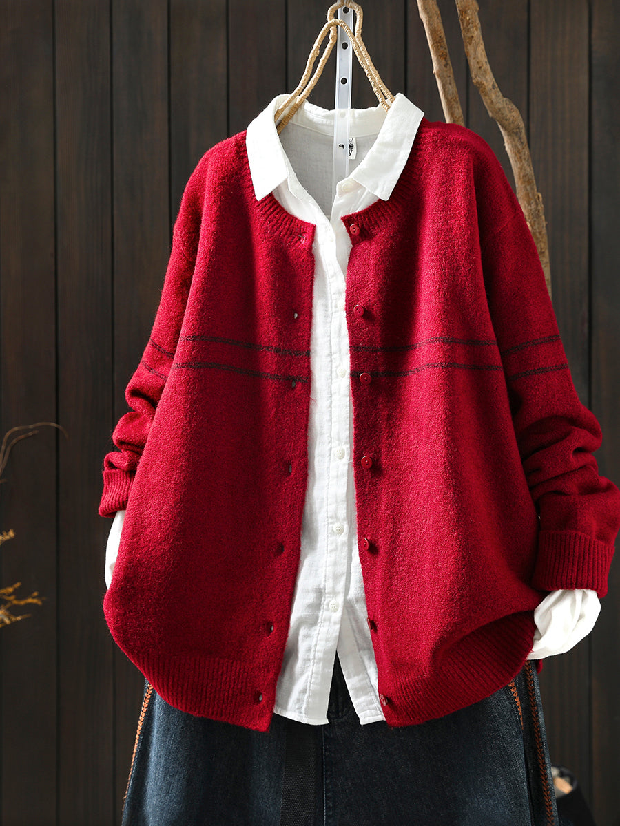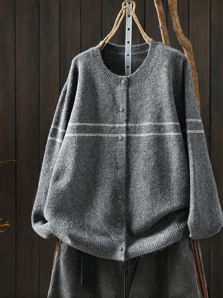 Suéter de punto con cuello redondo y rayas artísticas de otoño para mujer