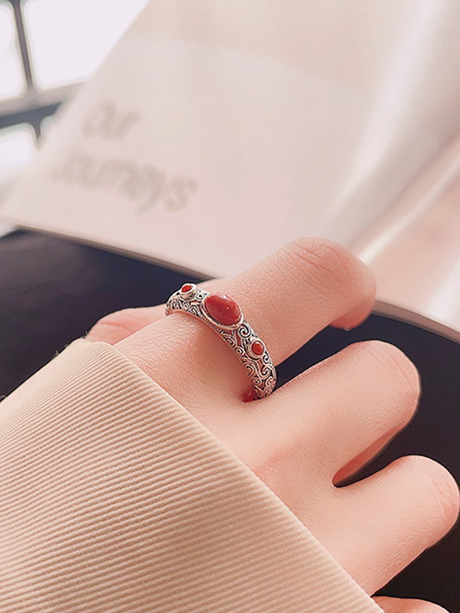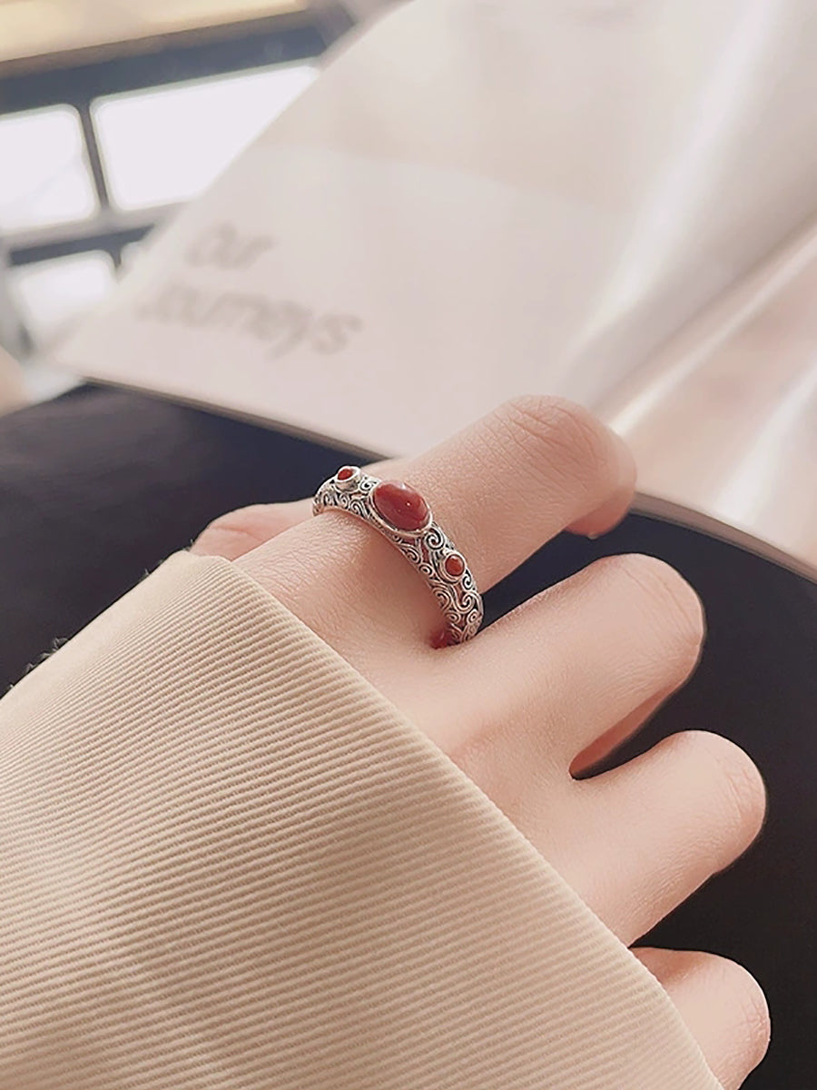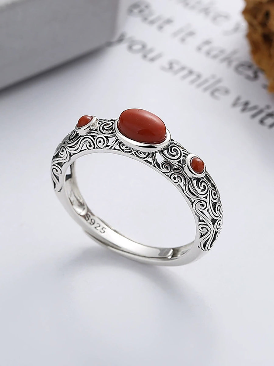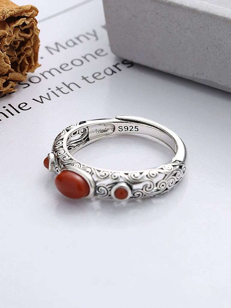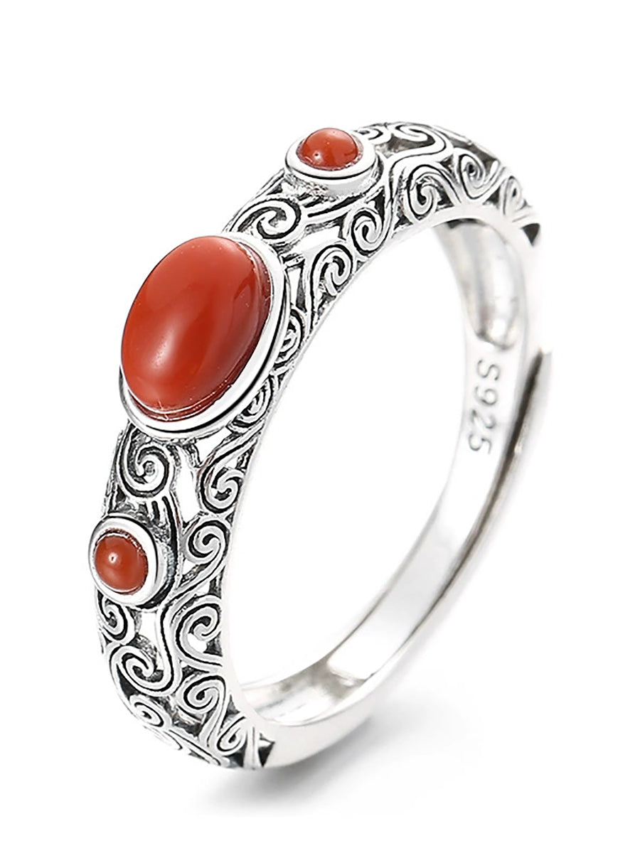 Anillo ajustable vintage de ágata roja en plata S925 para mujer