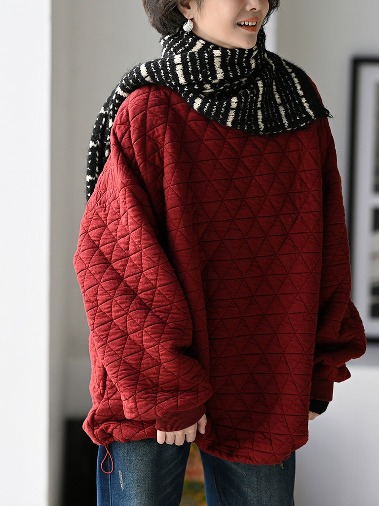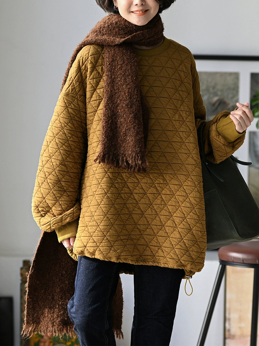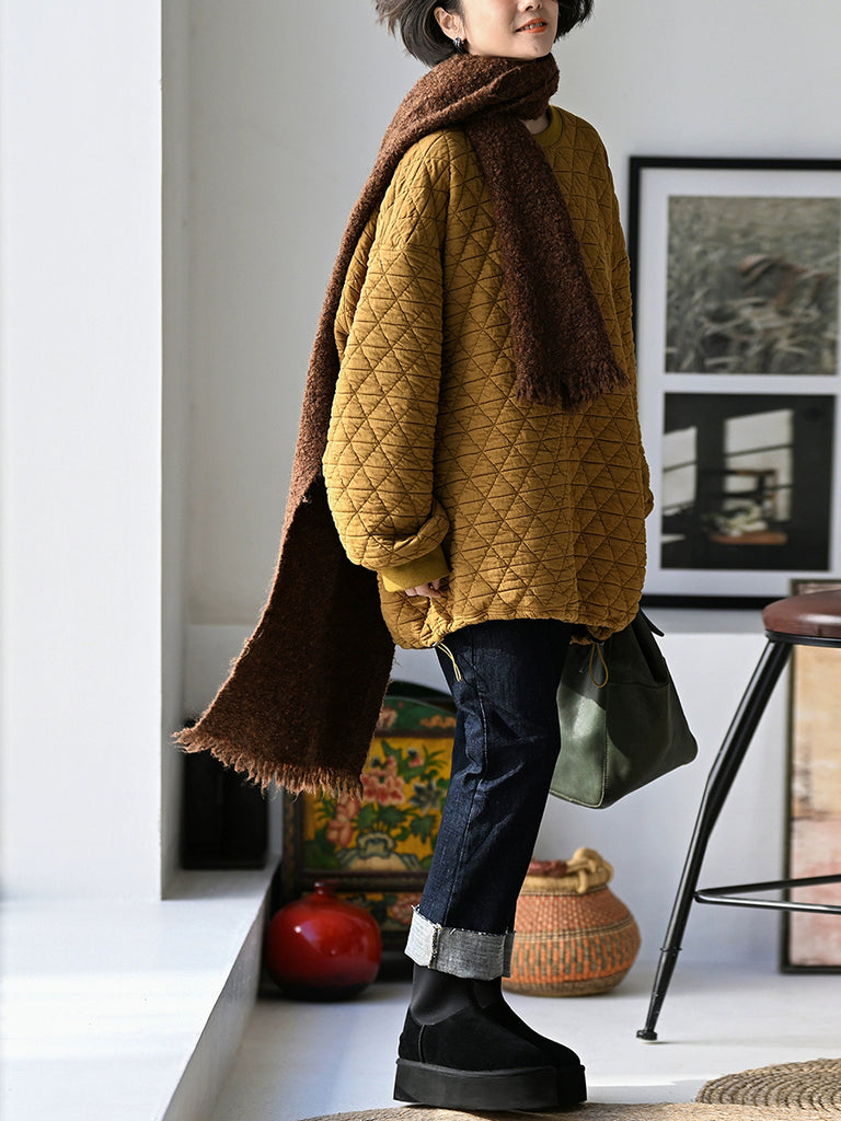 Abrigo acolchado de cuello redondo de color puro y artístico de invierno para mujer