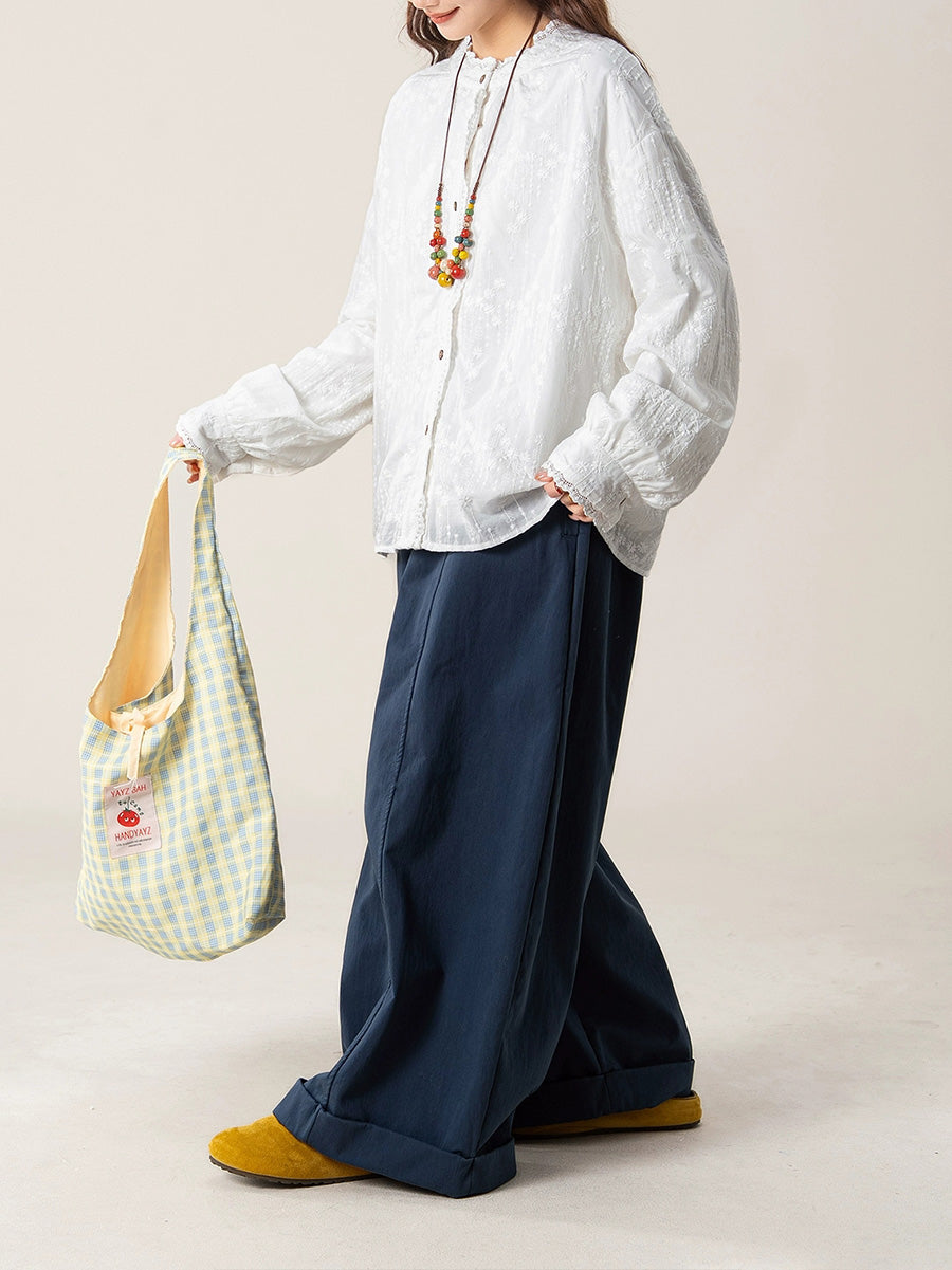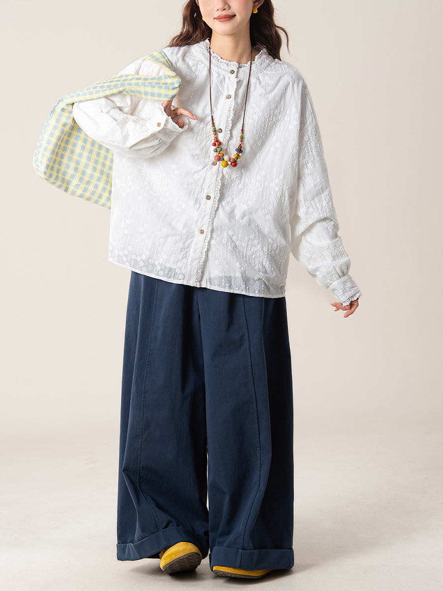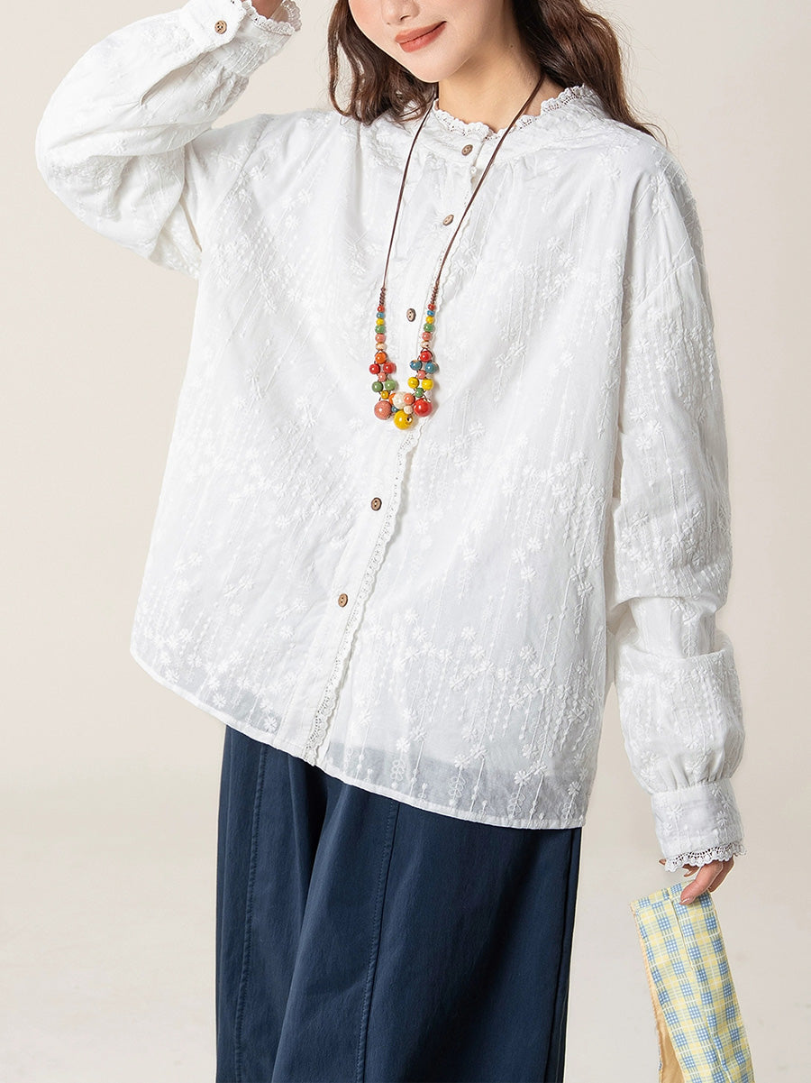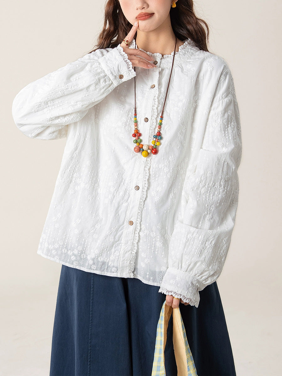 Camisa de cuello alto con bordado artístico de otoño para mujer