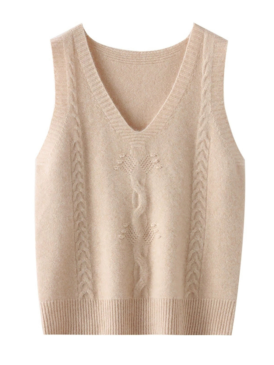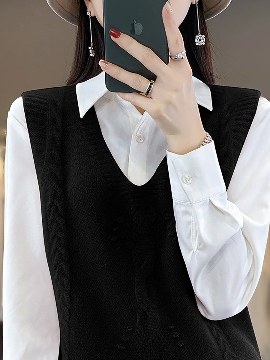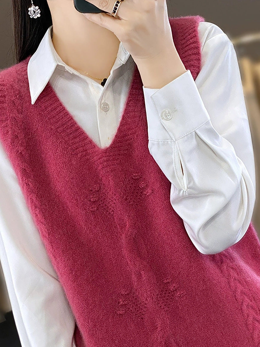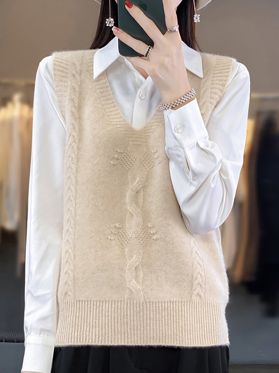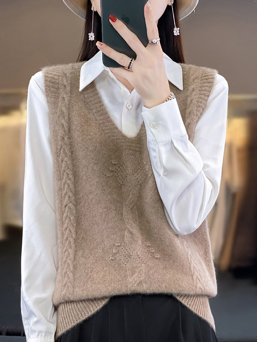 Chaleco de punto con cuello en V y jacquard artístico de otoño para mujer