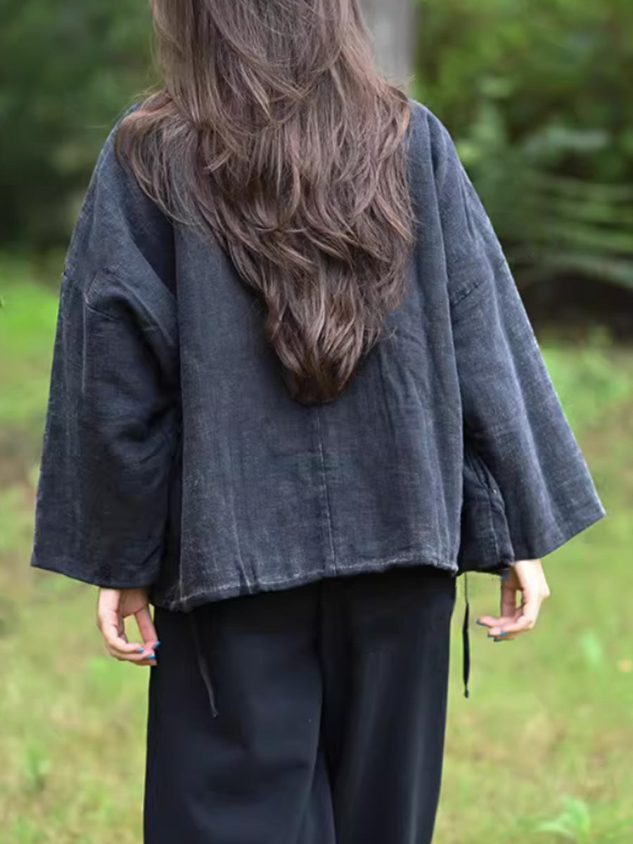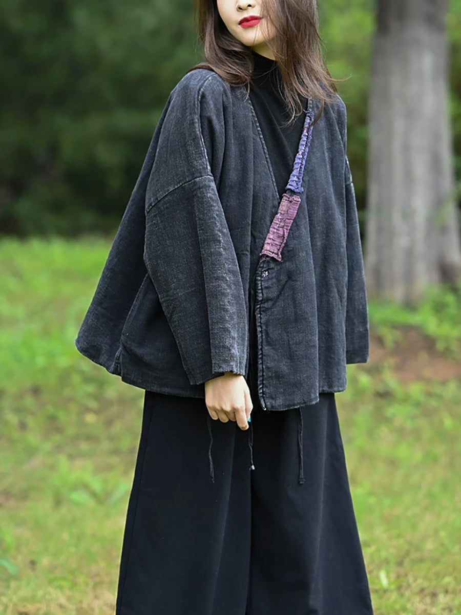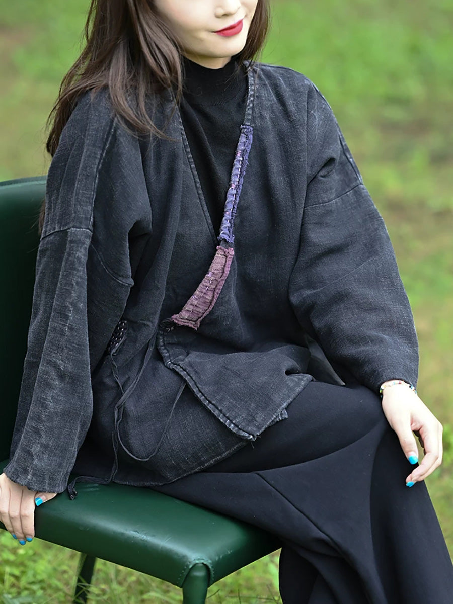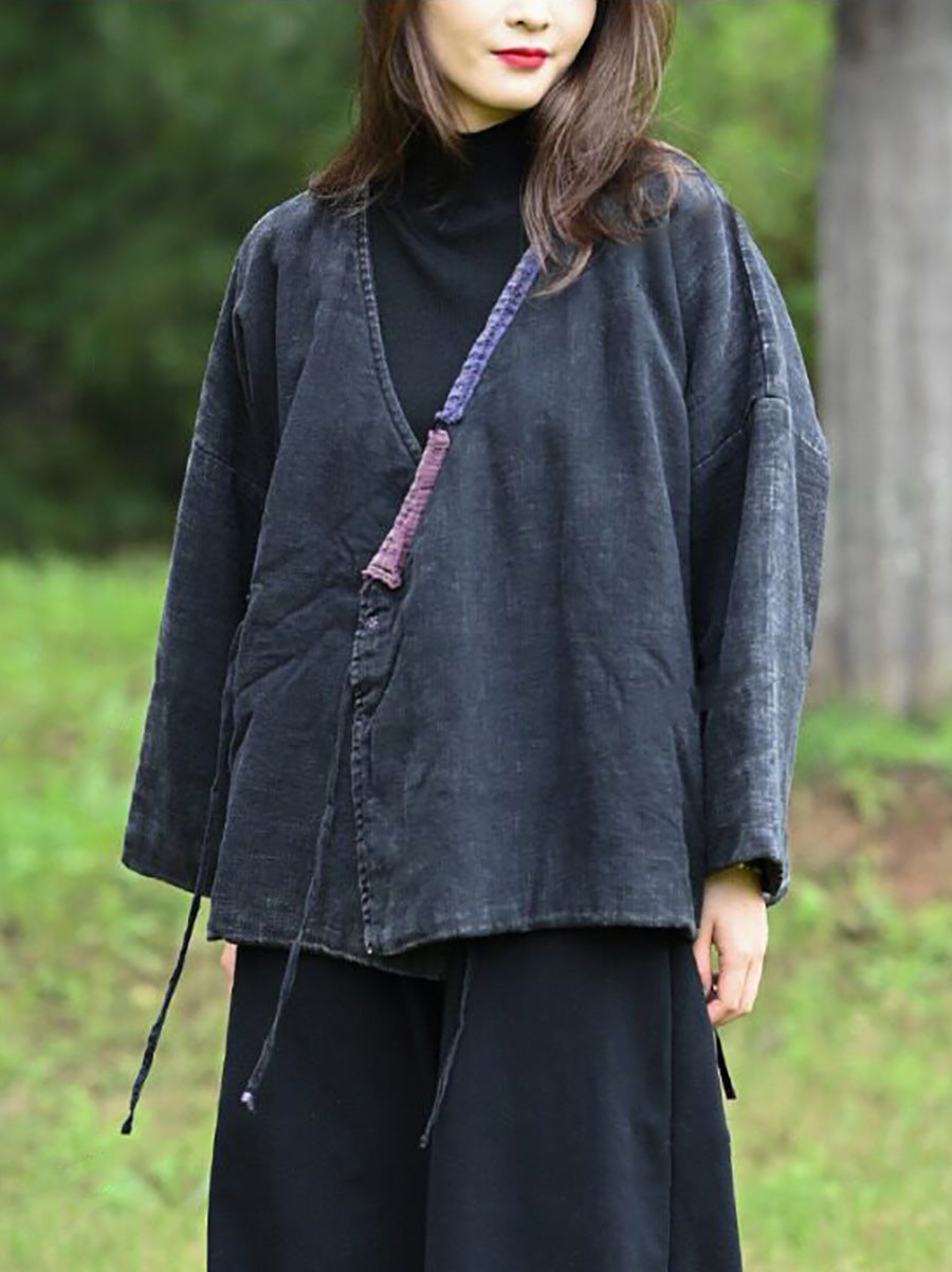 Abrigo retro de invierno con cuello en V y patchwork para mujer