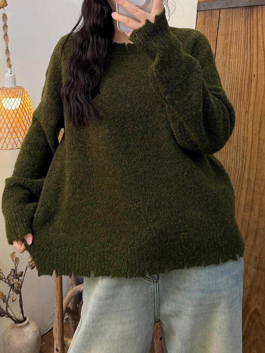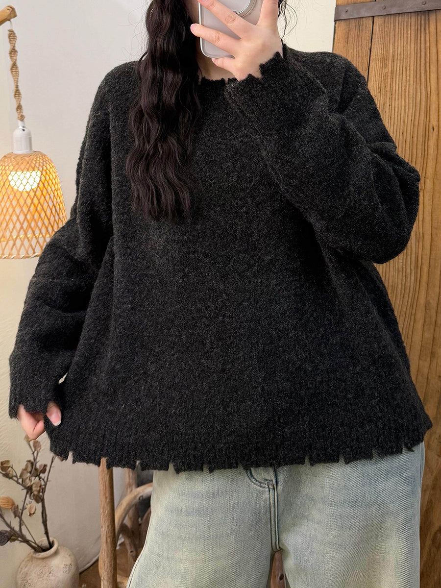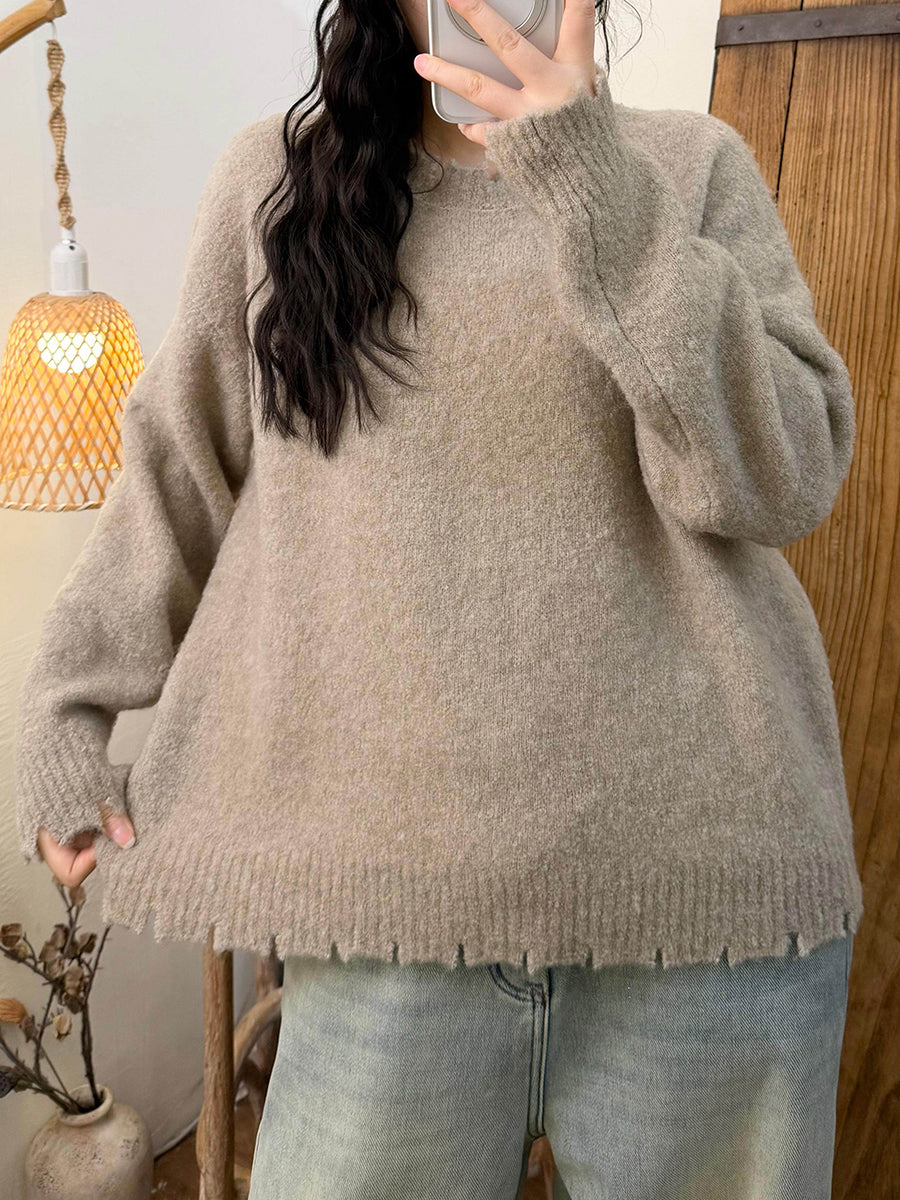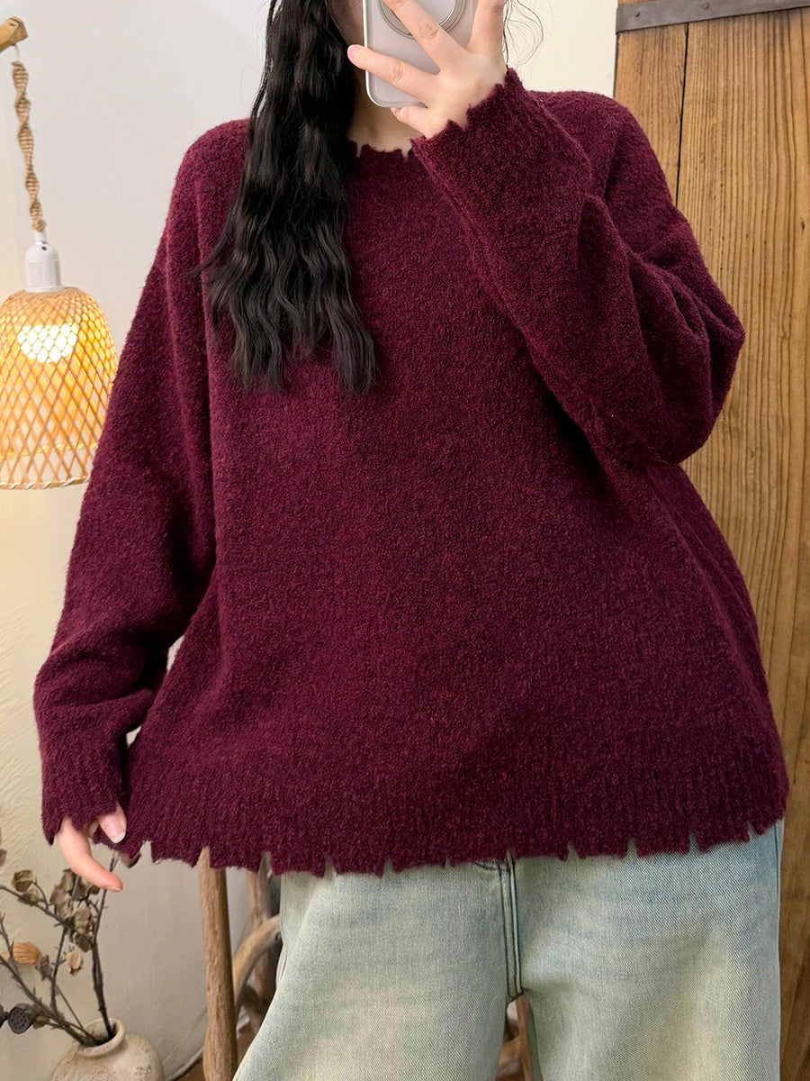 Suéter retro de invierno con cuello redondo y color puro para mujer