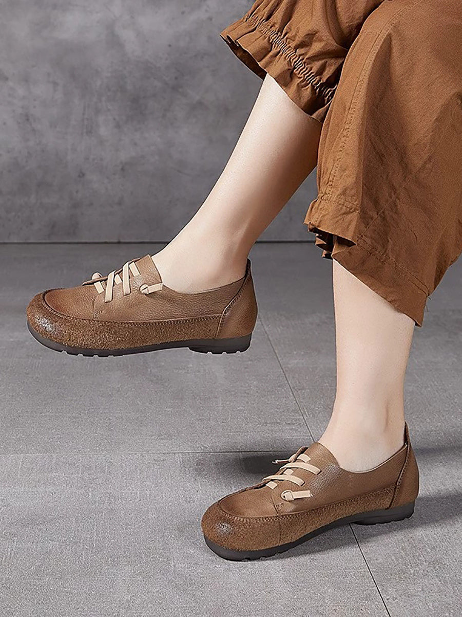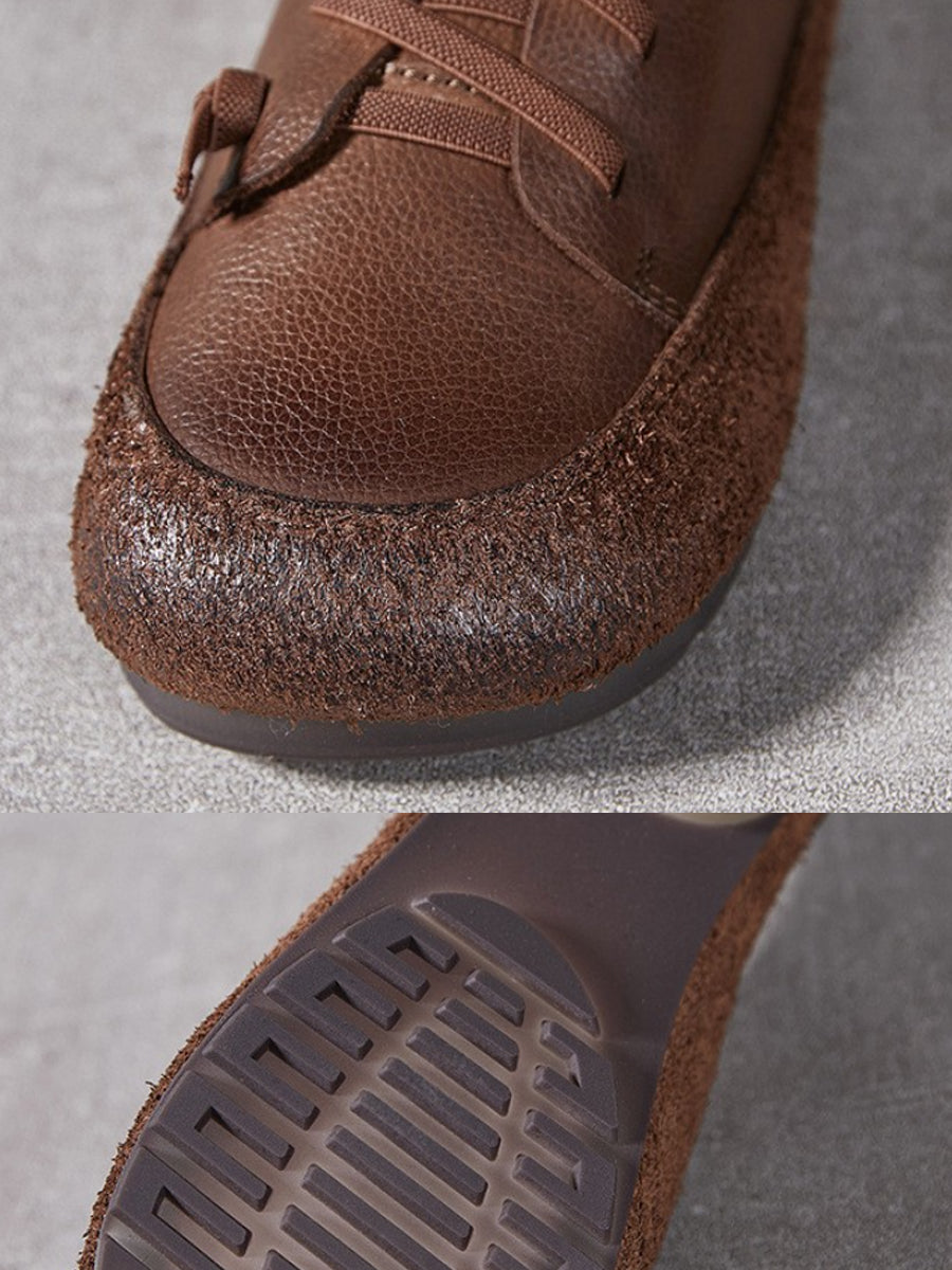 Zapatos de tacón bajo vintage de piel auténtica para mujer