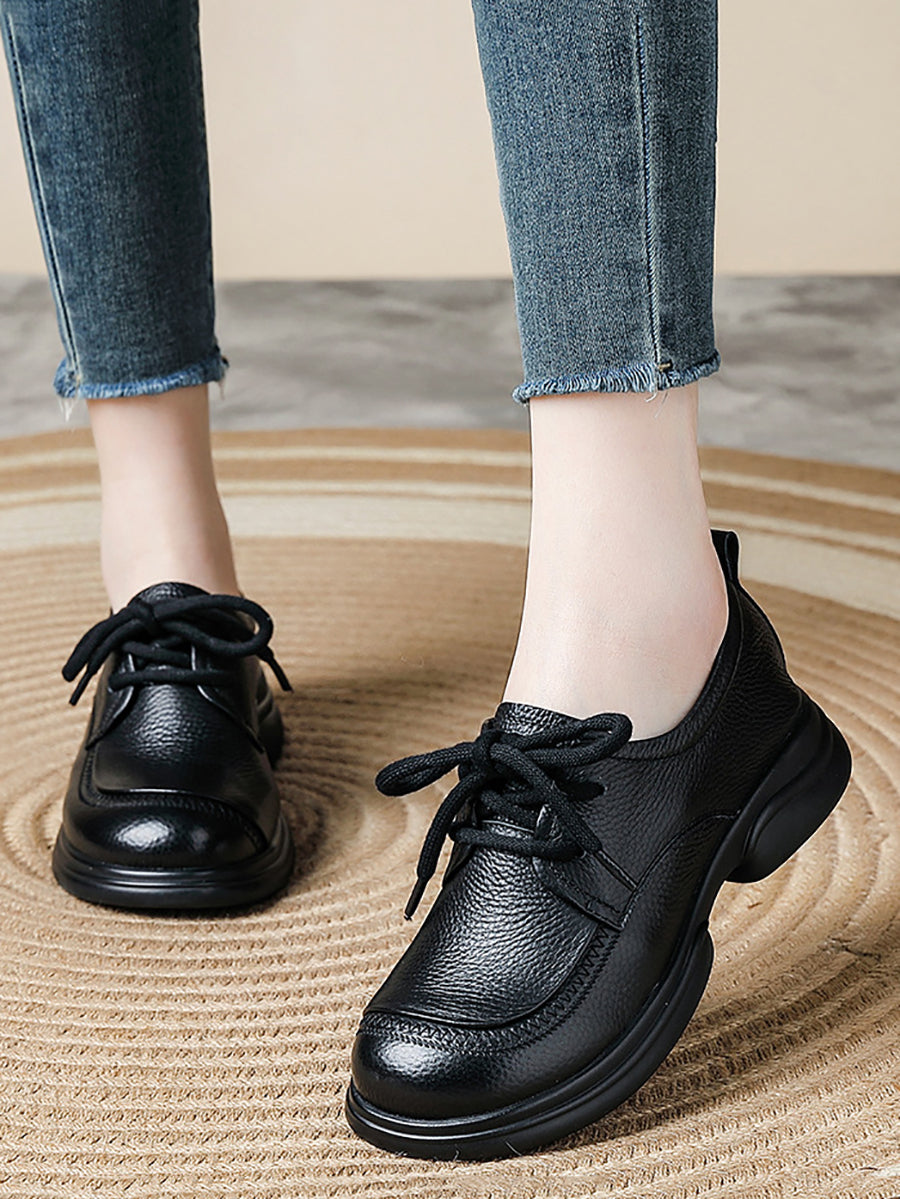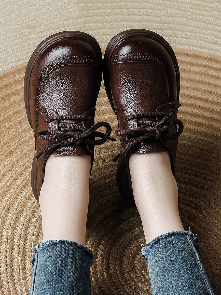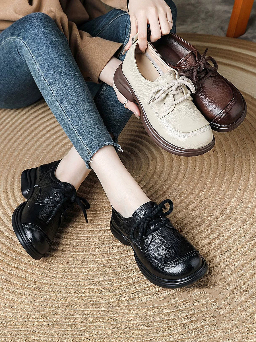Zapatos de tacón bajo de piel auténtica estilo retro de primavera para mujer