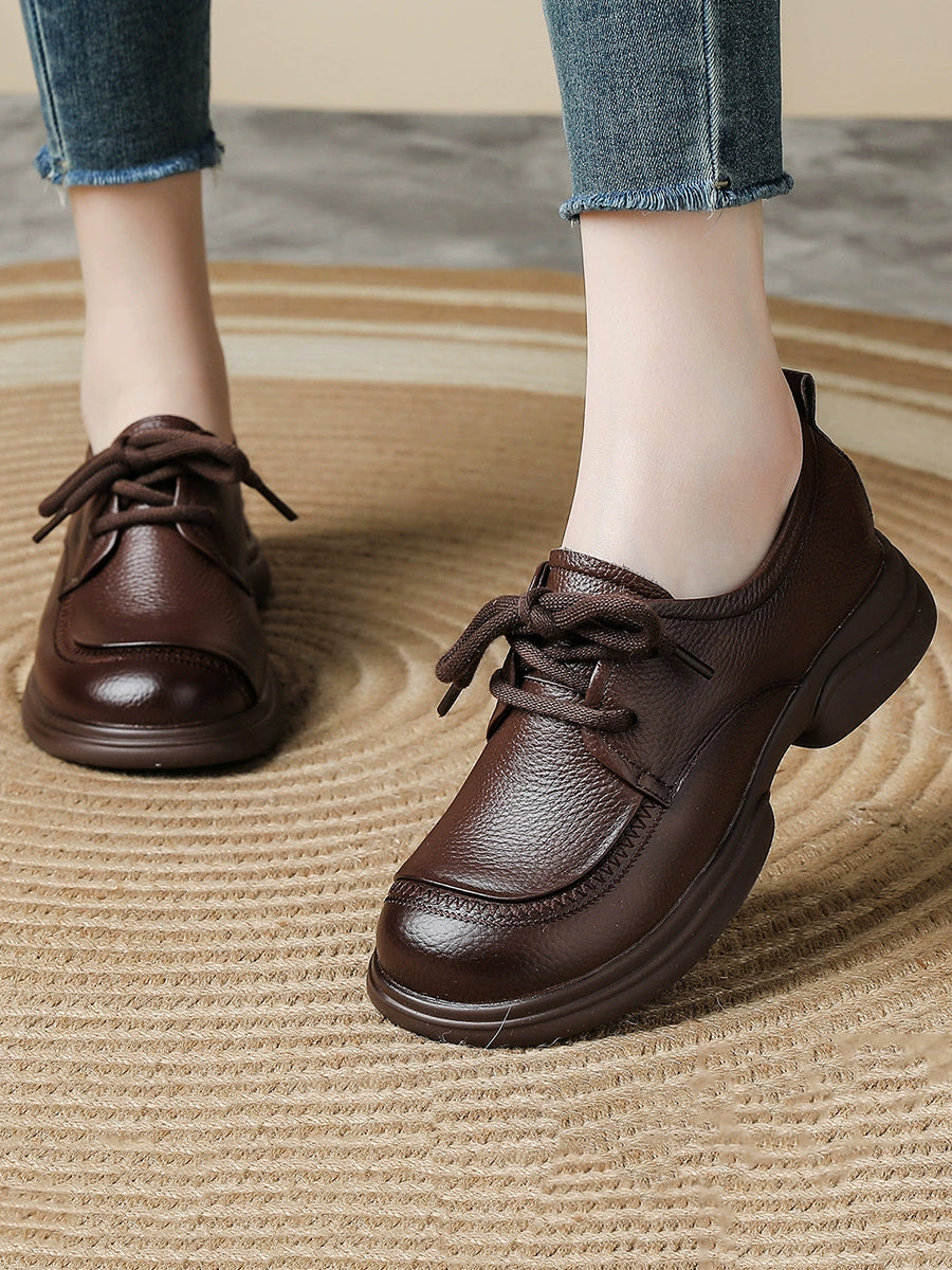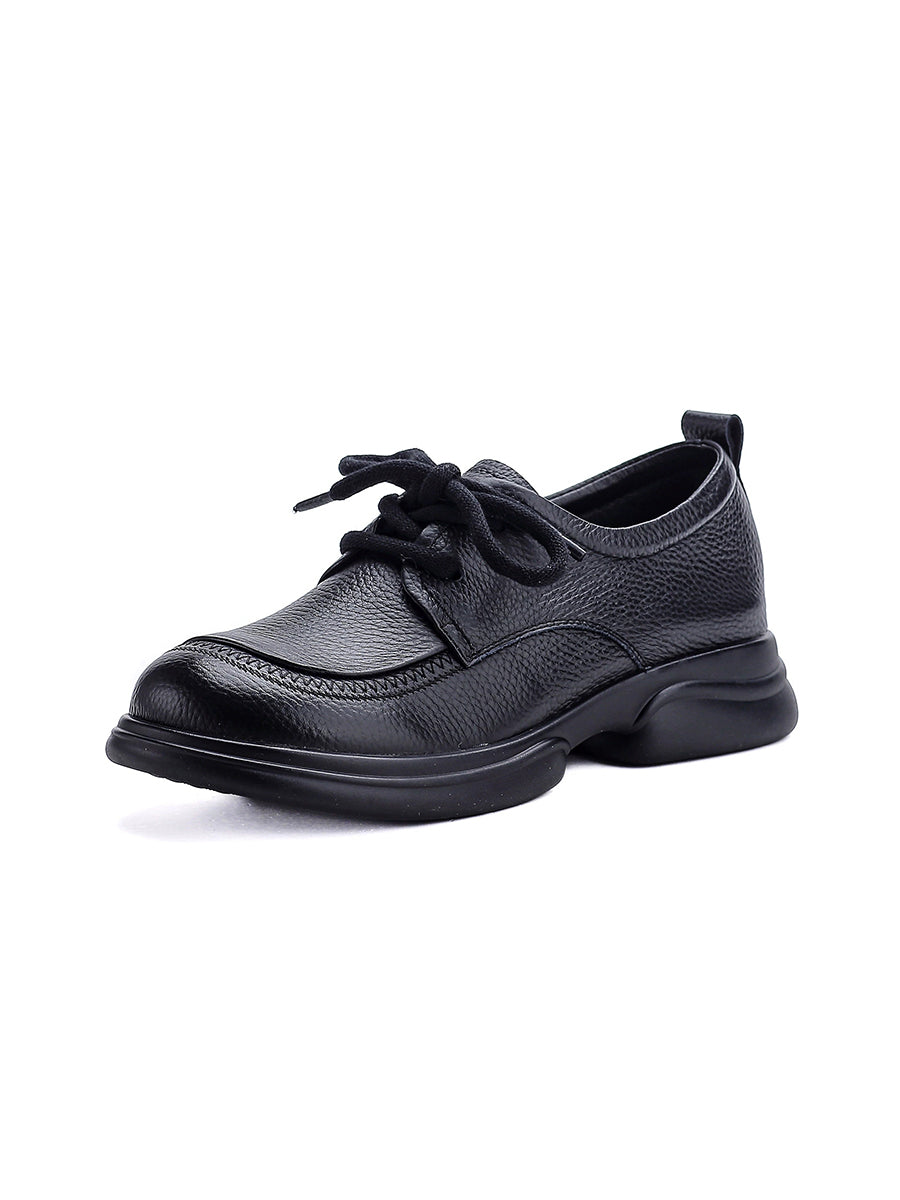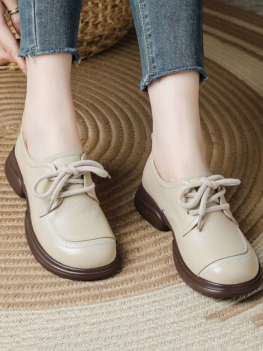 Zapatos de tacón bajo de piel auténtica estilo retro de primavera para mujer