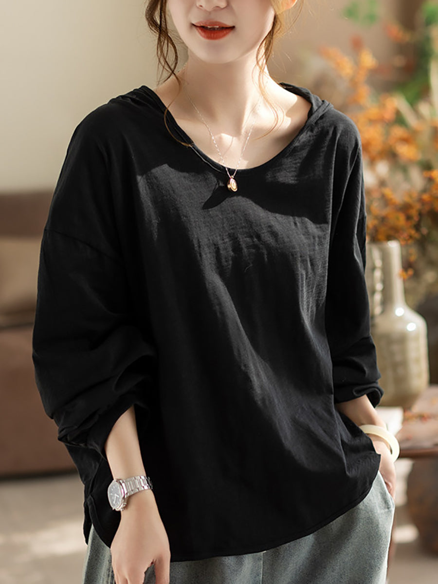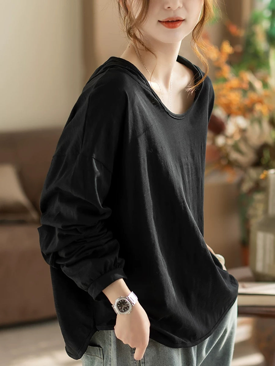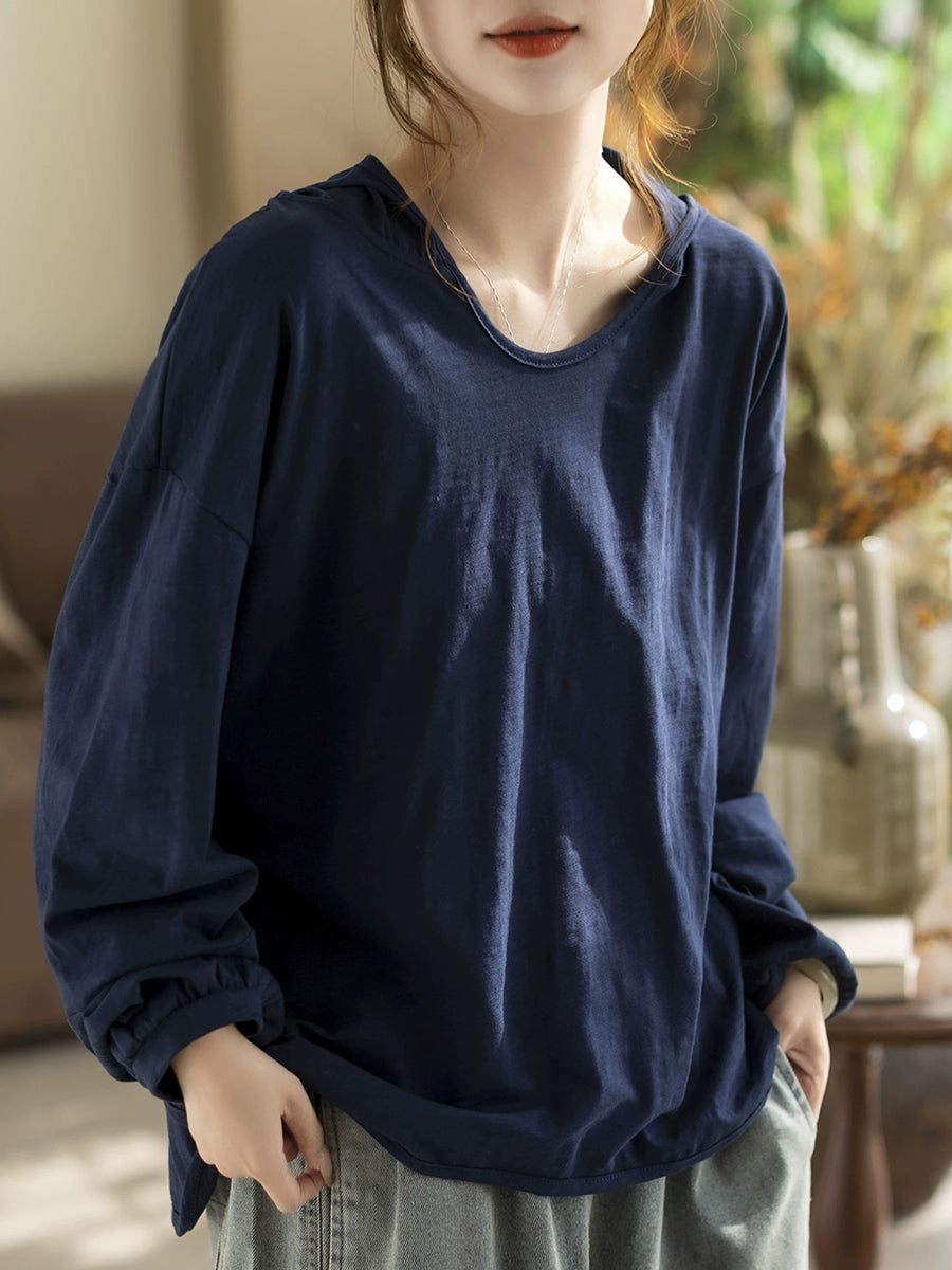 Sudadera con capucha Artsy Pure Color 100 % algodón para mujer