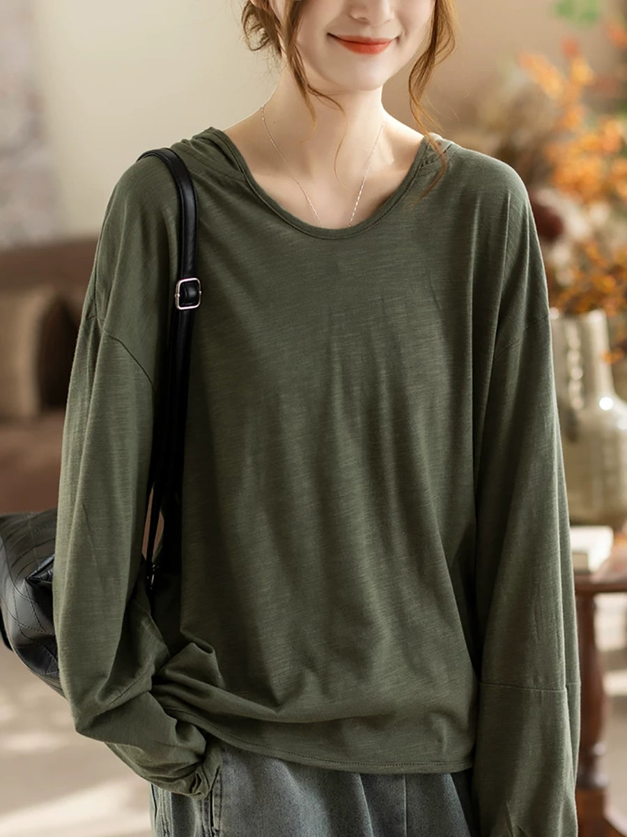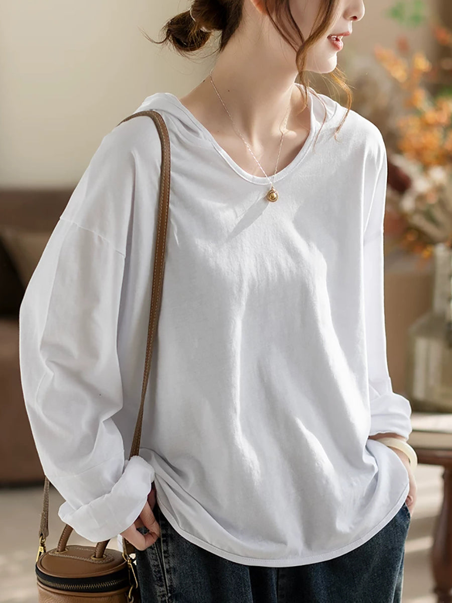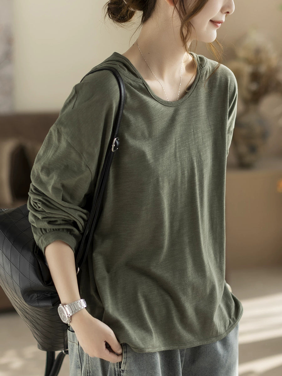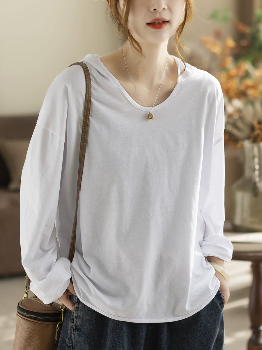 Sudadera con capucha Artsy Pure Color 100 % algodón para mujer