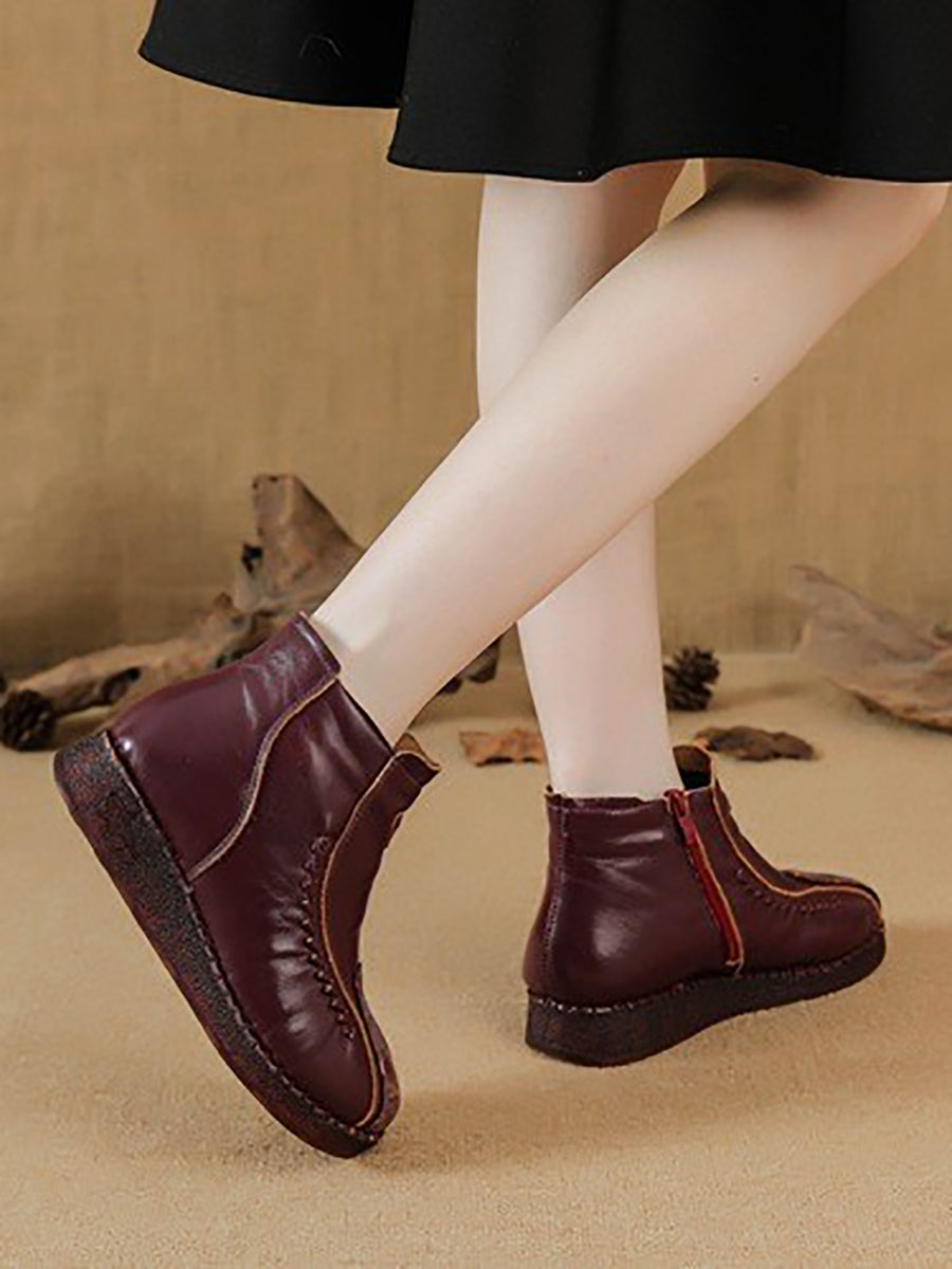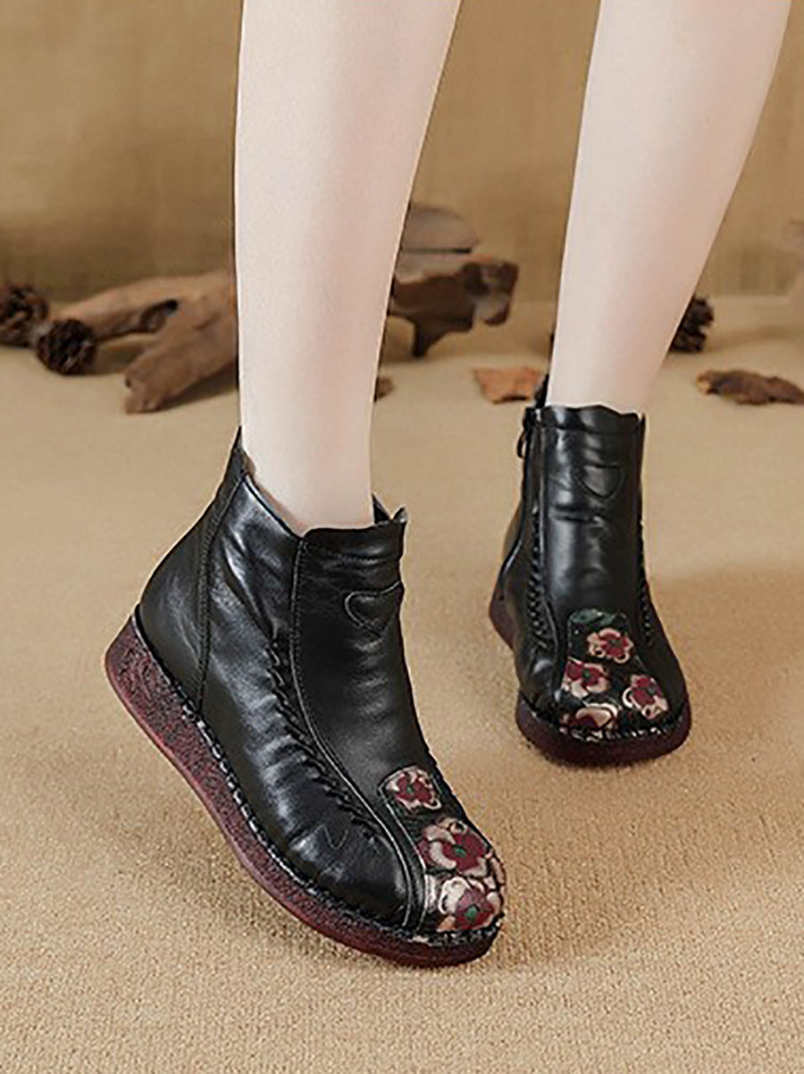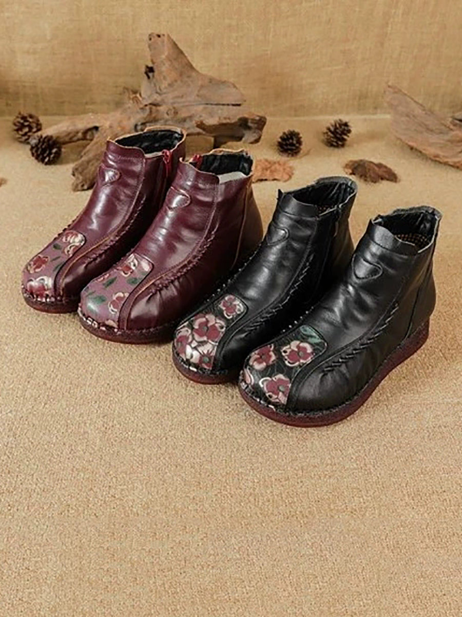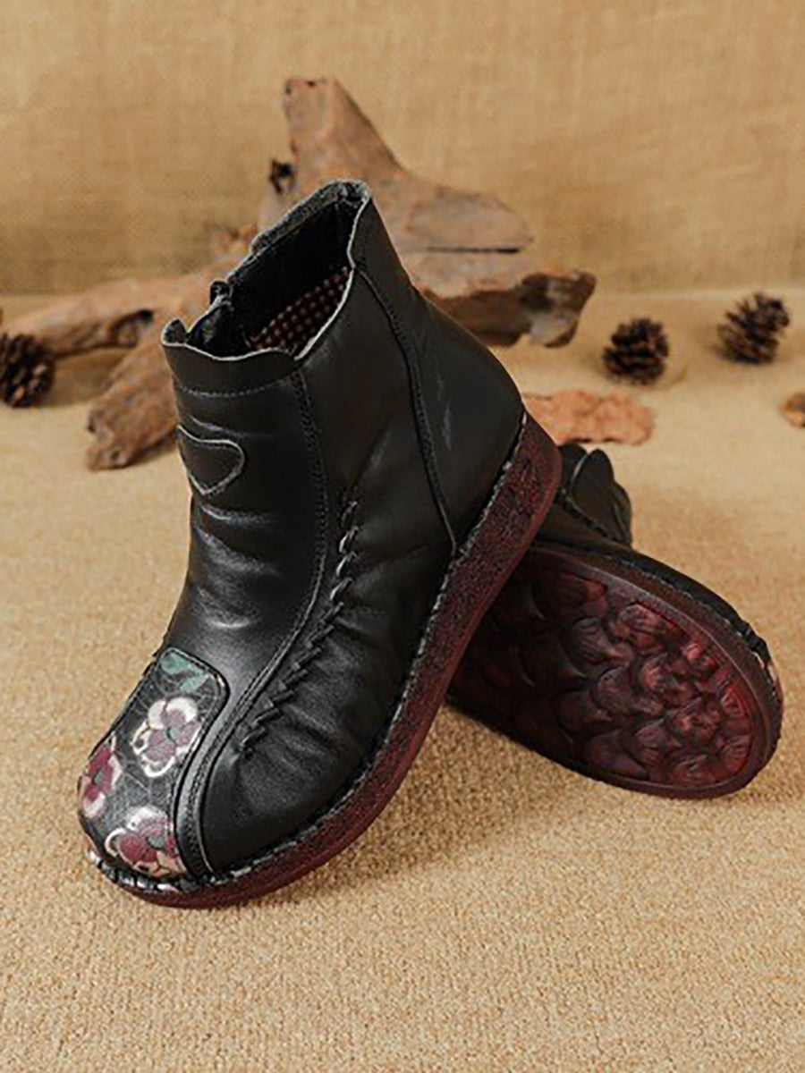Botines de piel con flores artísticas de invierno para mujer