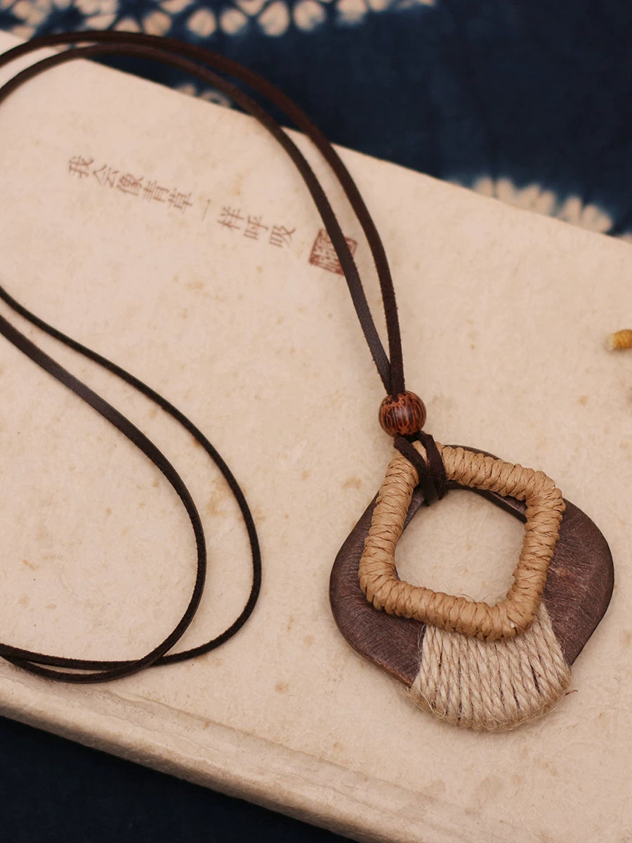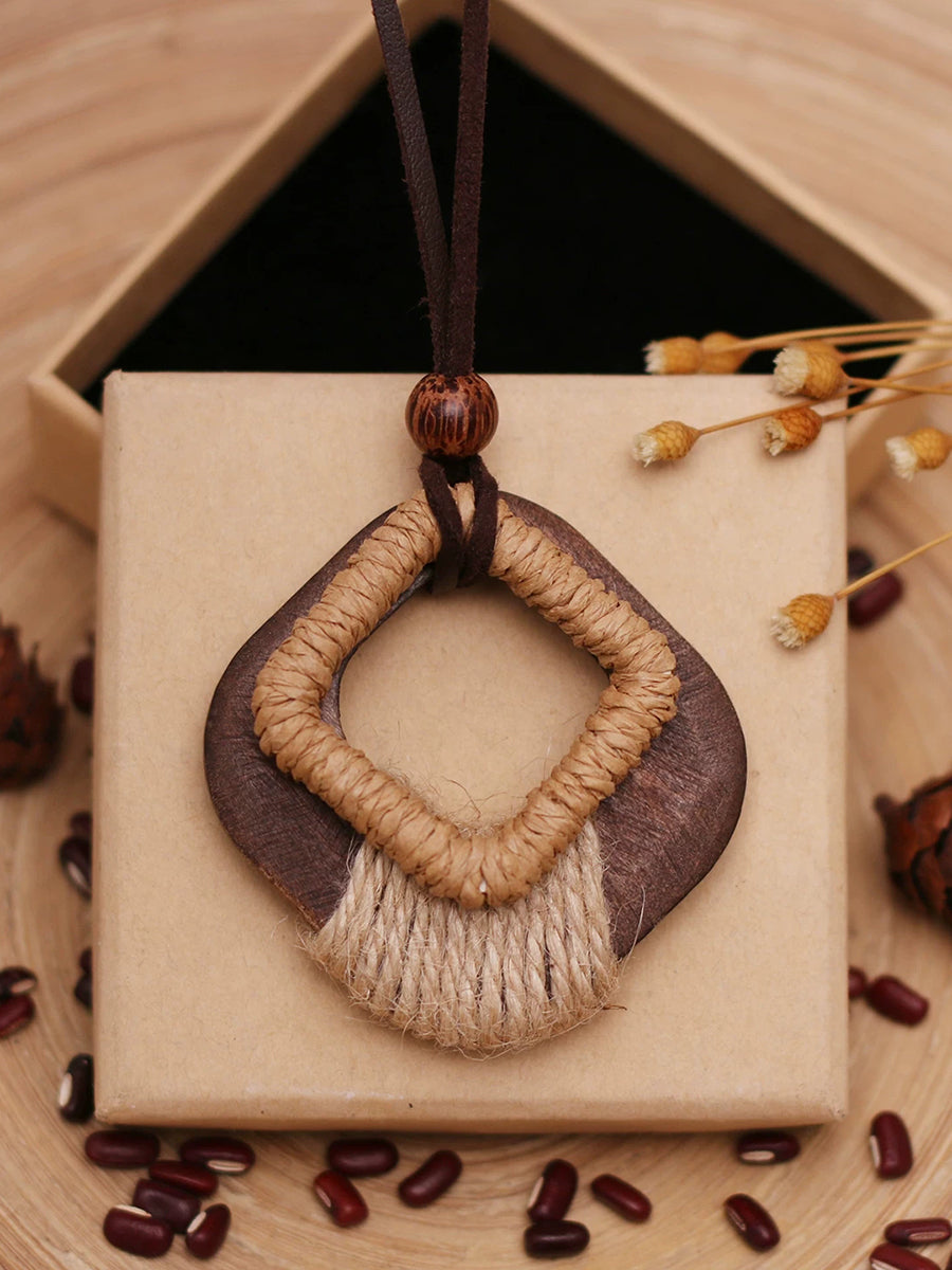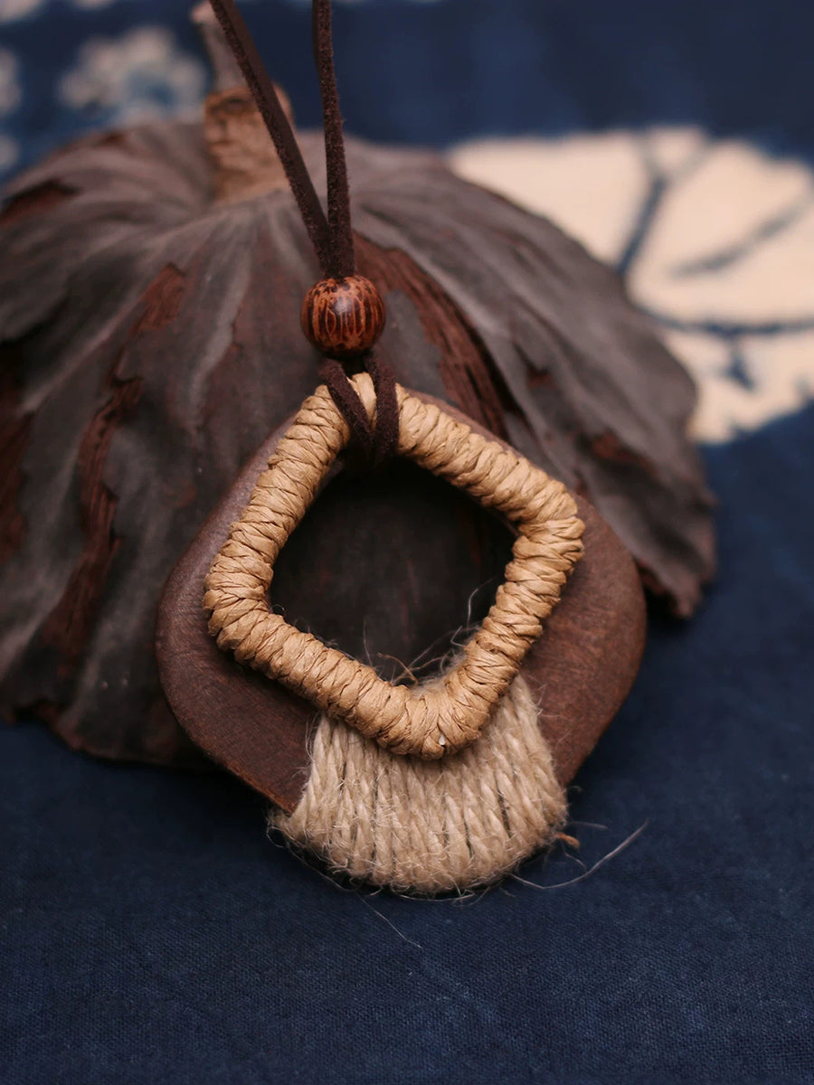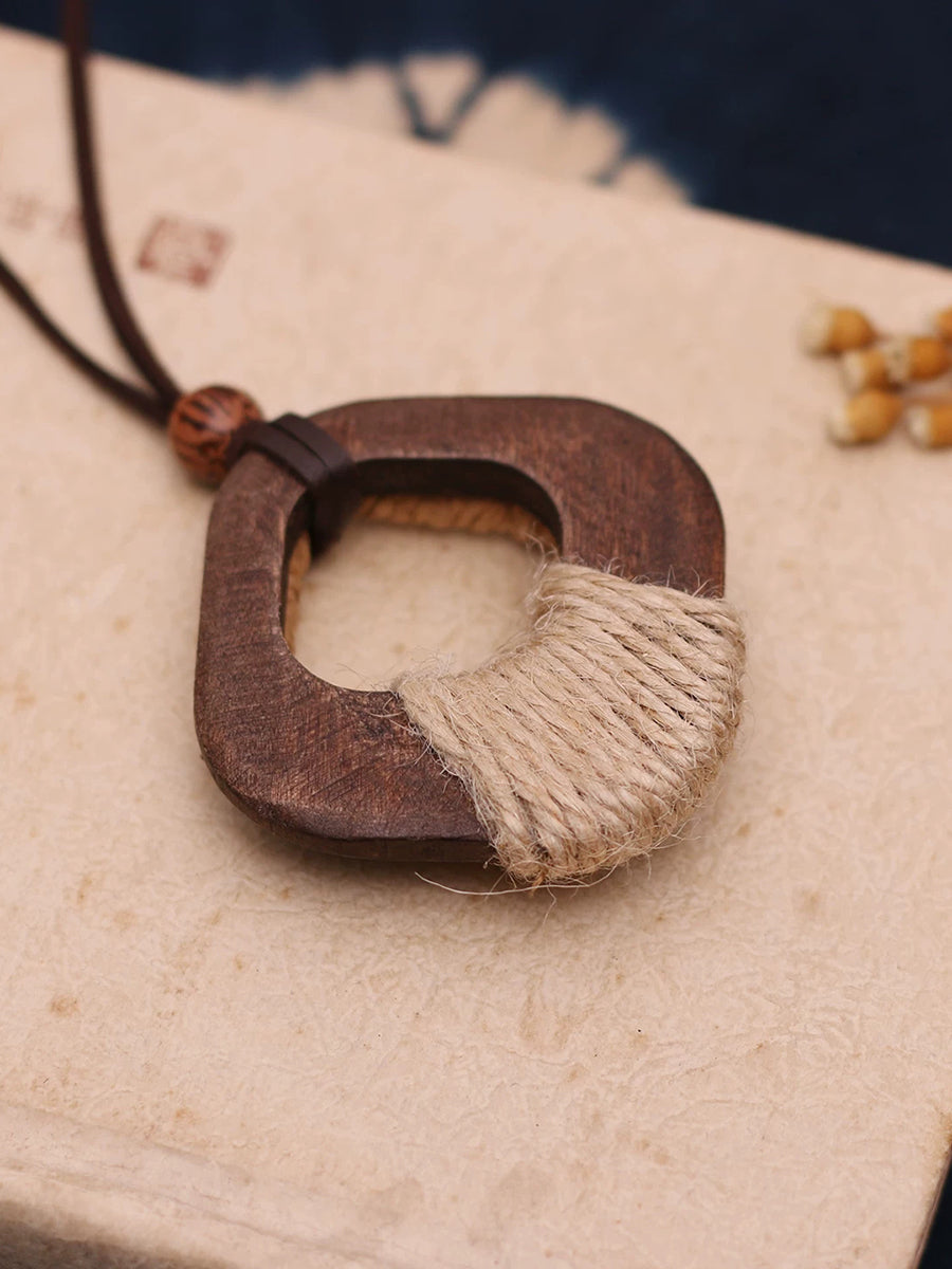 Collar de suéter vintage de cuerda de cáñamo de madera