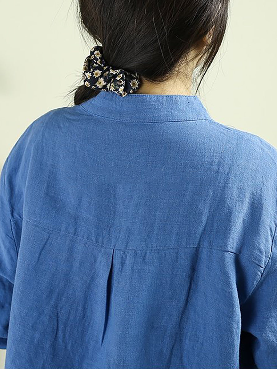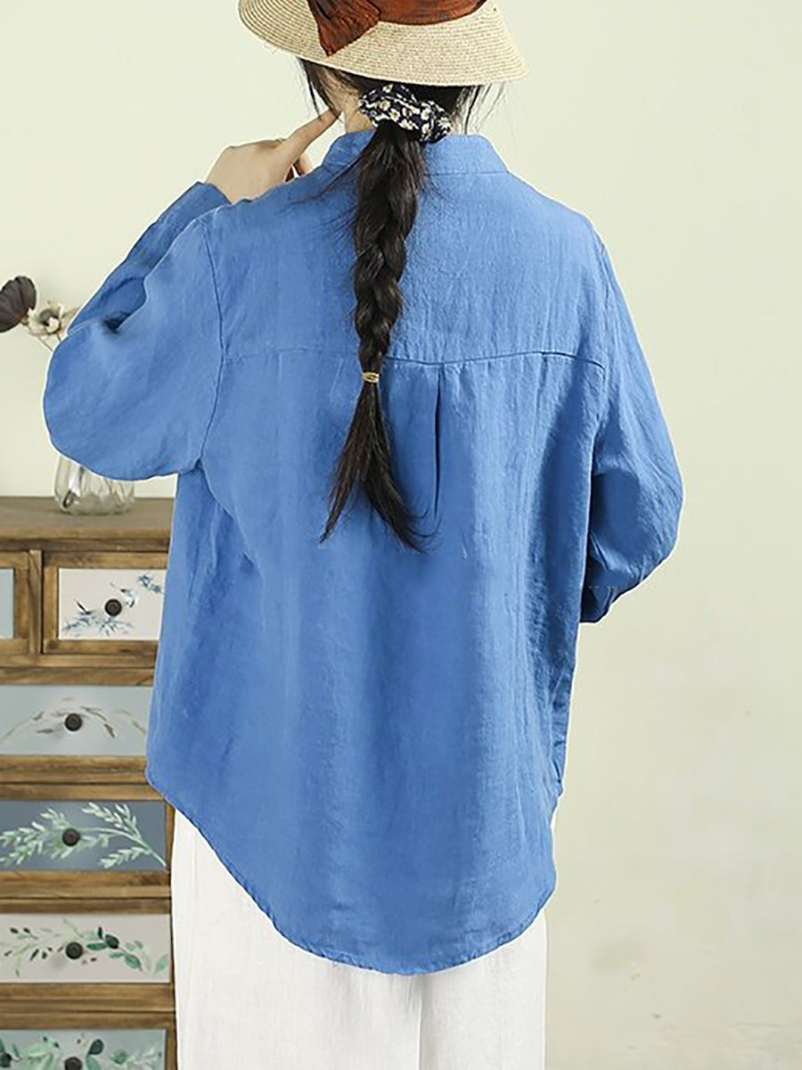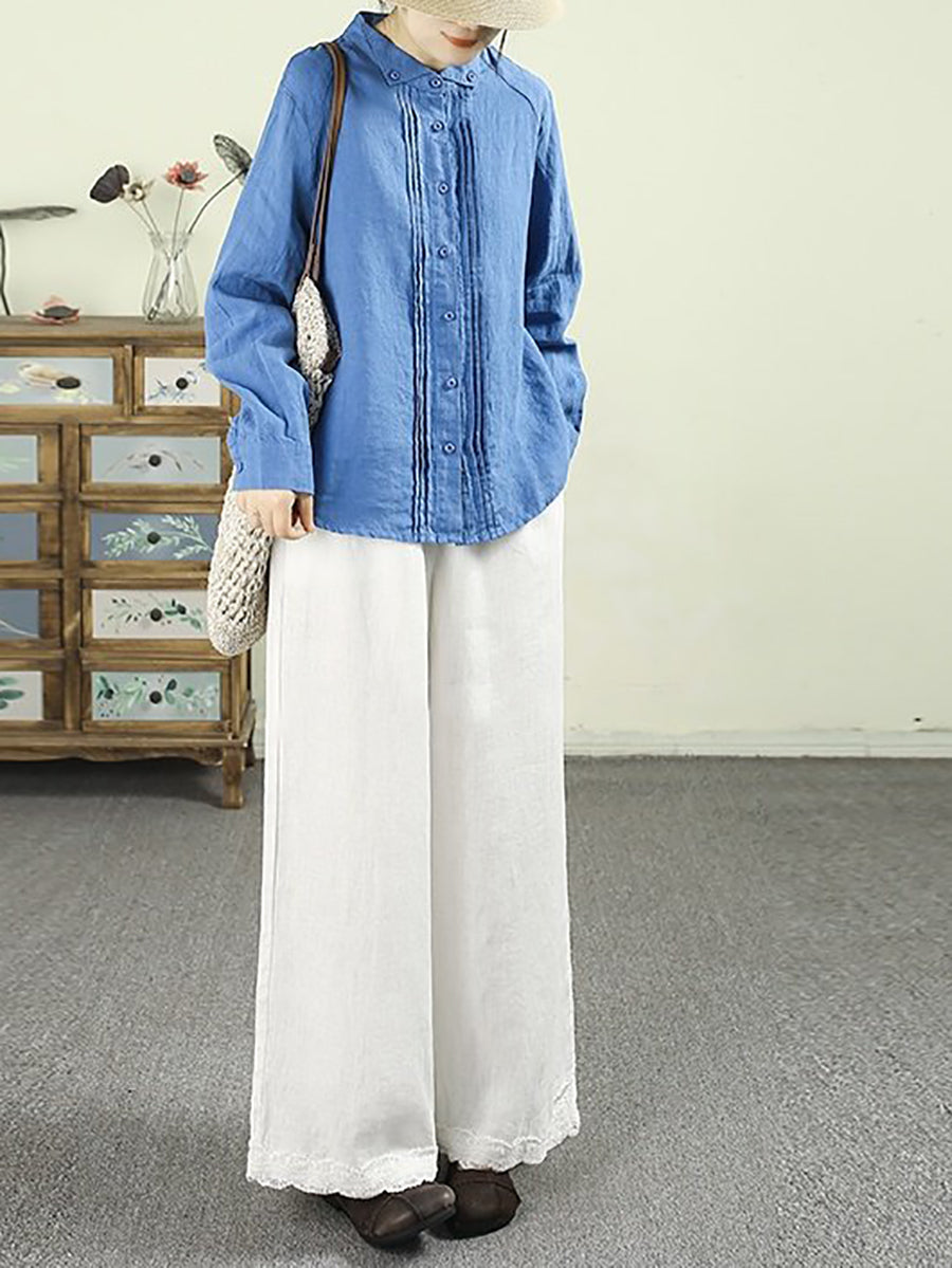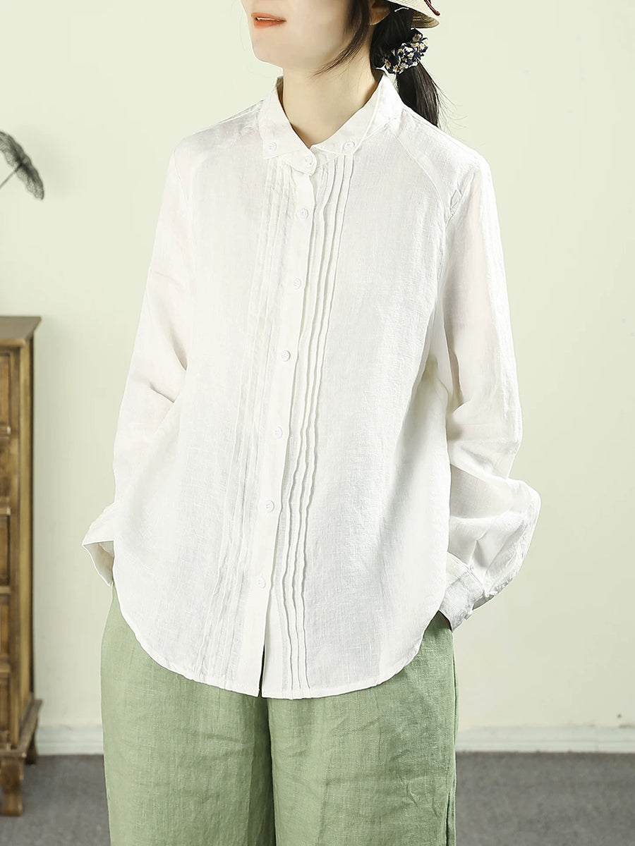 Camisa de lino 100 % color puro con fruncido Artsy Spring para mujer