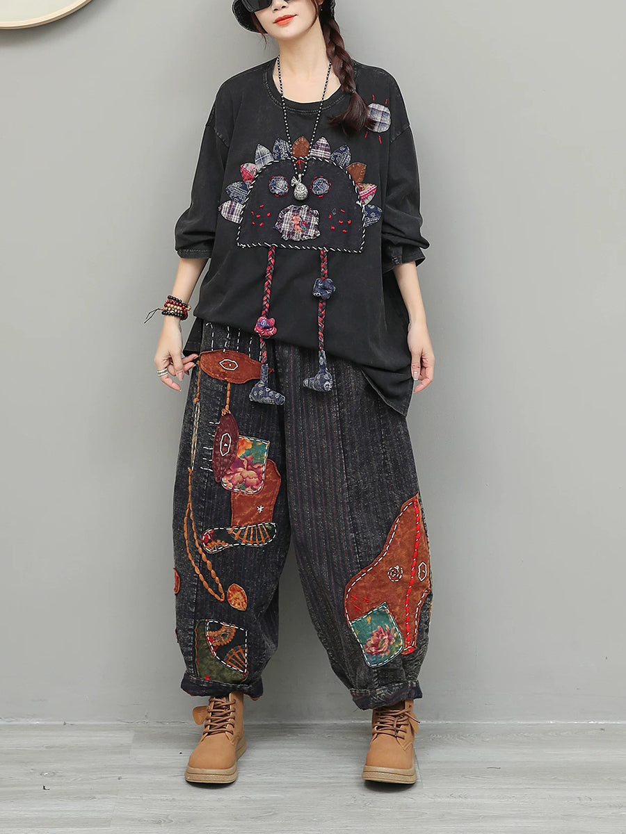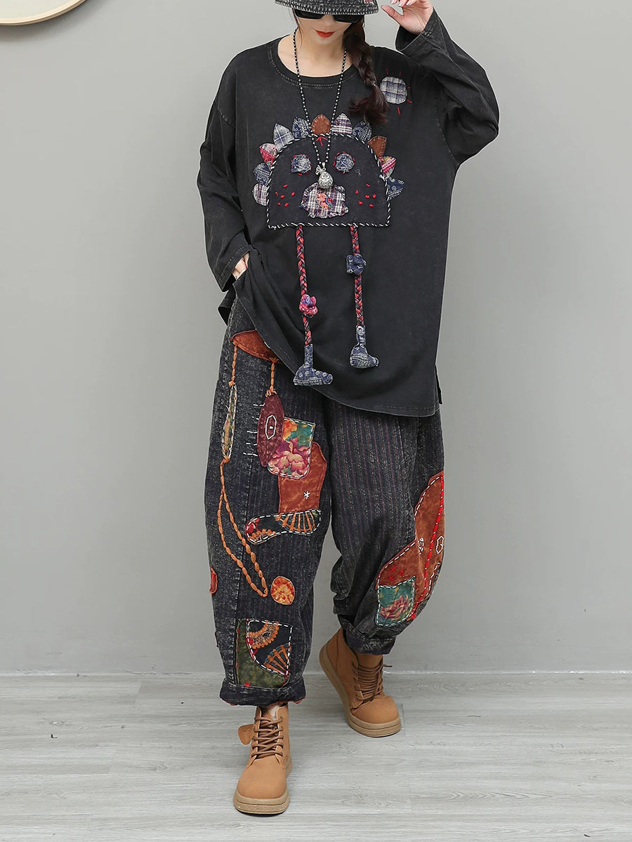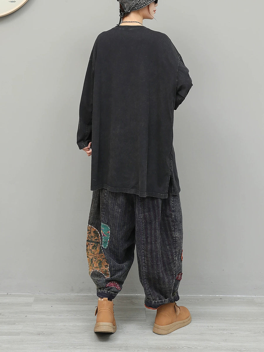 Trajes de cuello redondo con patchwork étnico de primavera para mujer