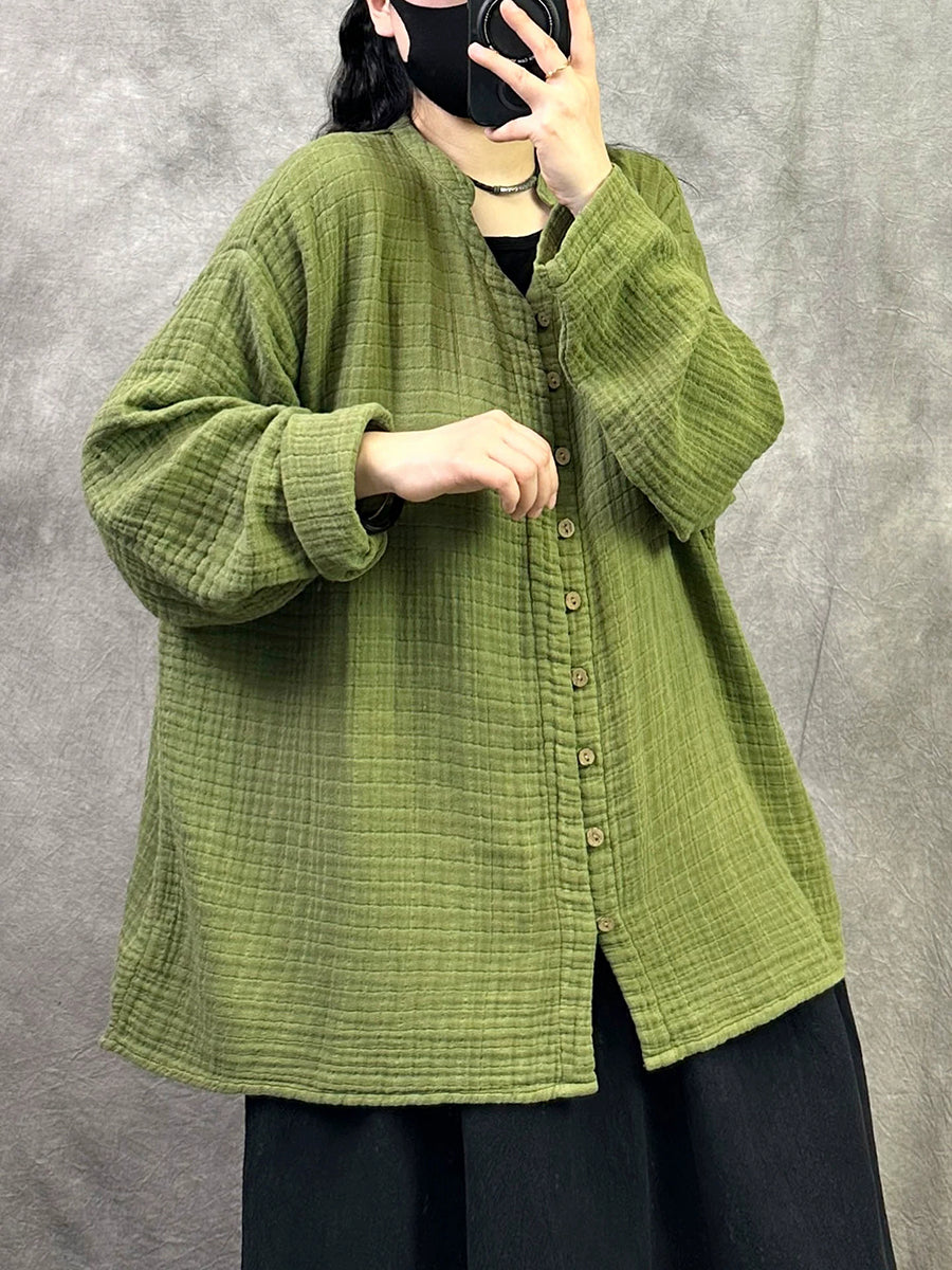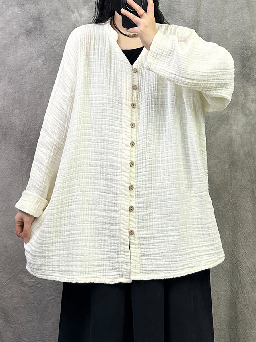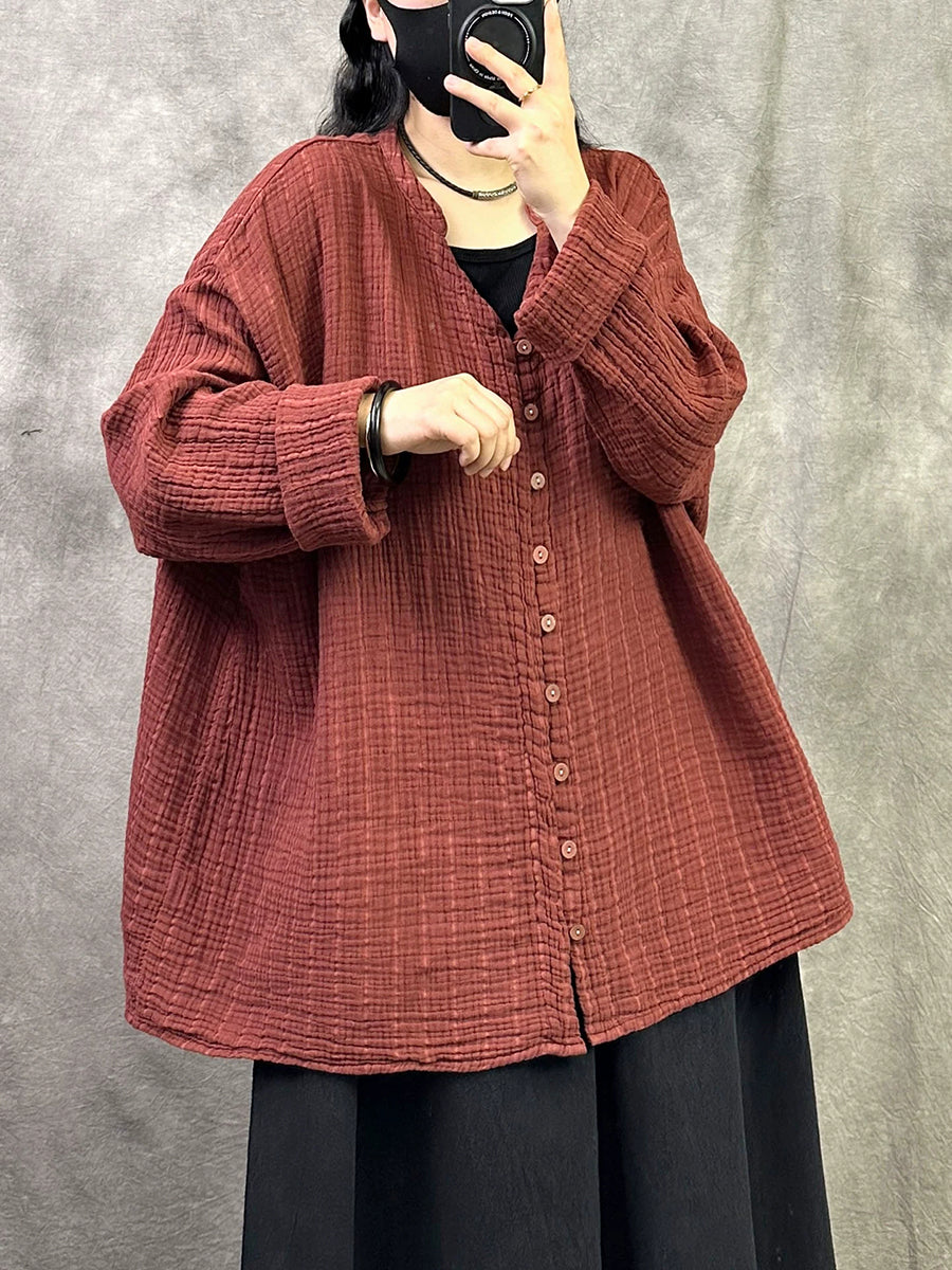Camisa de cuello en V de color puro y artístico para mujer de primavera