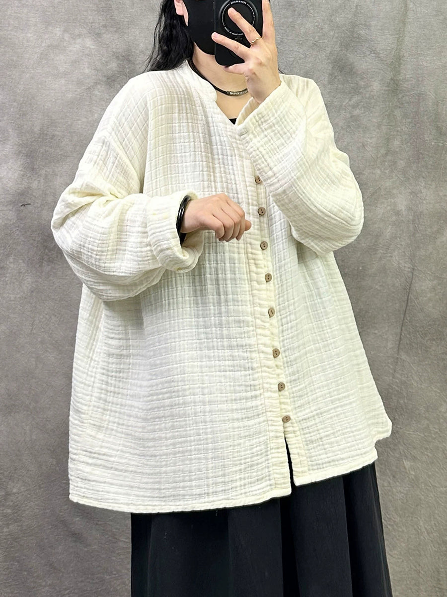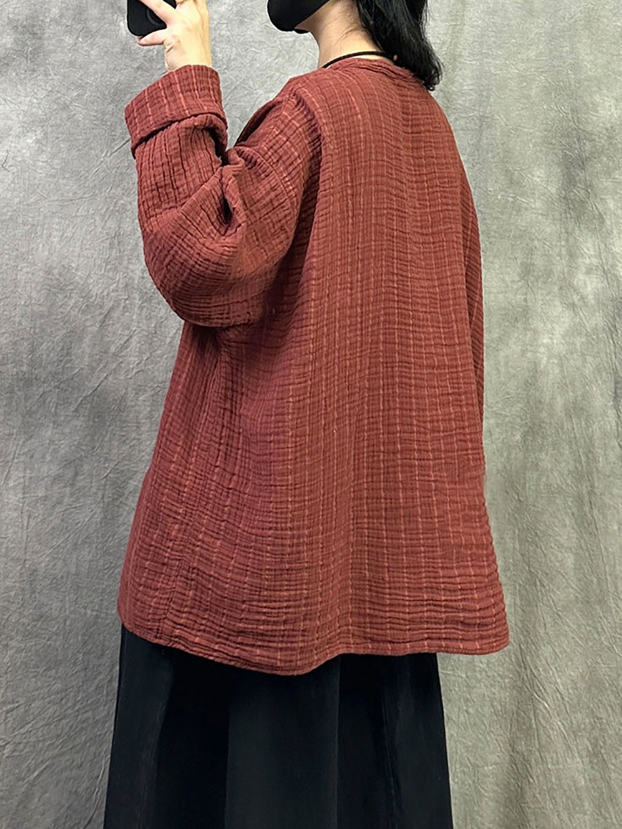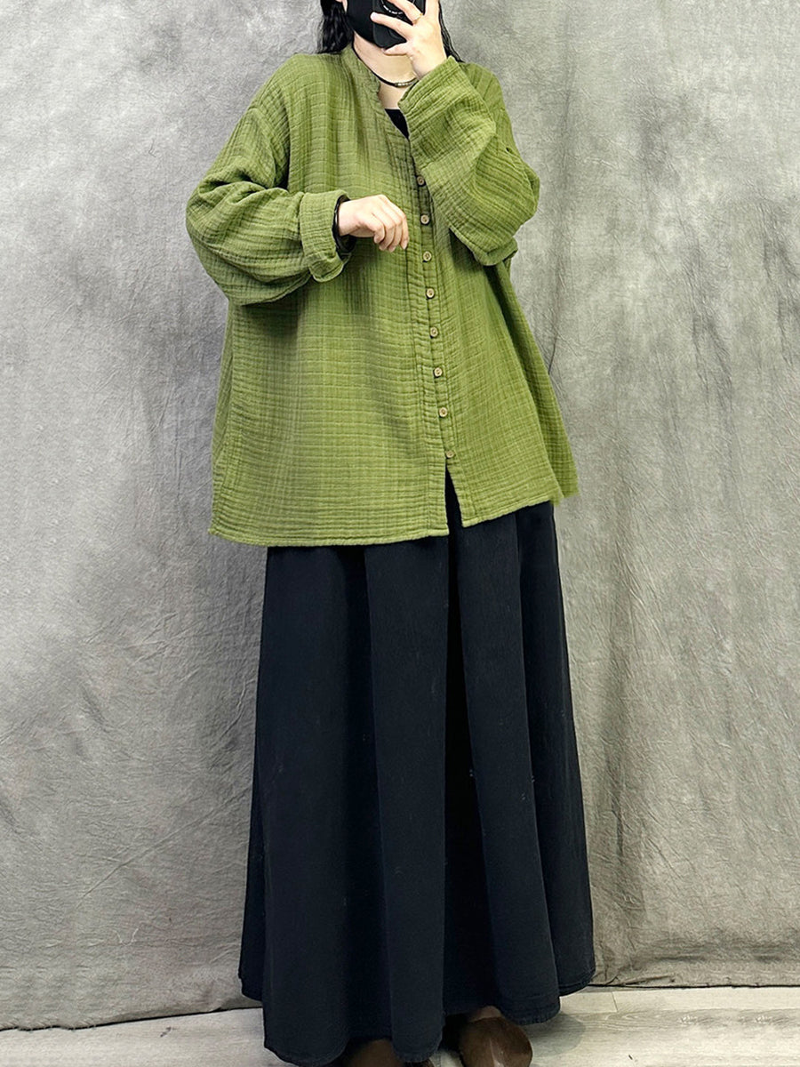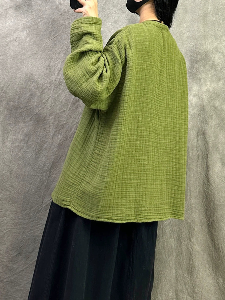 Camisa de cuello en V de color puro y artístico para mujer de primavera