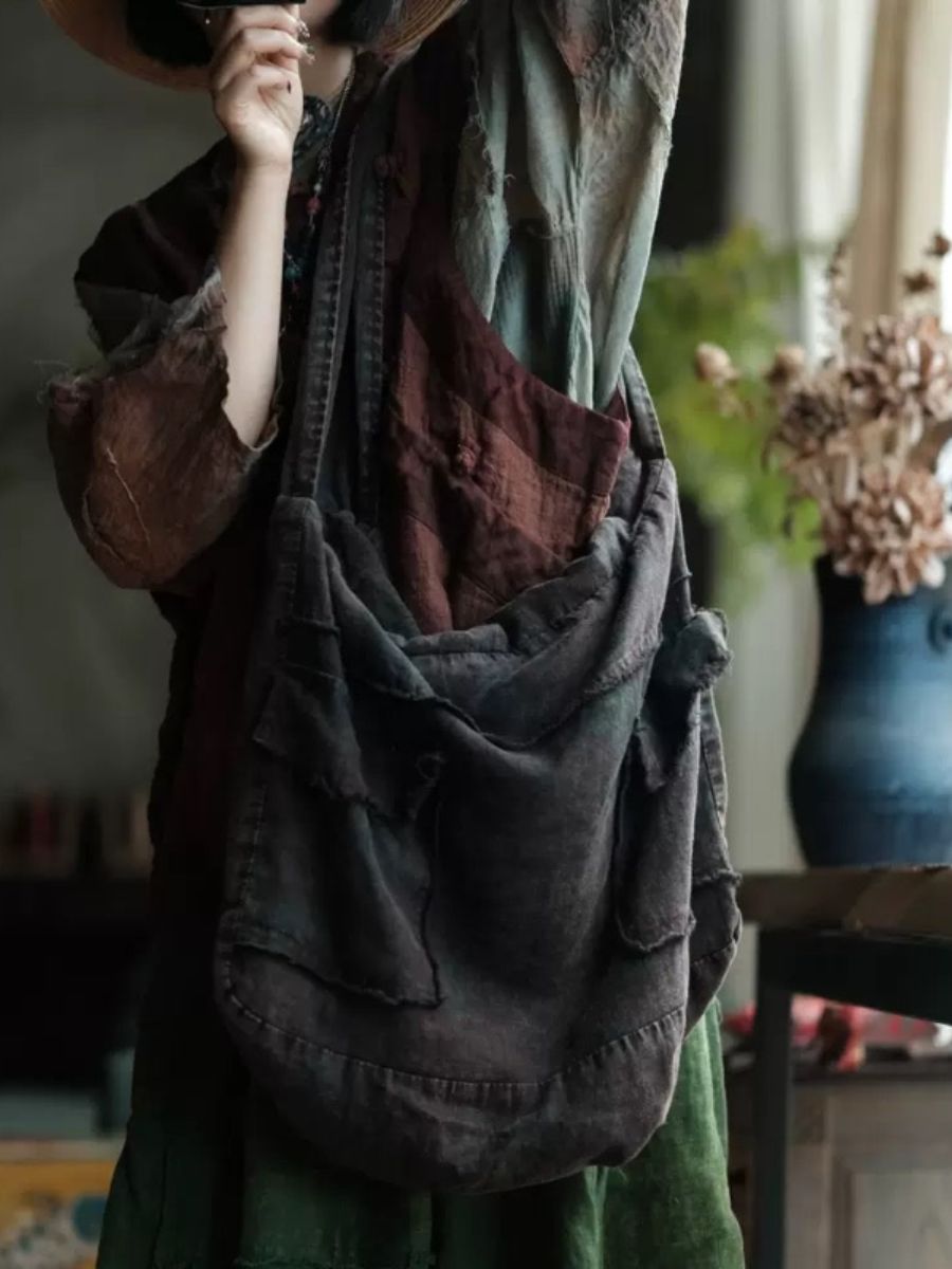 02281 Bolso de hombro vintage de algodón con patchwork verde (copia)