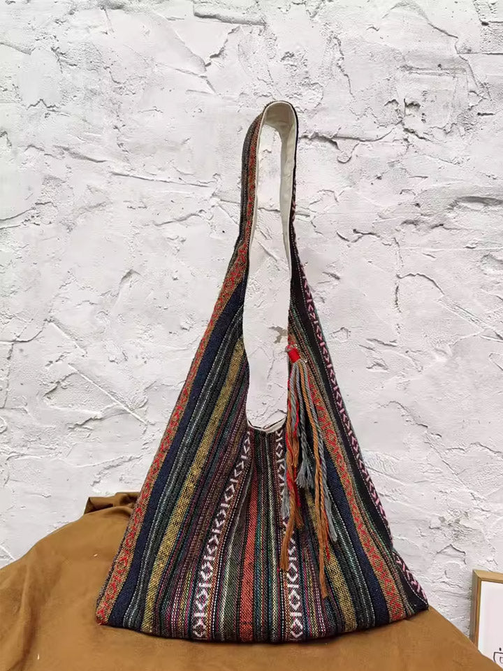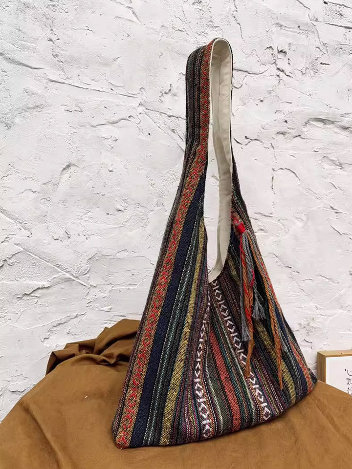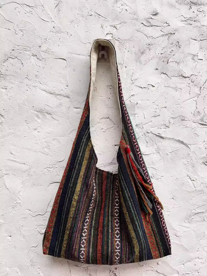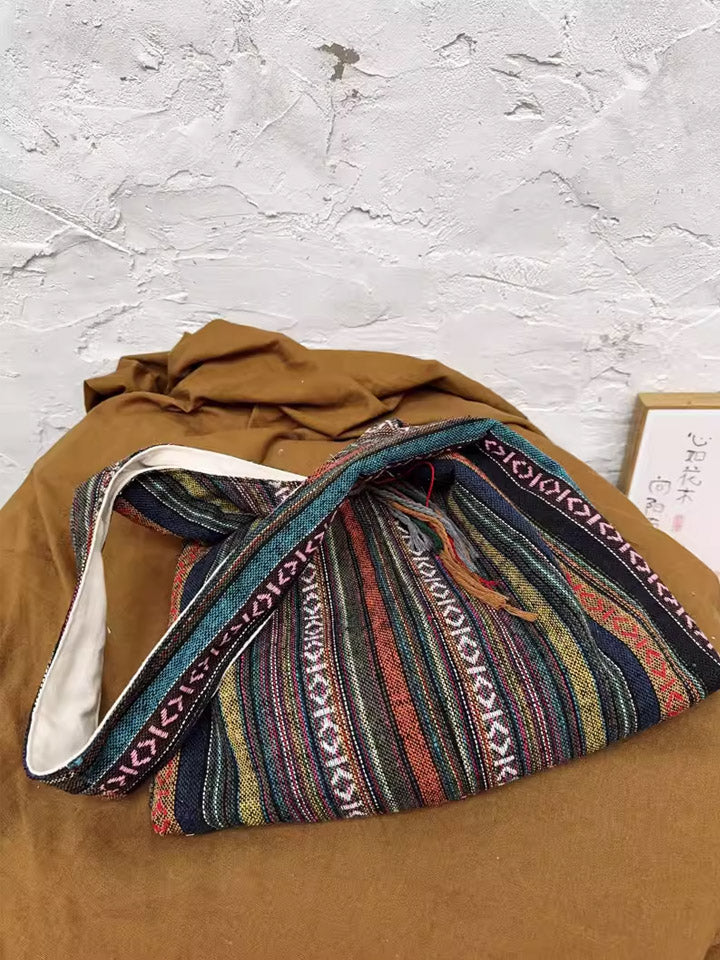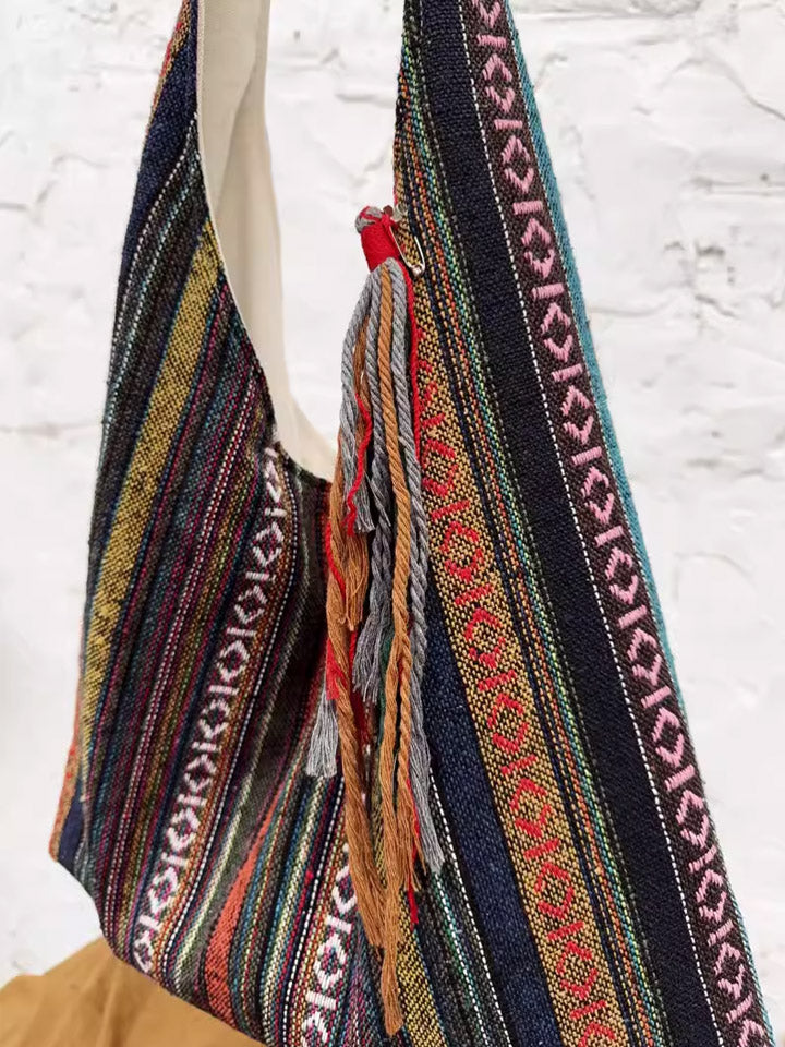 Bolso de hombro étnico con rayas y bloques de color 3038