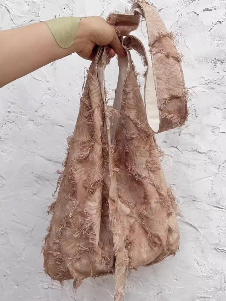 3037 Bolso tote con borlas y efecto tie-dye