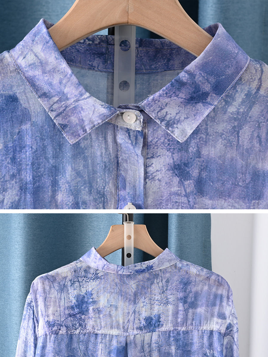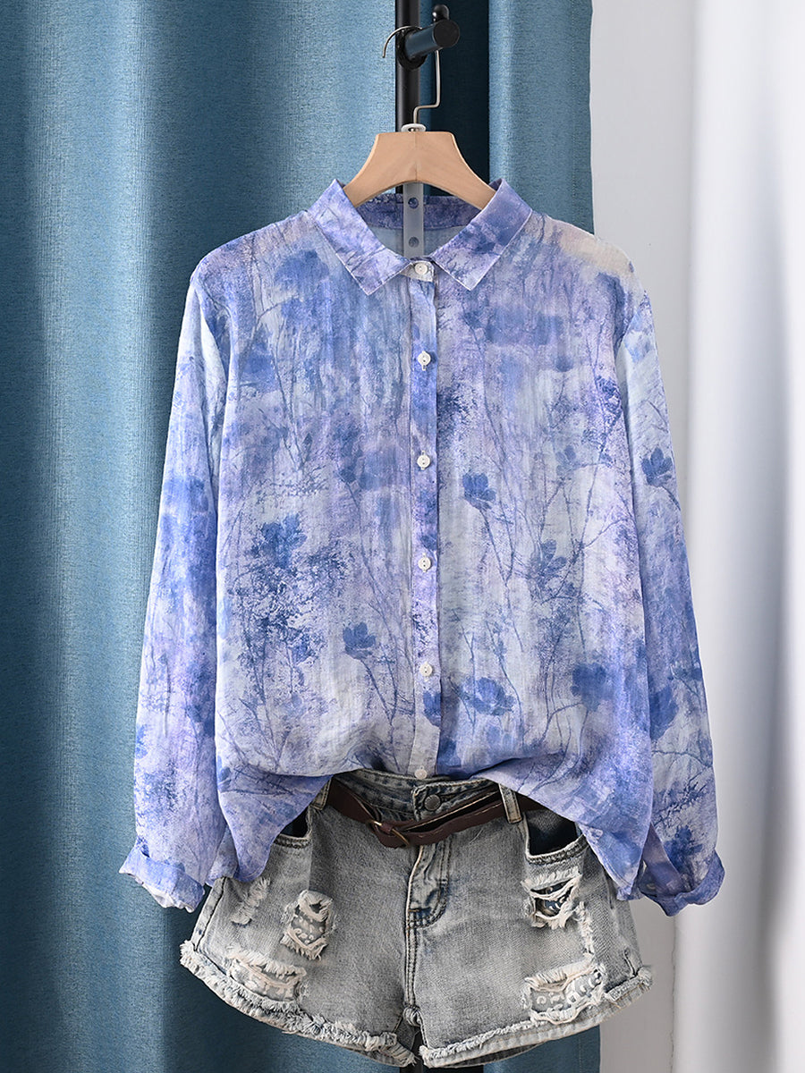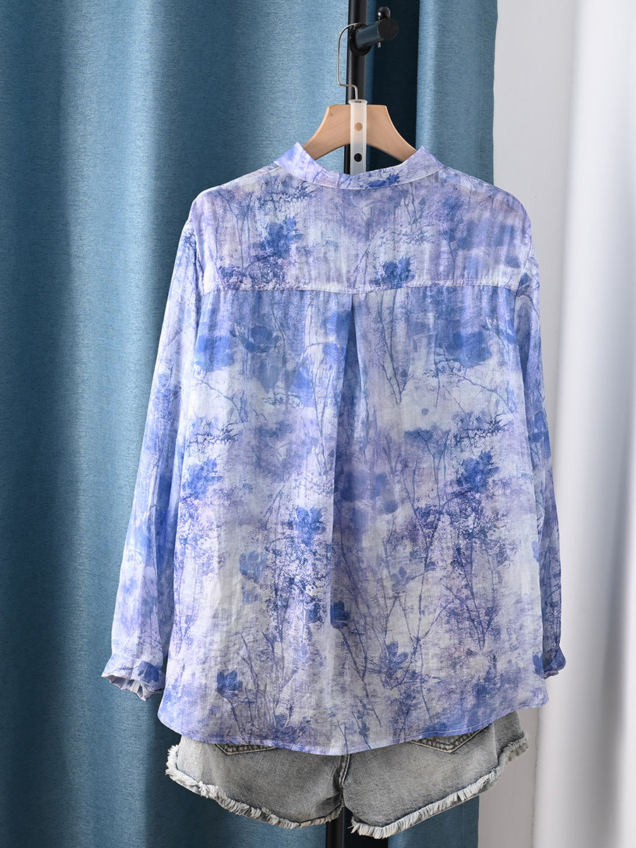 Blusa de verano para mujer con cuello vuelto, 100 % ramio y flores artísticas