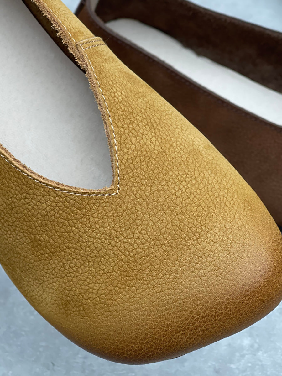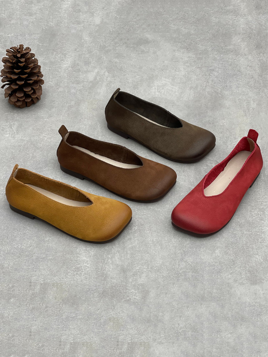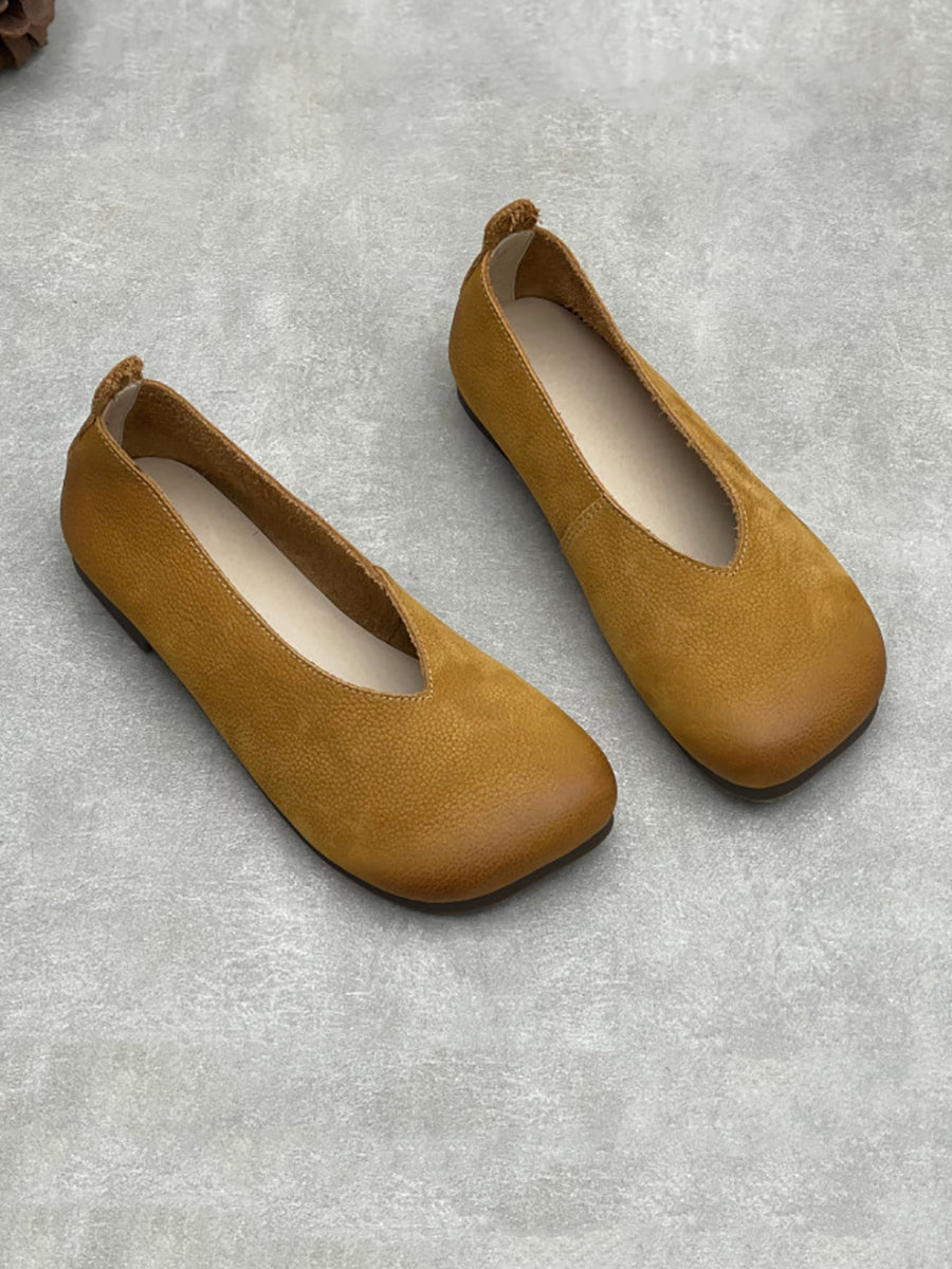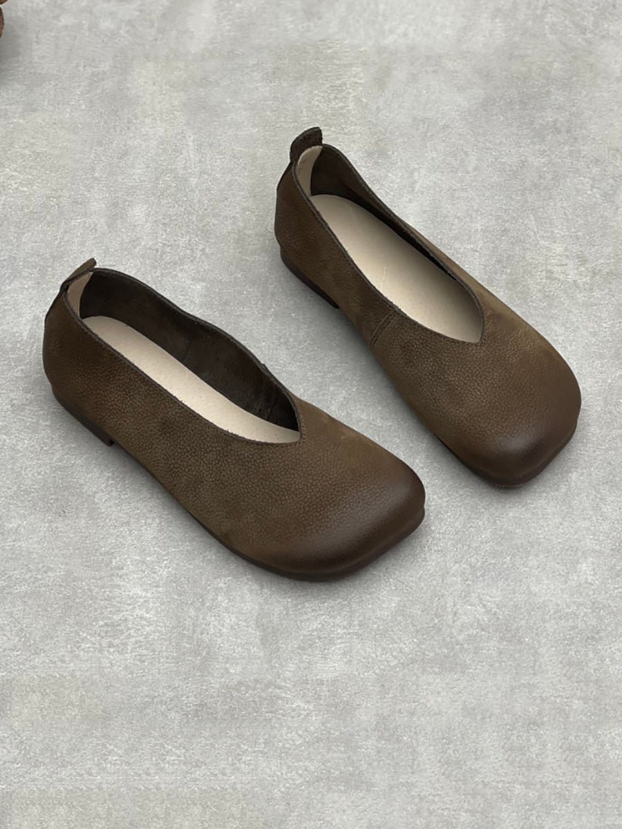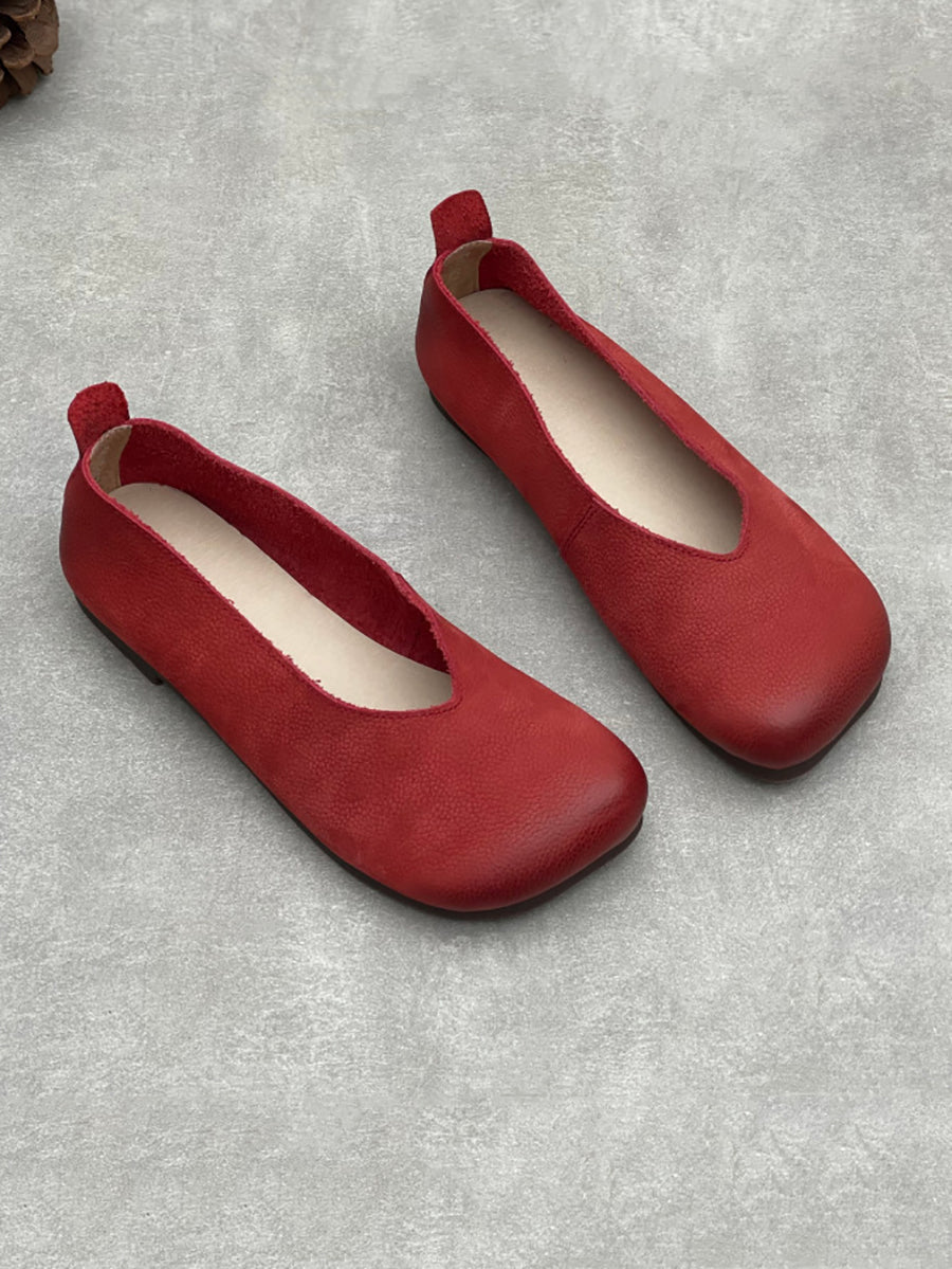 Zapatos planos vintage de piel auténtica para mujer, de verano