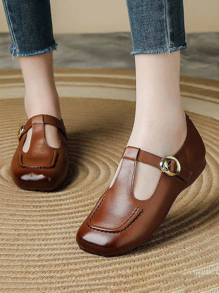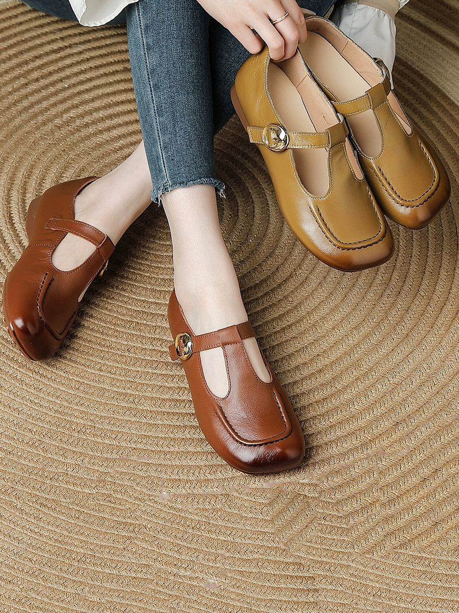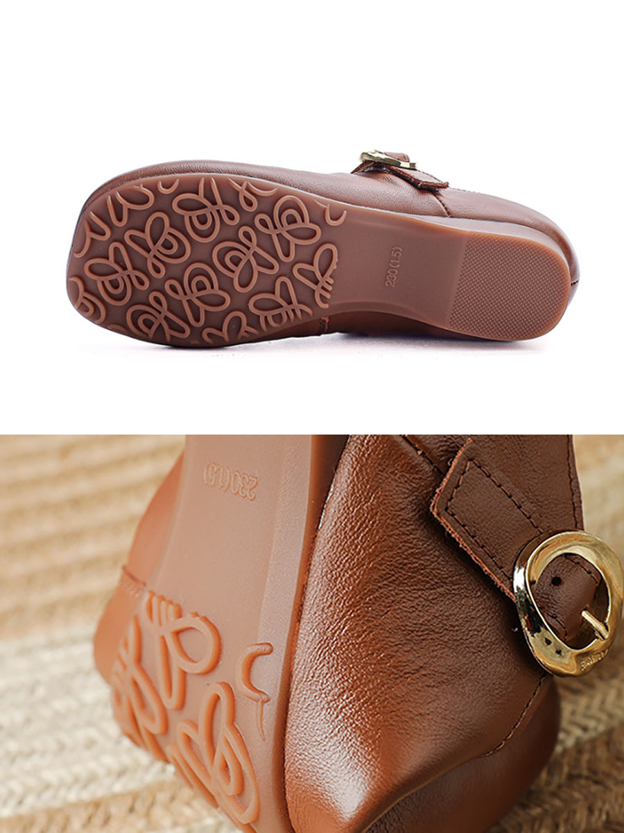 Zapatos de tacón bajo de piel auténtica vintage de verano para mujer