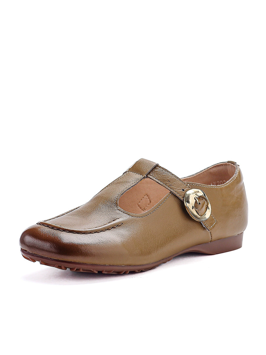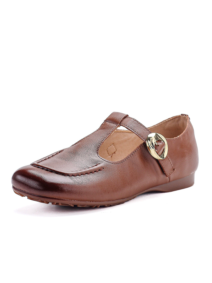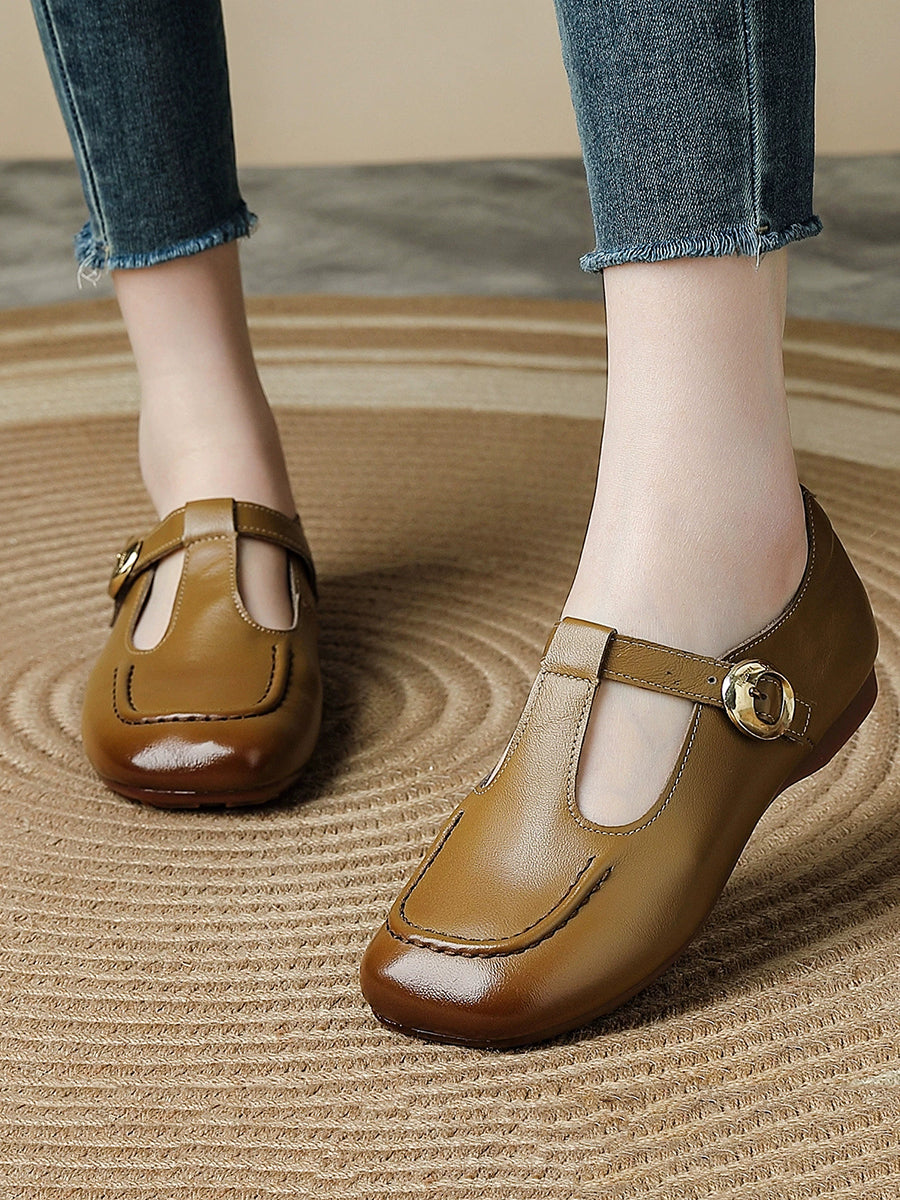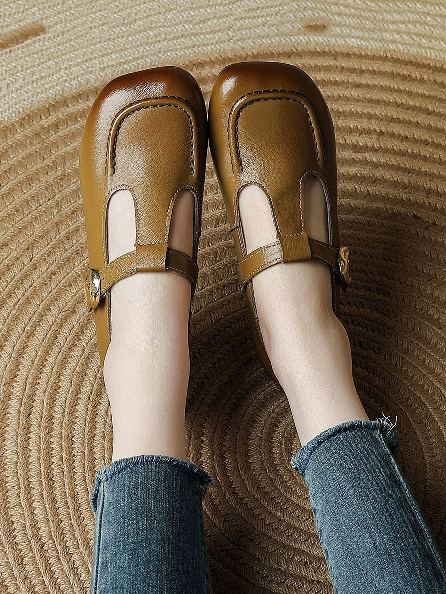 Zapatos de tacón bajo de piel auténtica vintage de verano para mujer