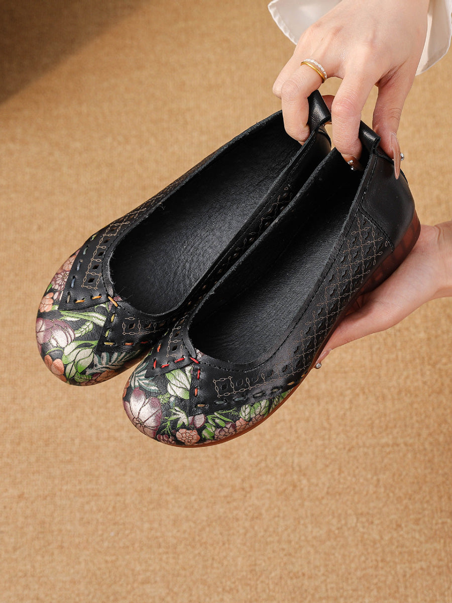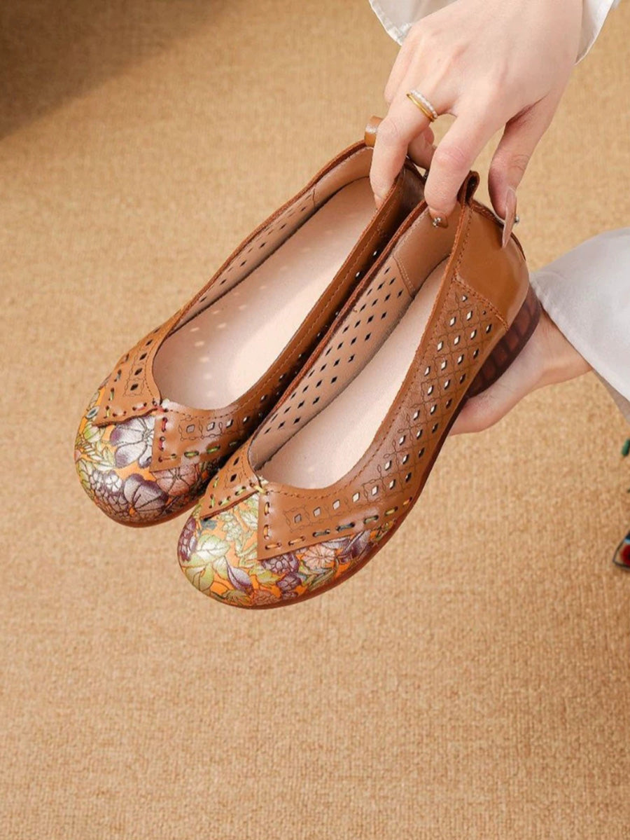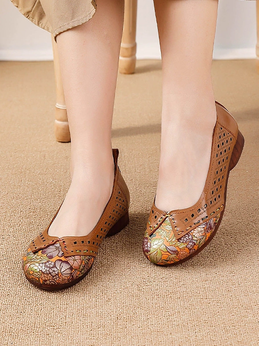 Zapatos de tacón bajo de piel vintage para mujer