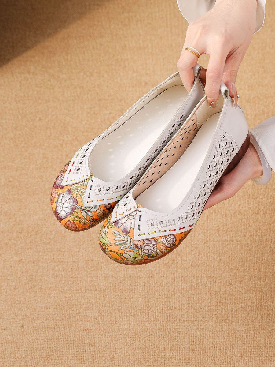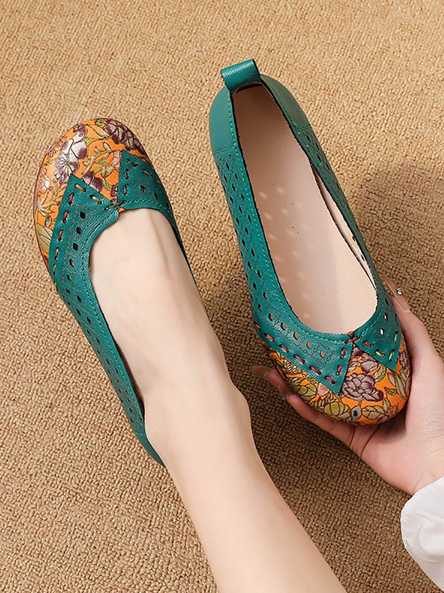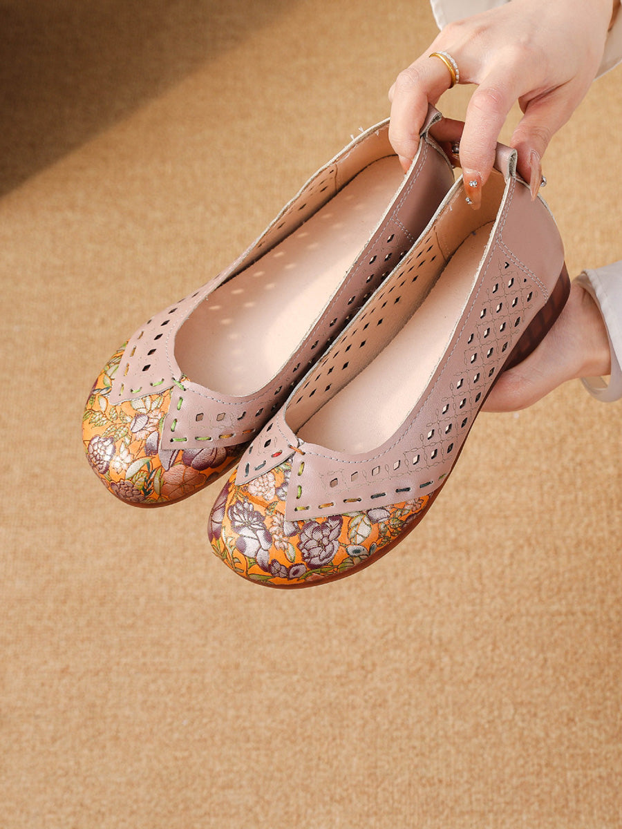 Zapatos de tacón bajo de piel vintage para mujer