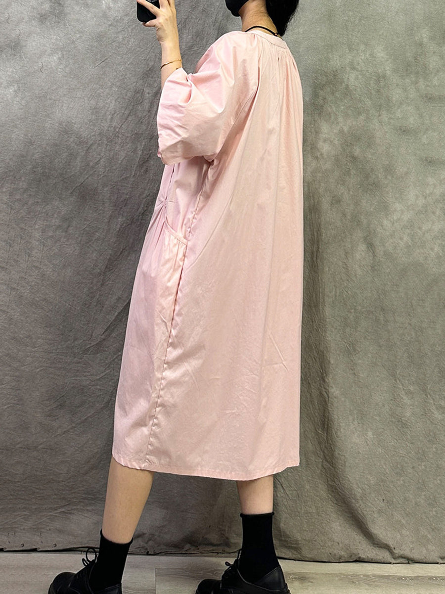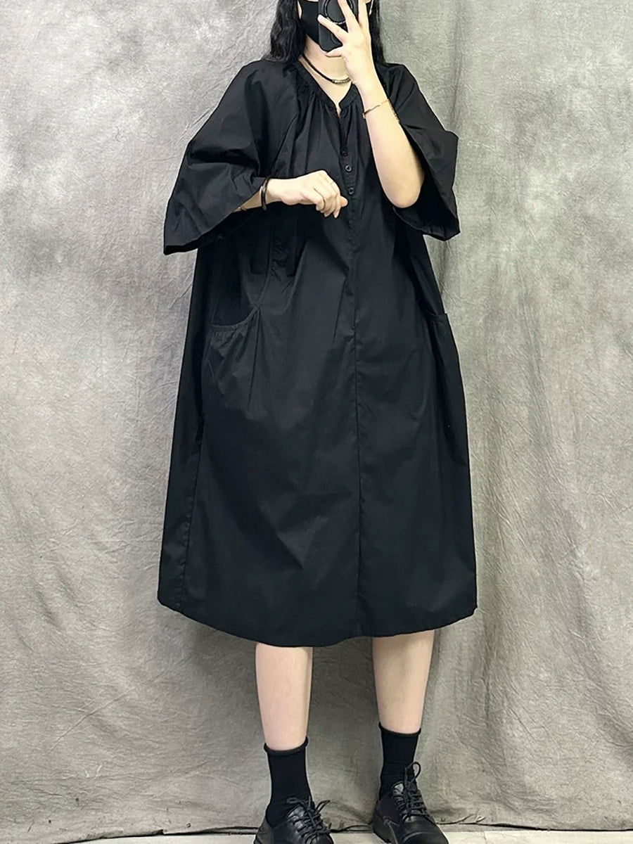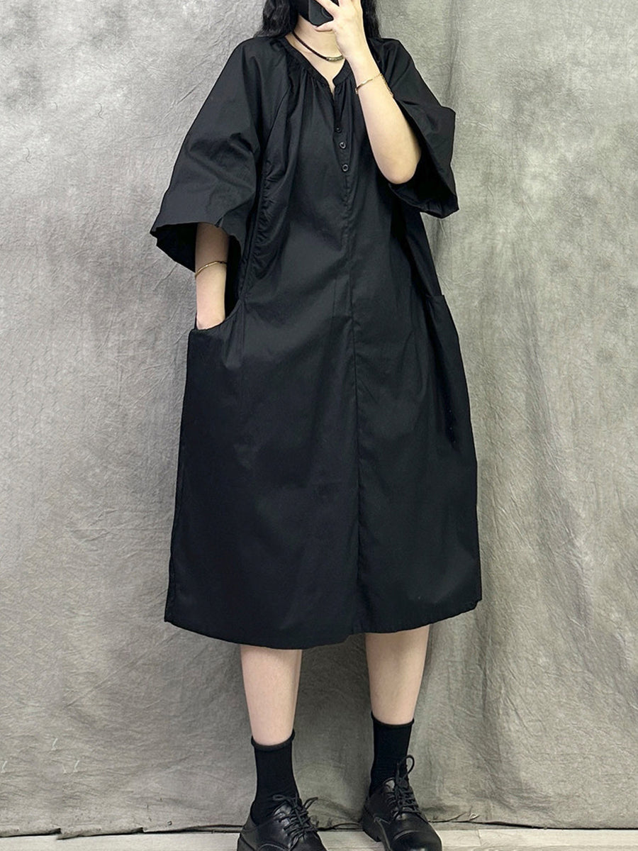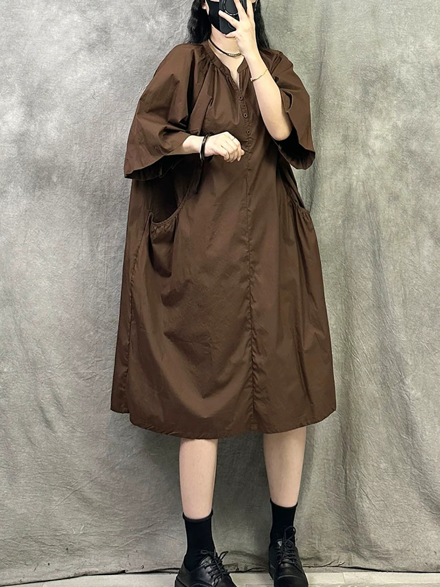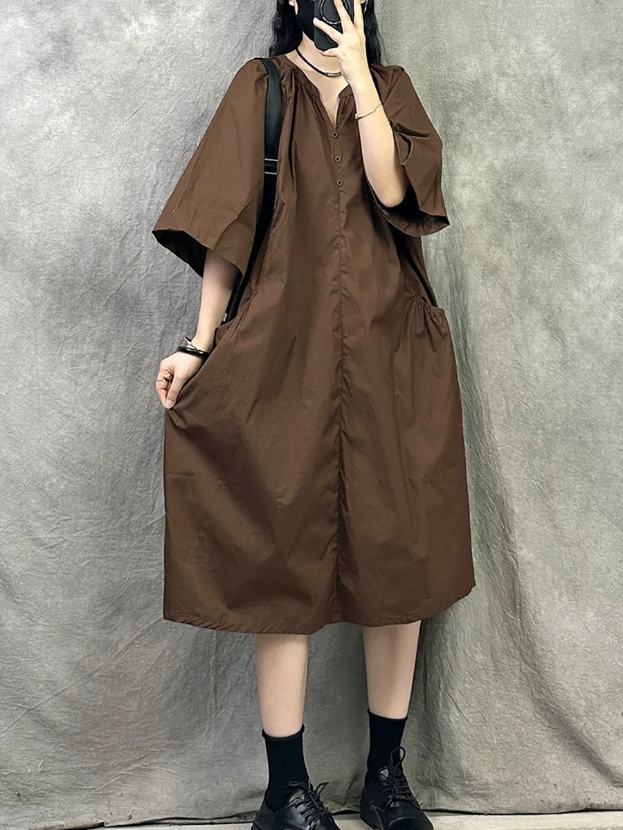 Vestido casual de verano para mujer con cuello en V de color liso