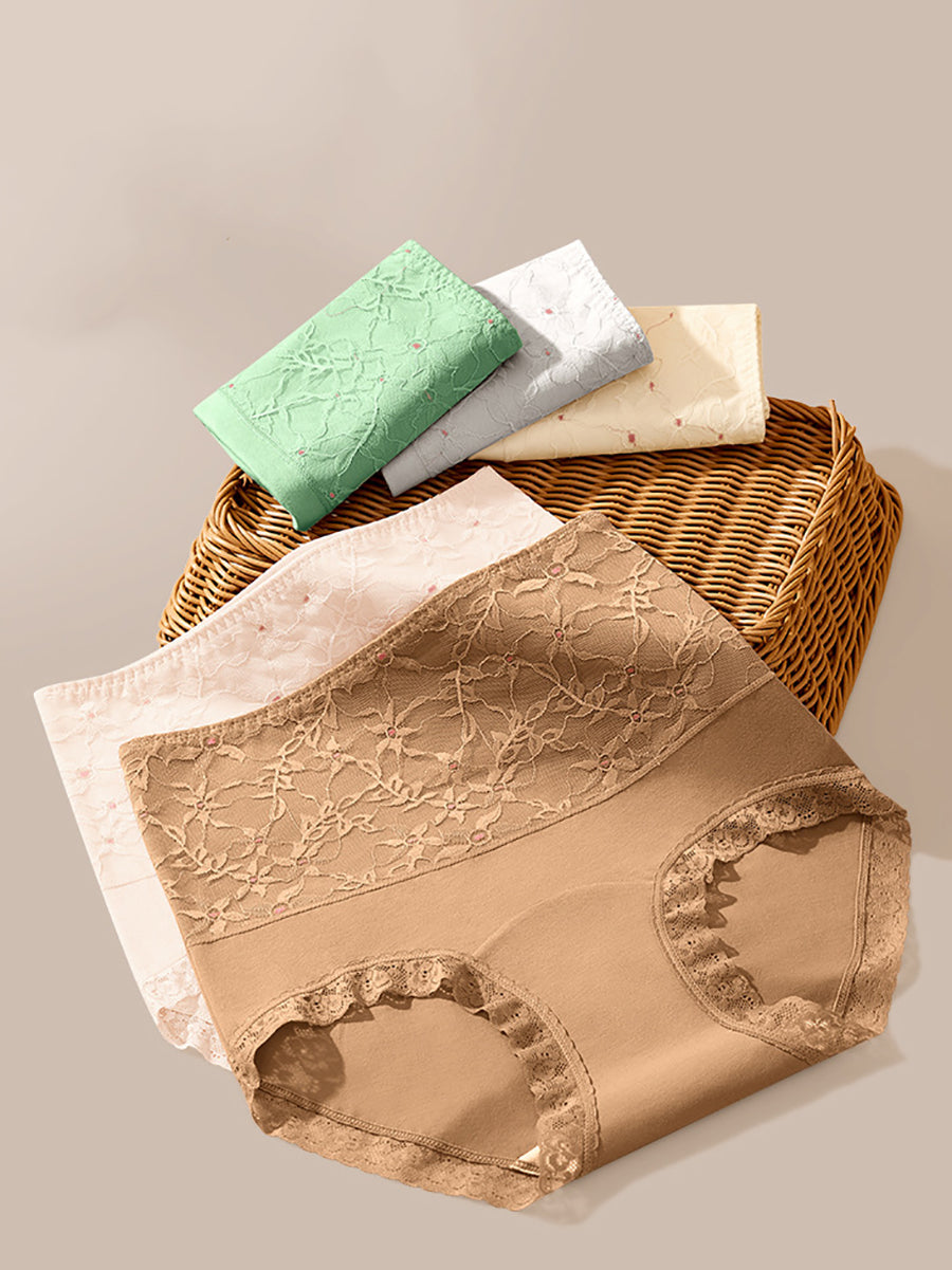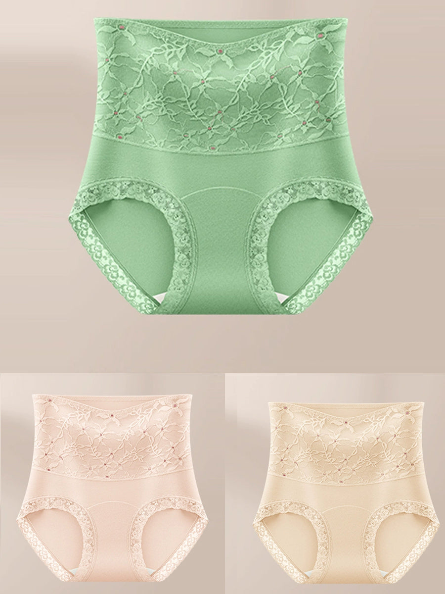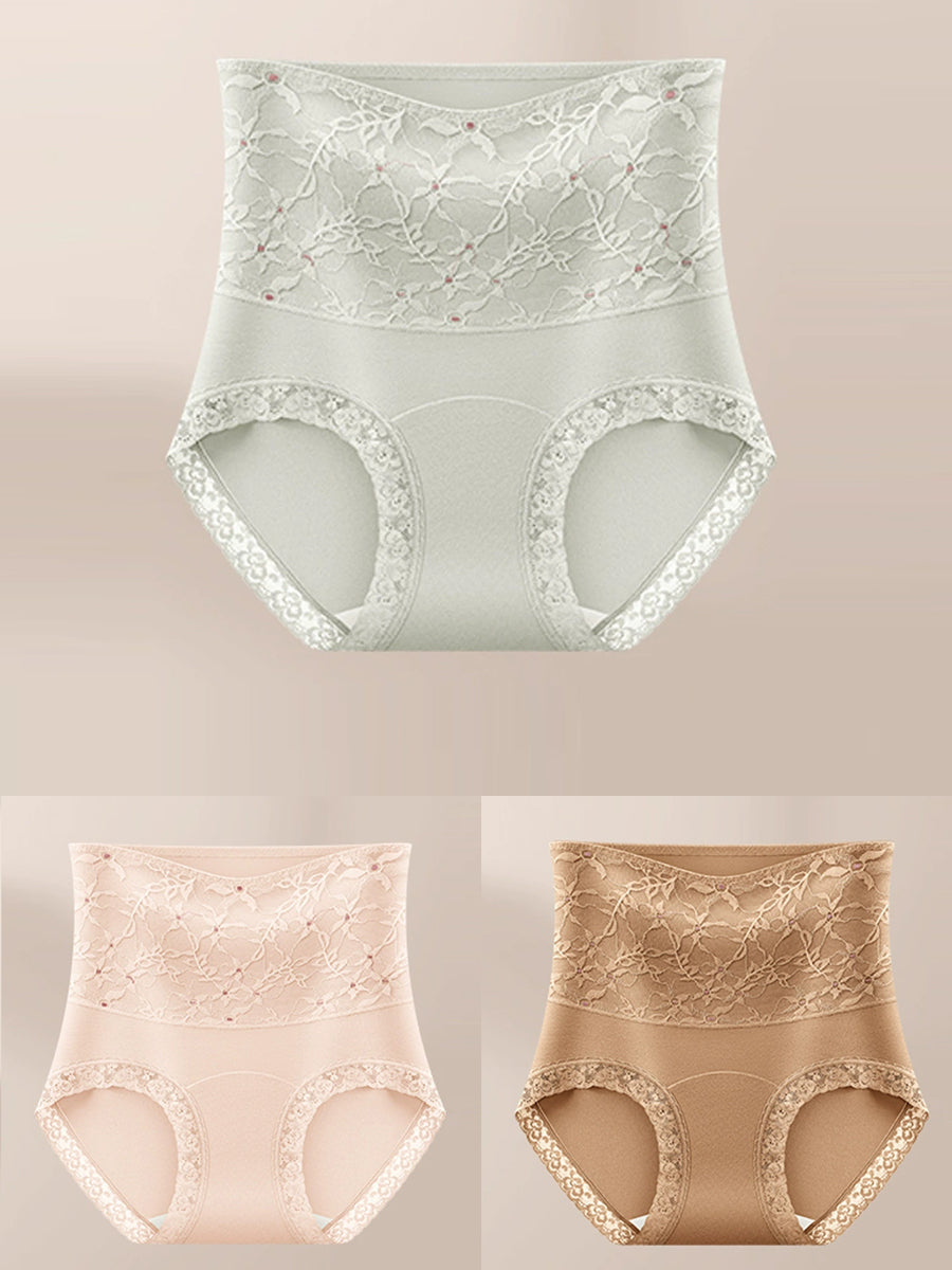 3 piezas de ropa interior de cintura alta con flores artísticas para mujer