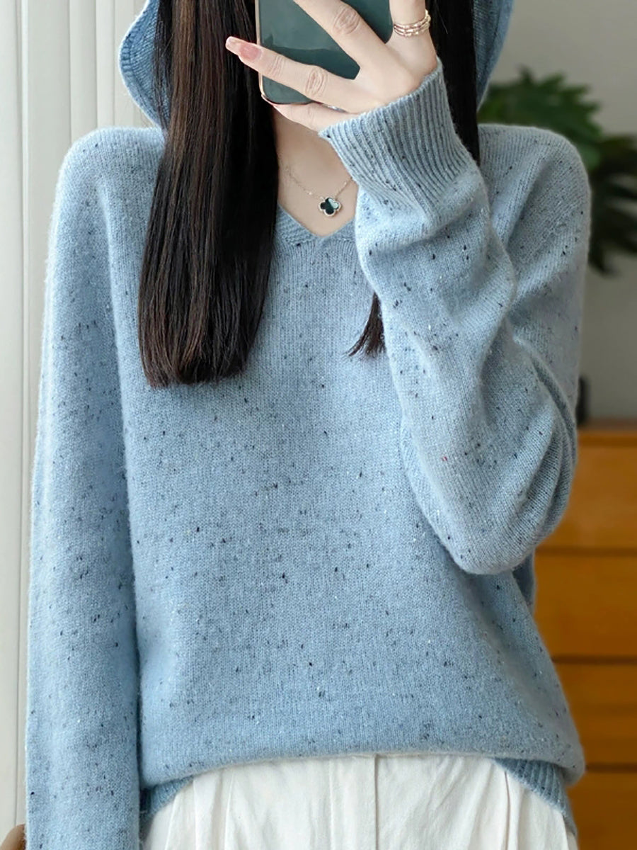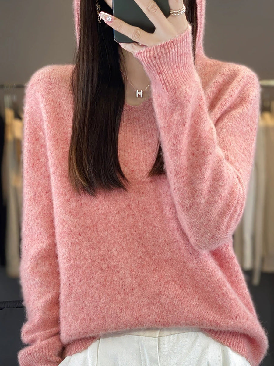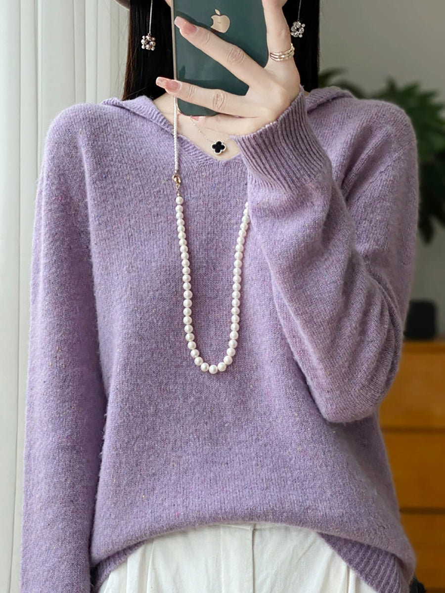 Suéter de lana con capucha de color puro y estilo artístico de primavera para mujer