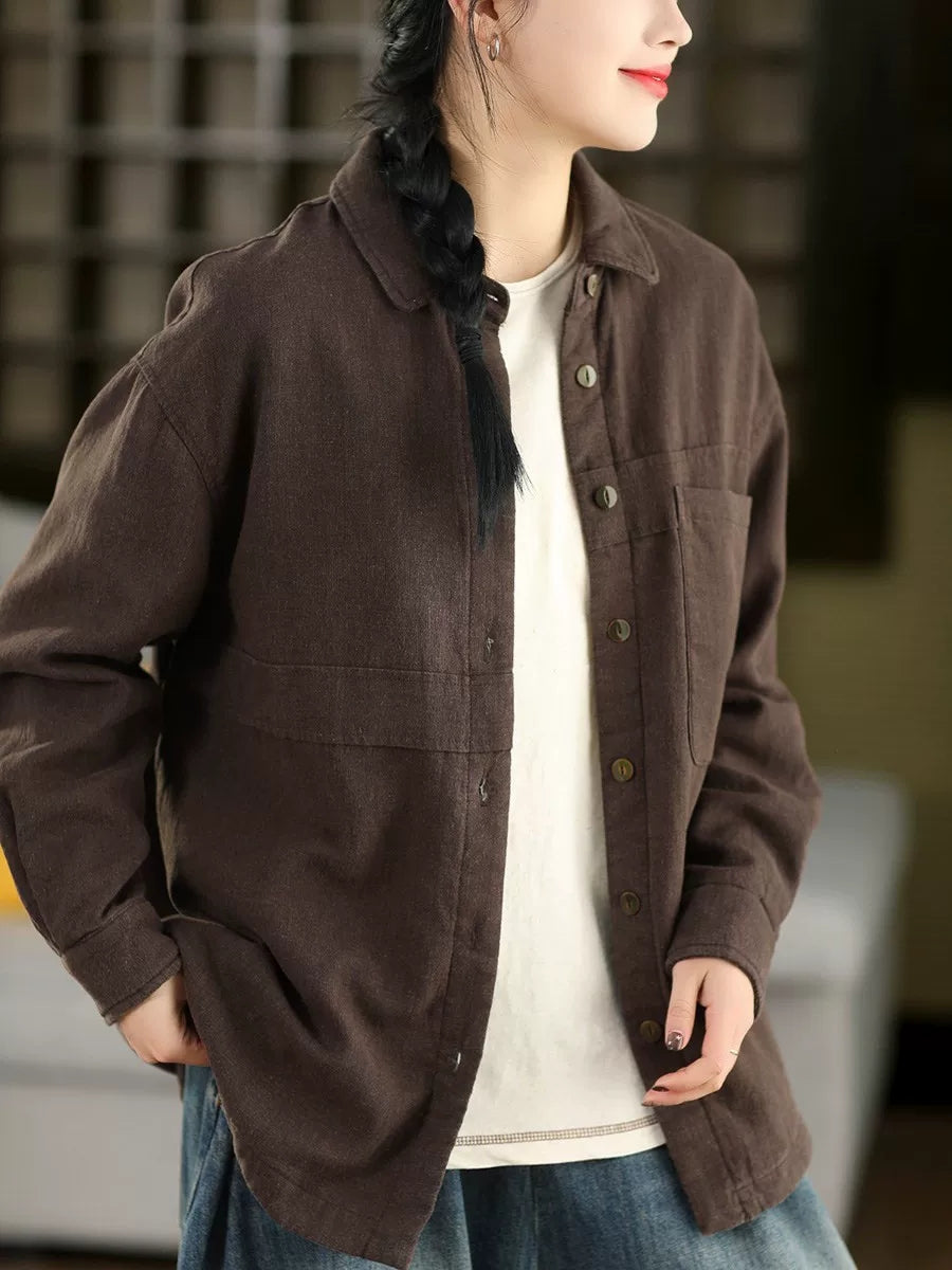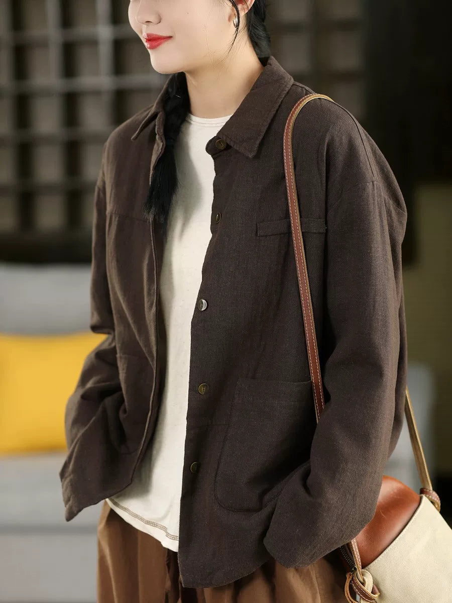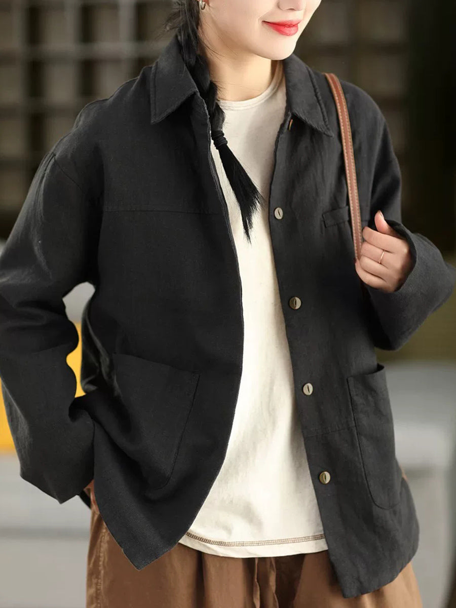 Abrigo de primavera para mujer, 100 % lino, con cuello vuelto y color puro