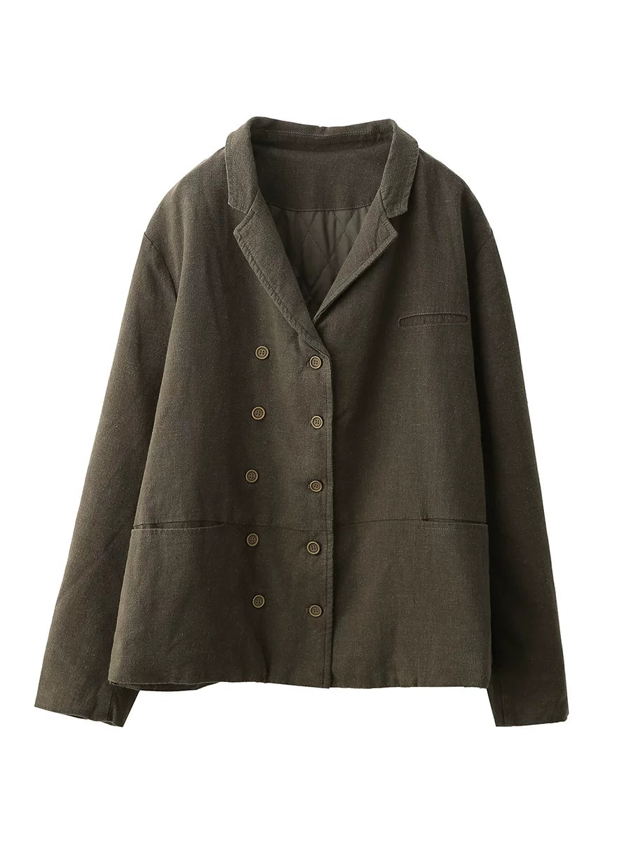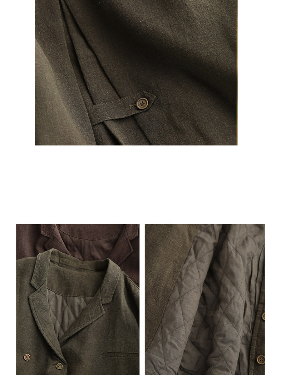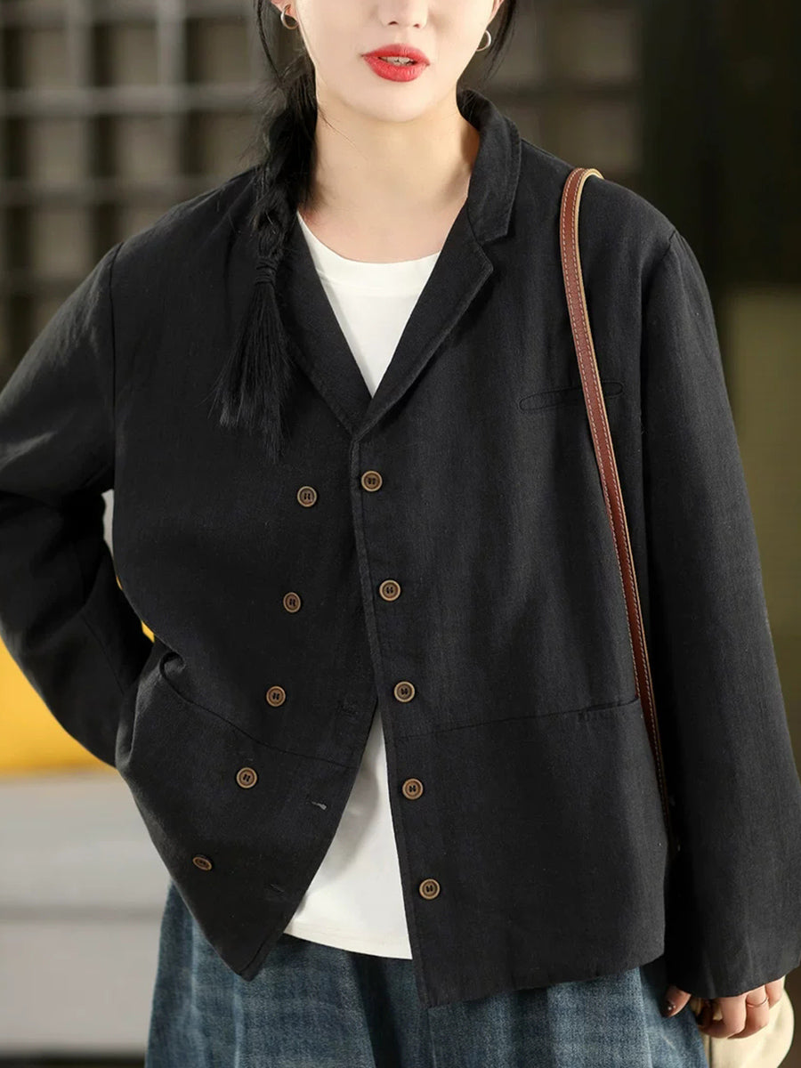 Abrigo de primavera para mujer, 100 % lino, con cuello vuelto y color puro