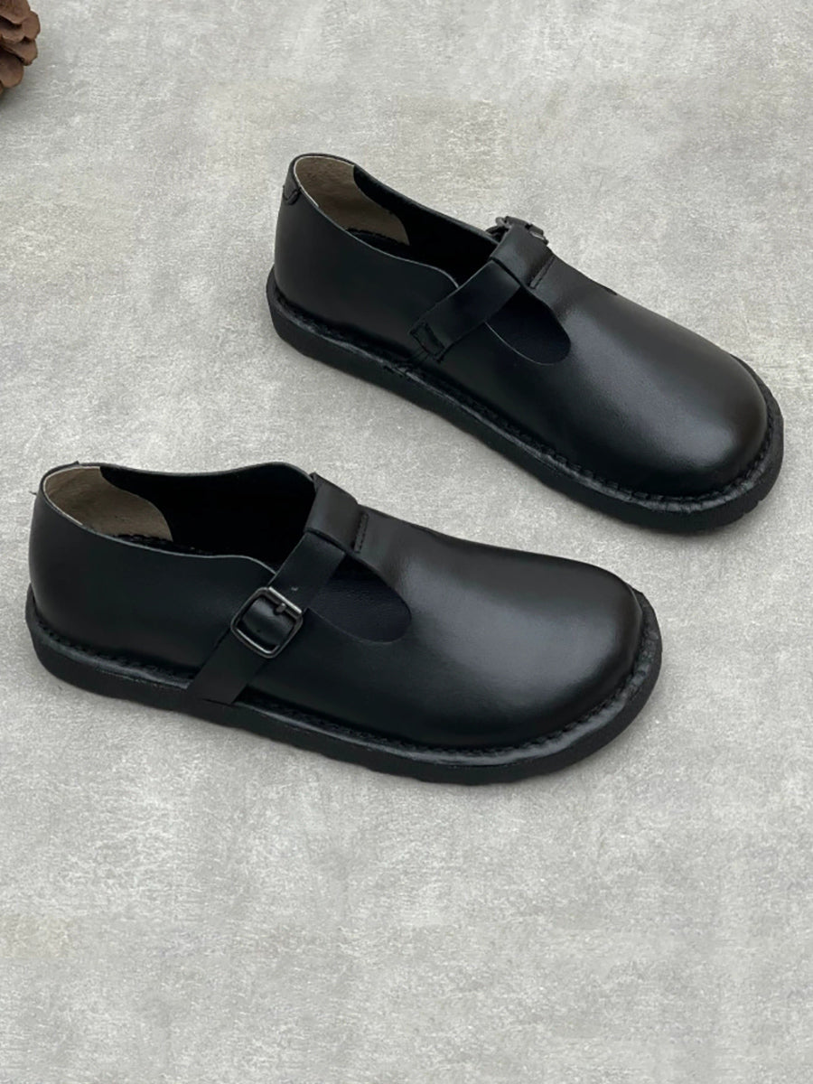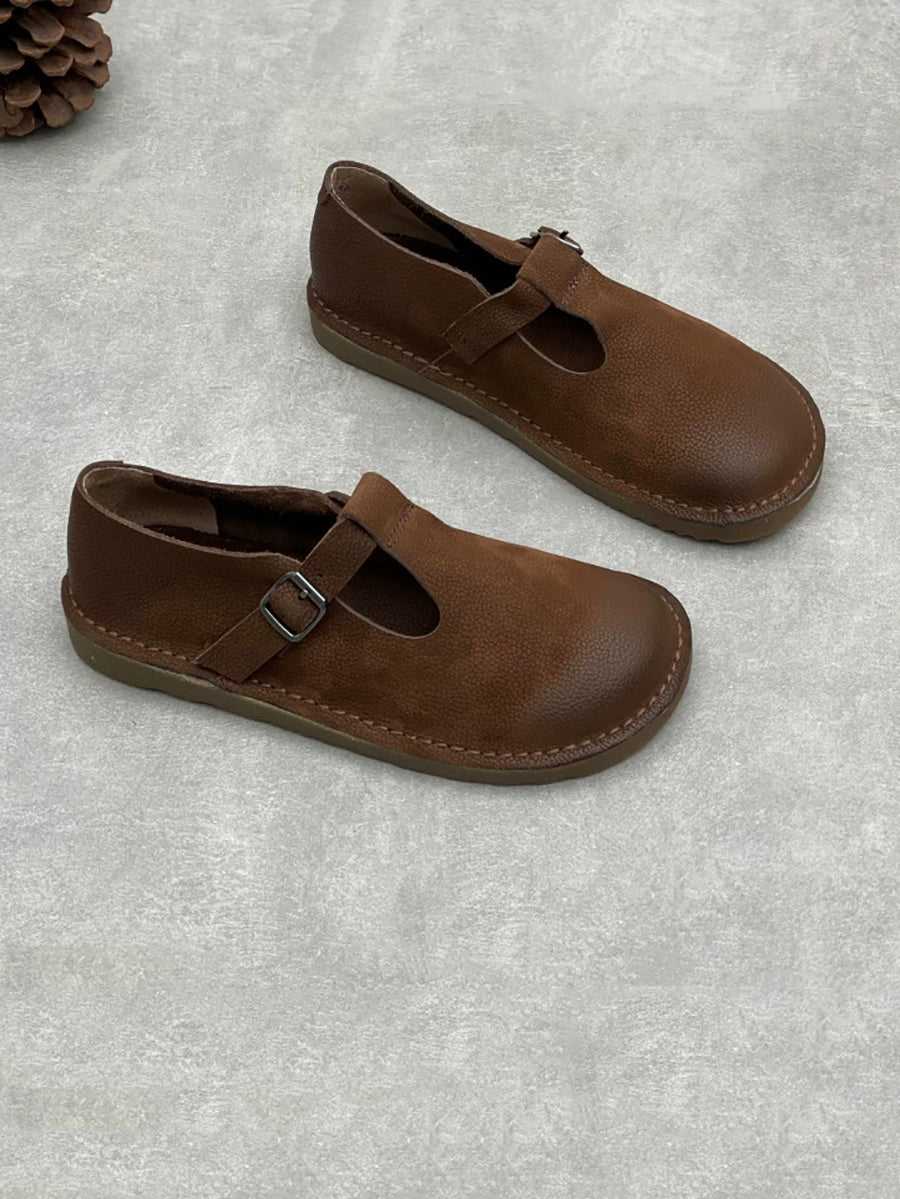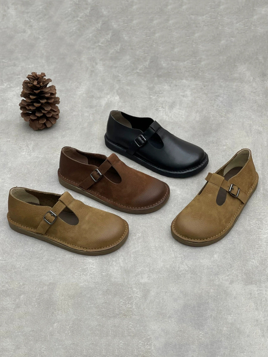 Zapatos planos vintage de piel auténtica para mujer, de primavera