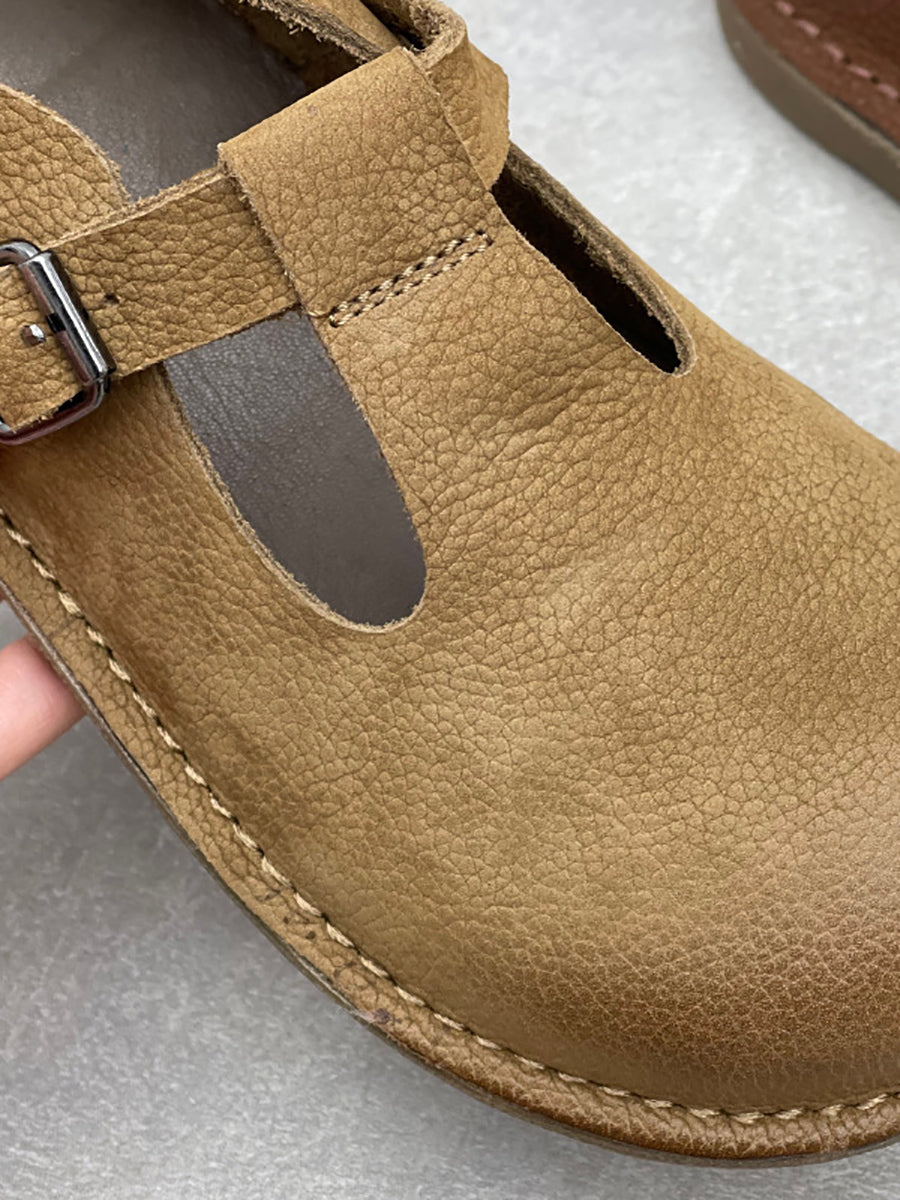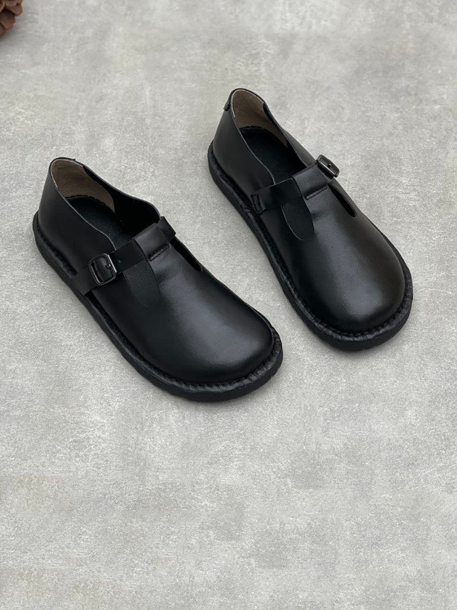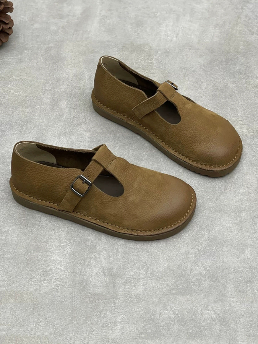 Zapatos planos vintage de piel auténtica para mujer, de primavera