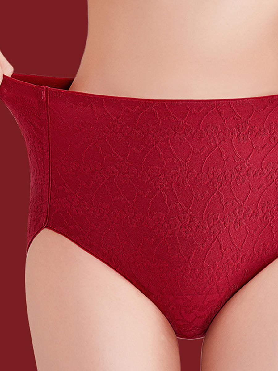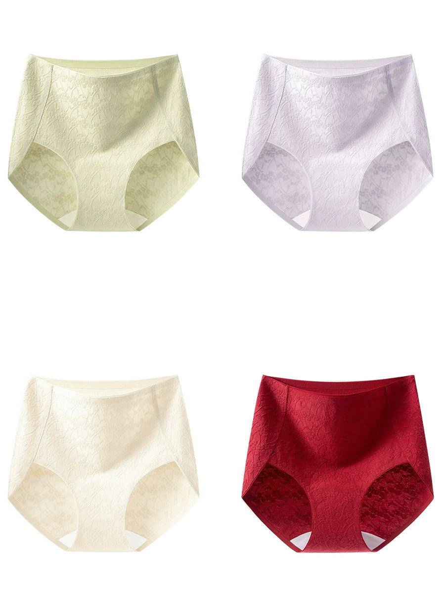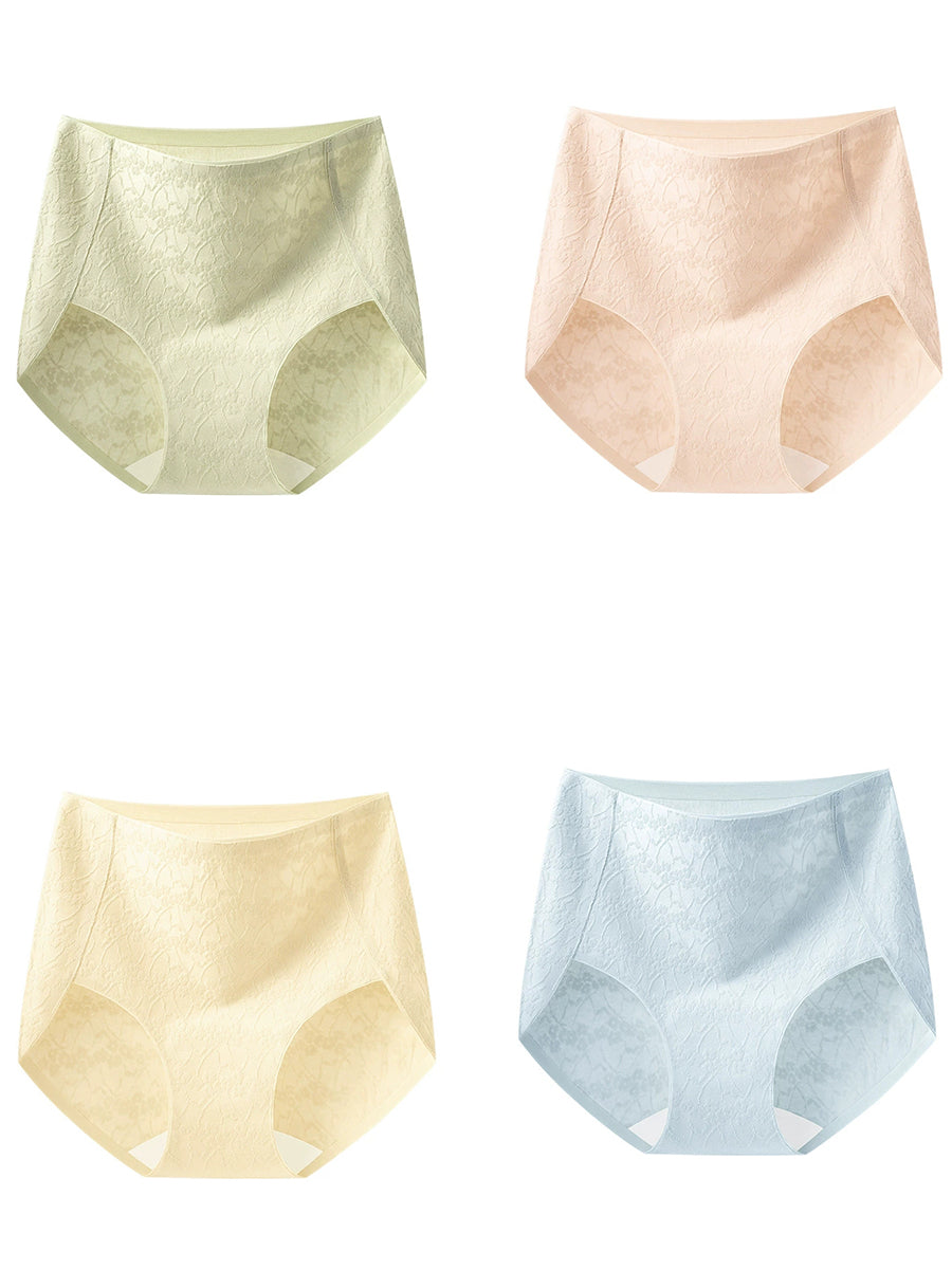 4 piezas de ropa interior de cintura alta de jacquard artístico para mujer
