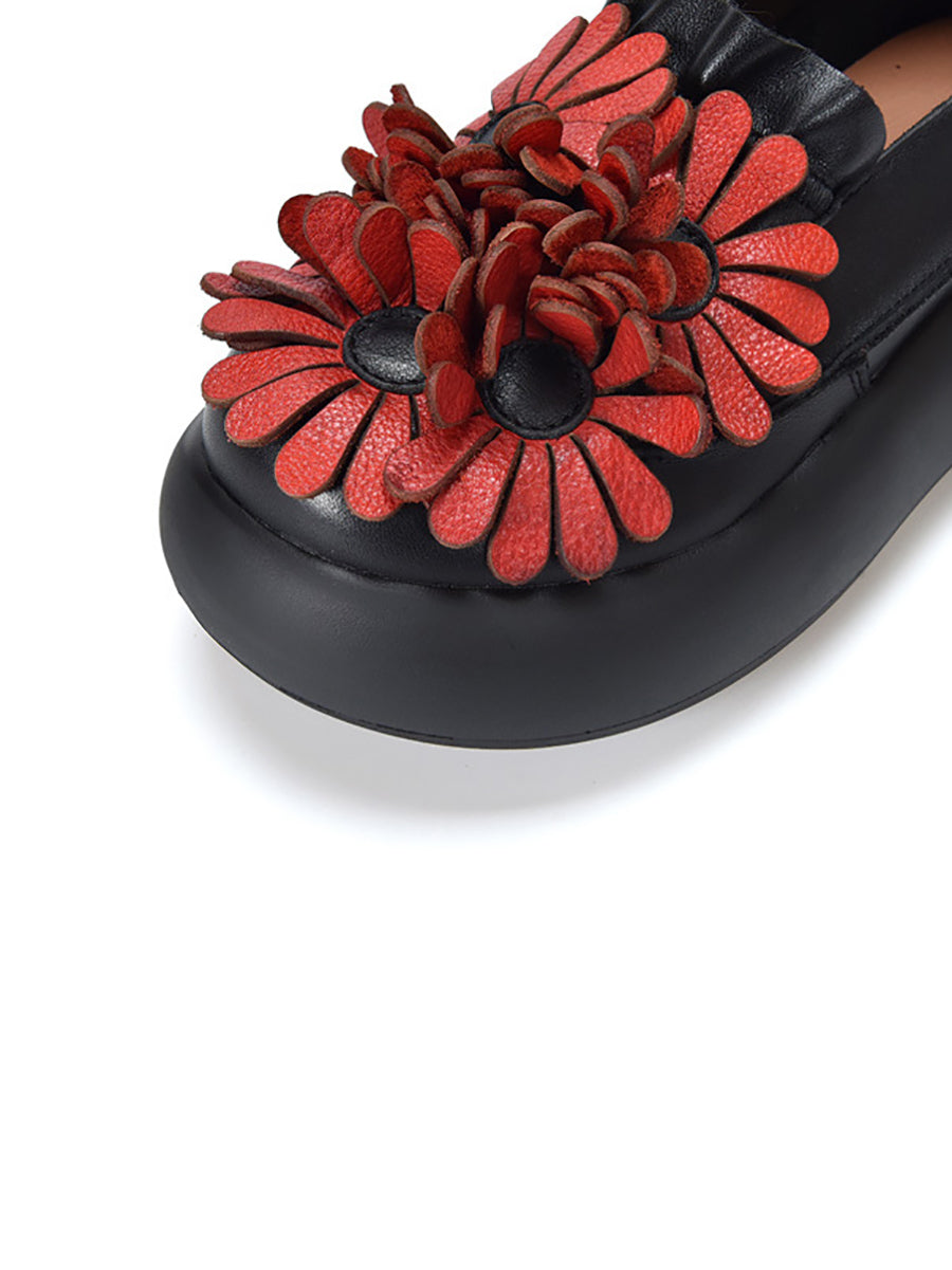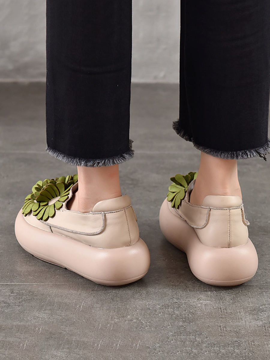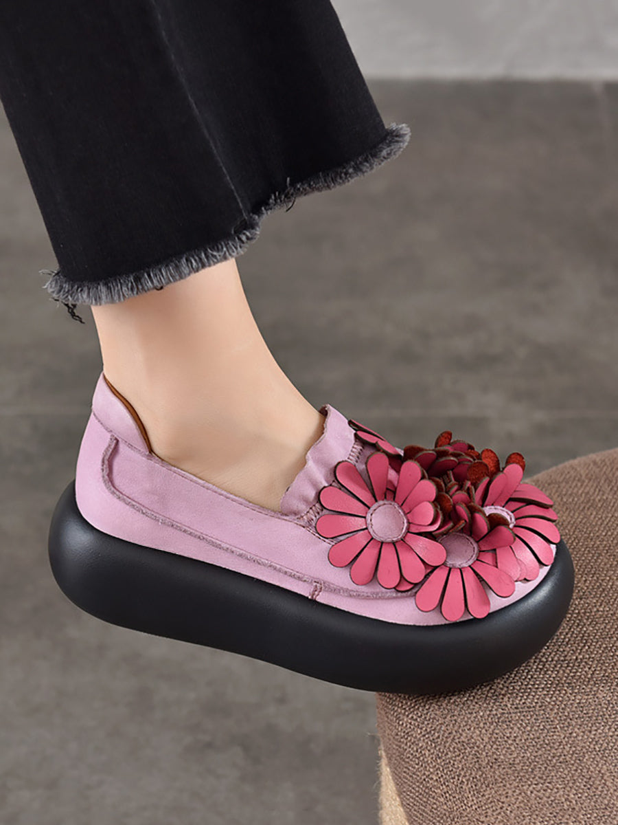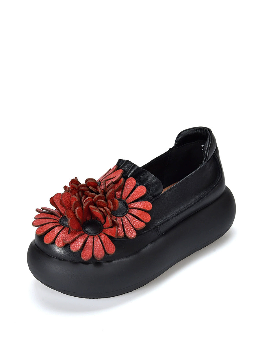Zapatos de plataforma con flores y piel auténtica para mujer, primavera