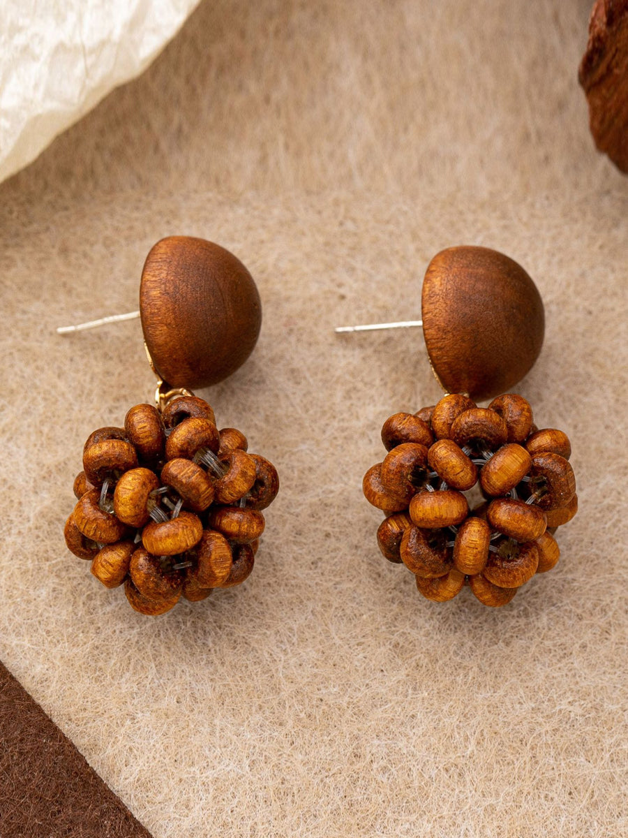 Pendientes vintage de piña de madera para mujer, plata de ley 925