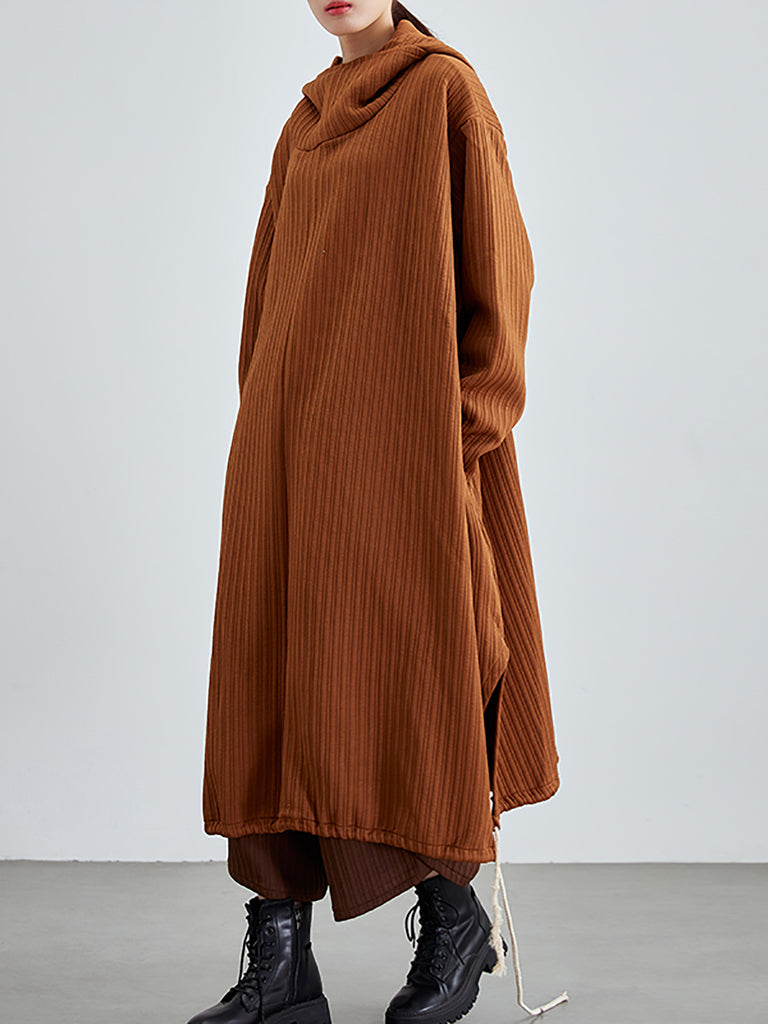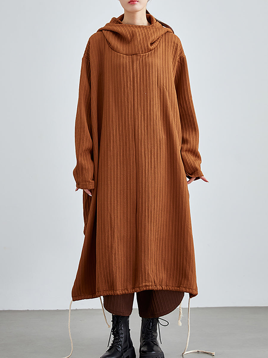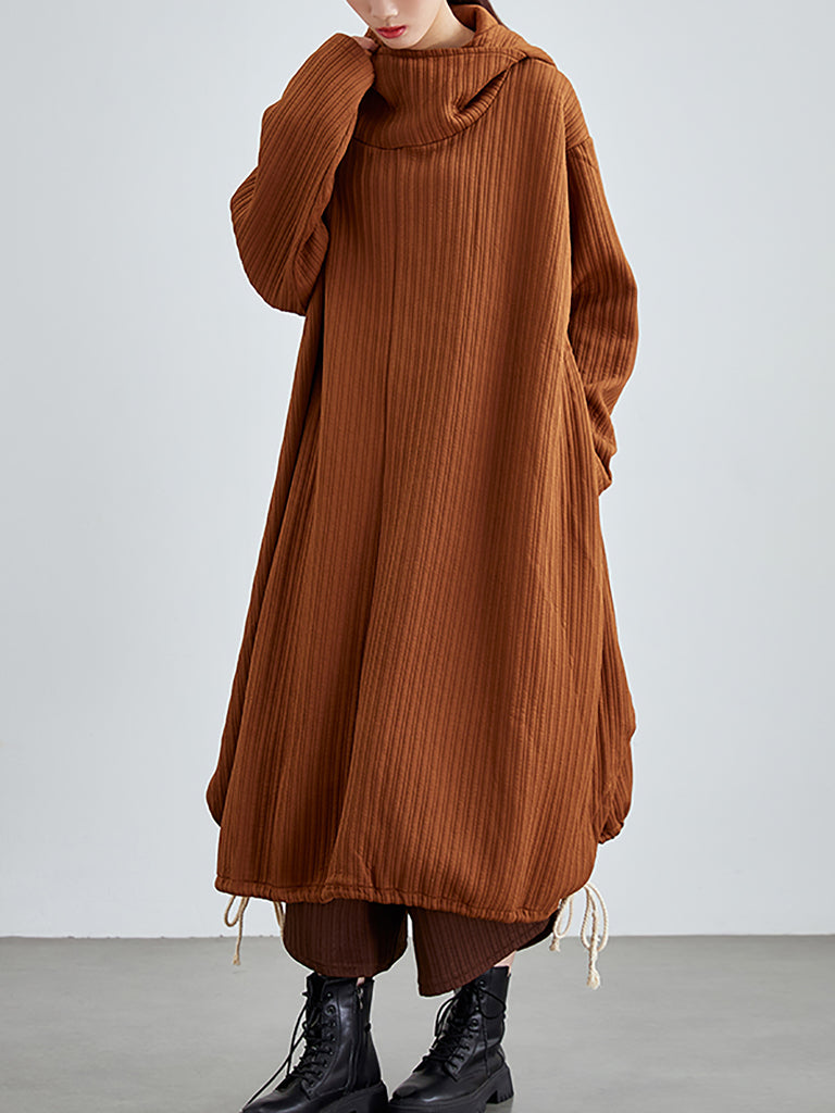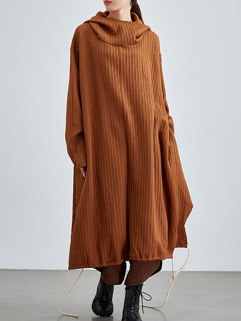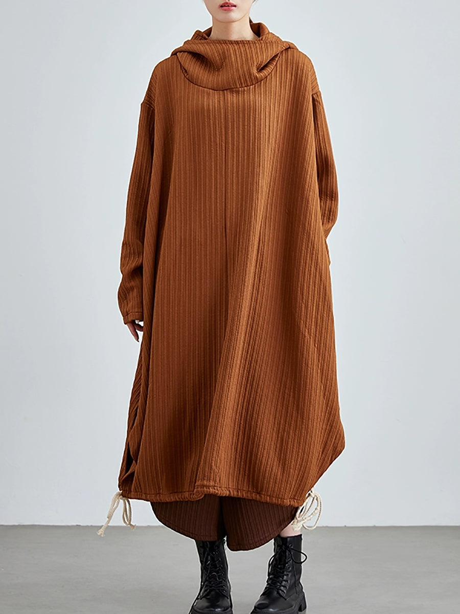 Vestido holgado con capucha de algodón de color liso para mujer, ideal para otoño.
