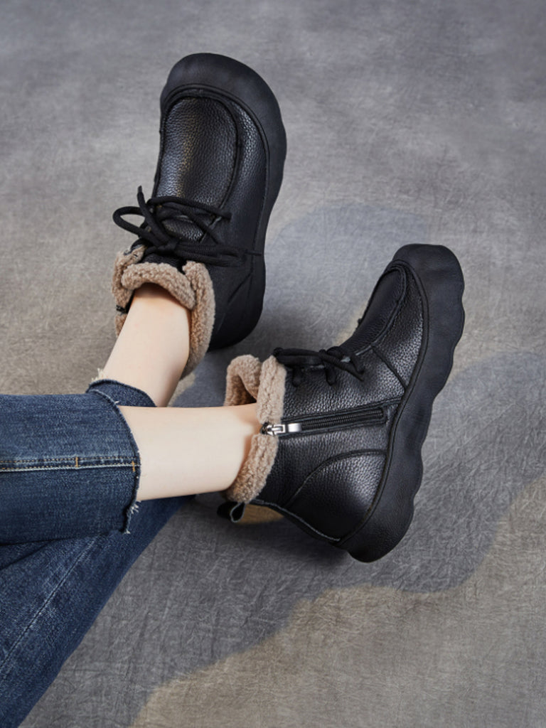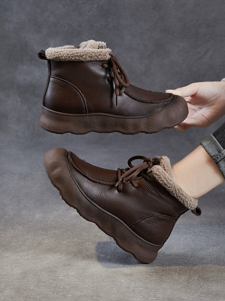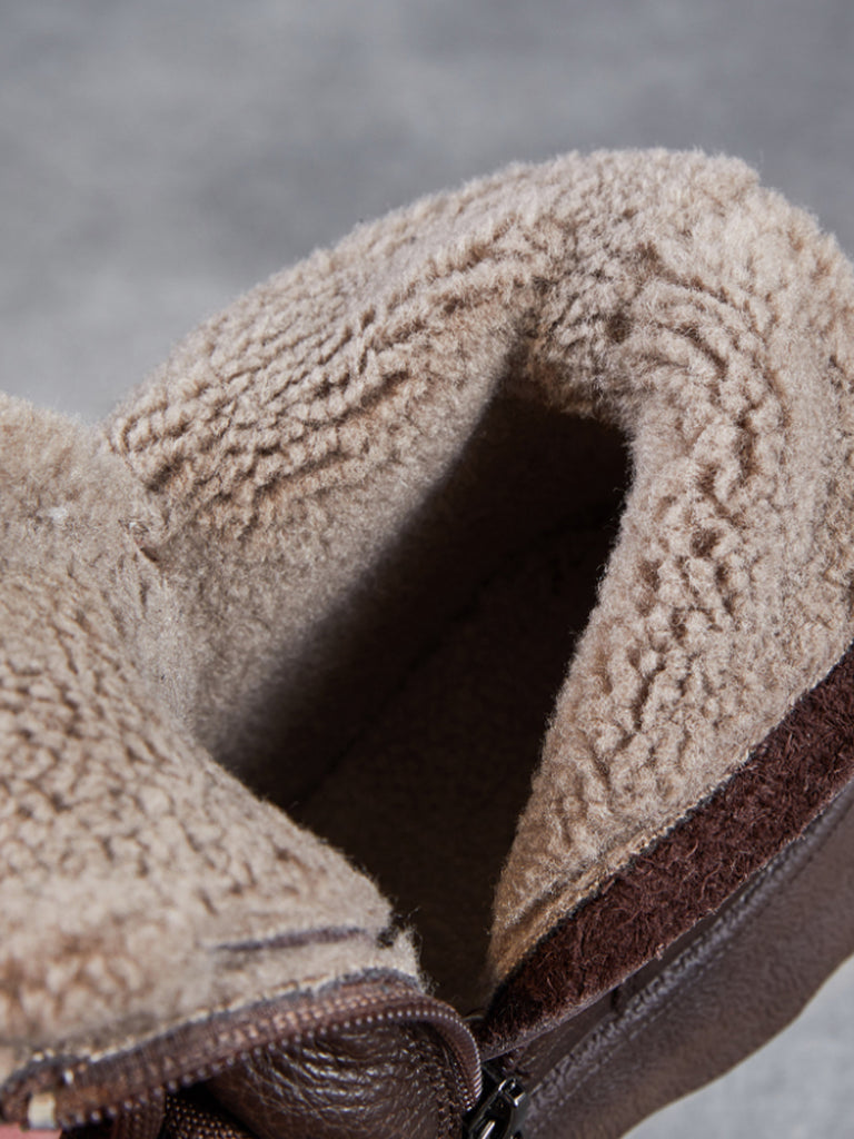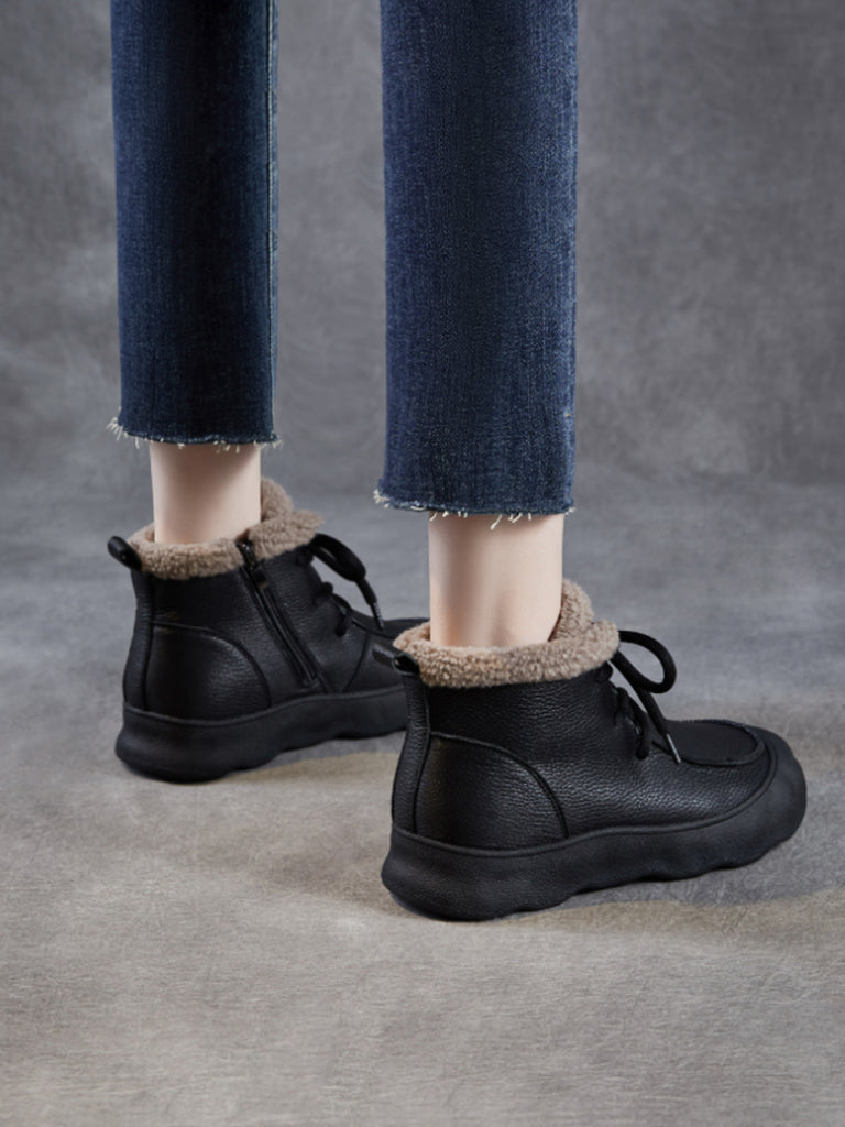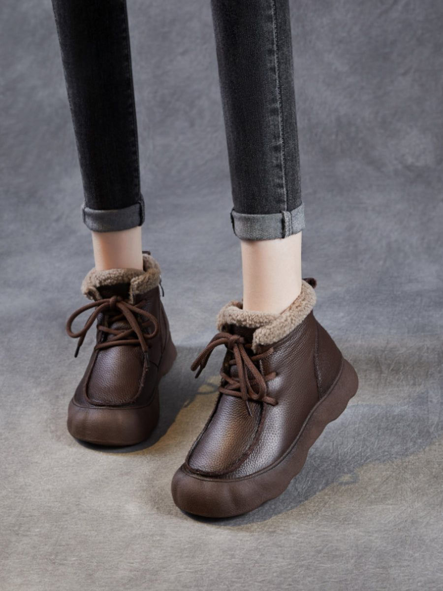 Botines de tobillo vintage de piel auténtica con forro polar para mujer