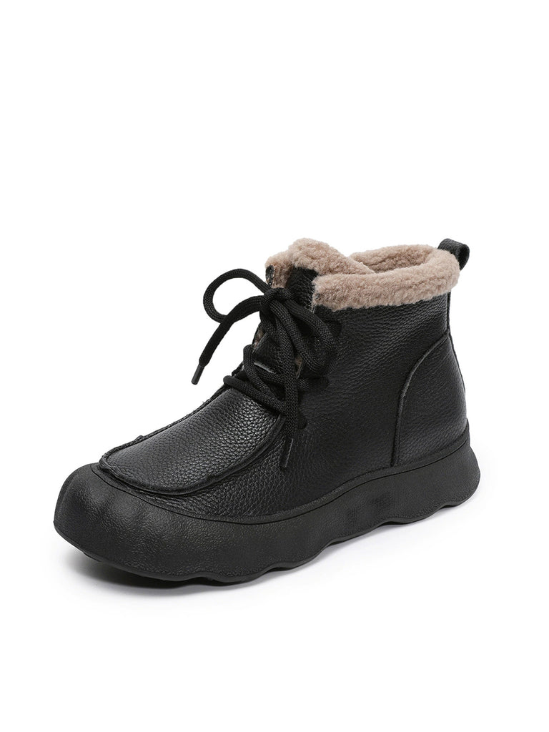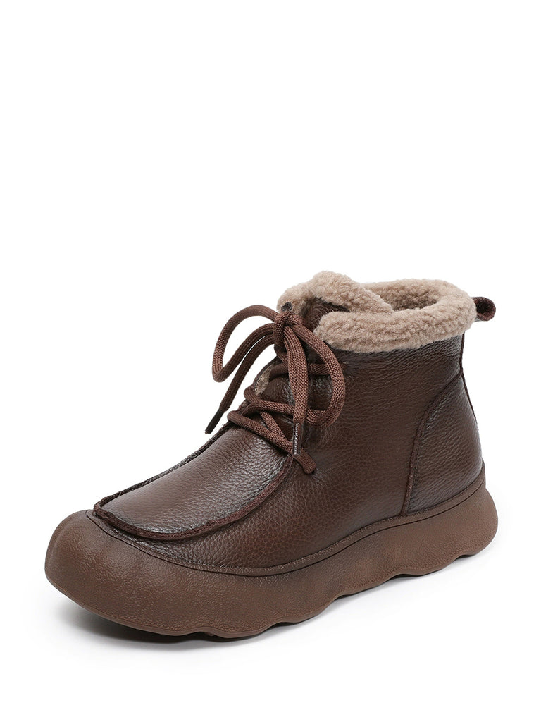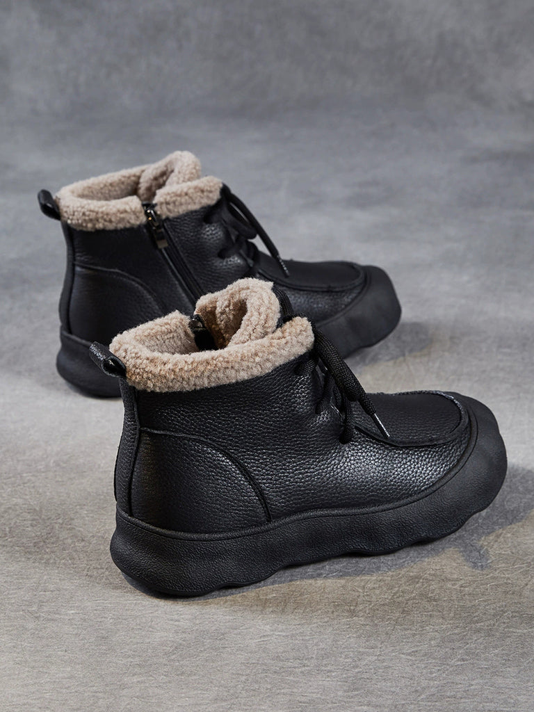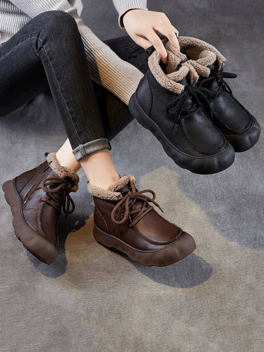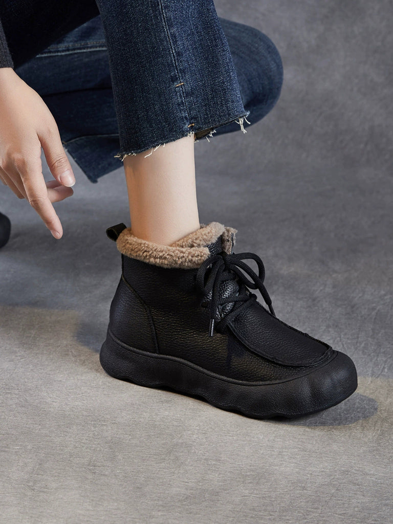 Botines de tobillo vintage de piel auténtica con forro polar para mujer