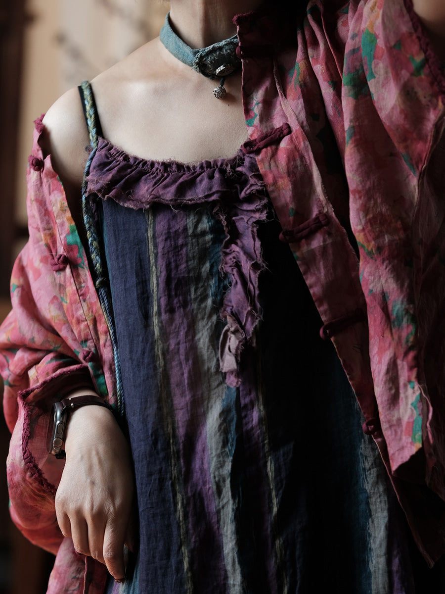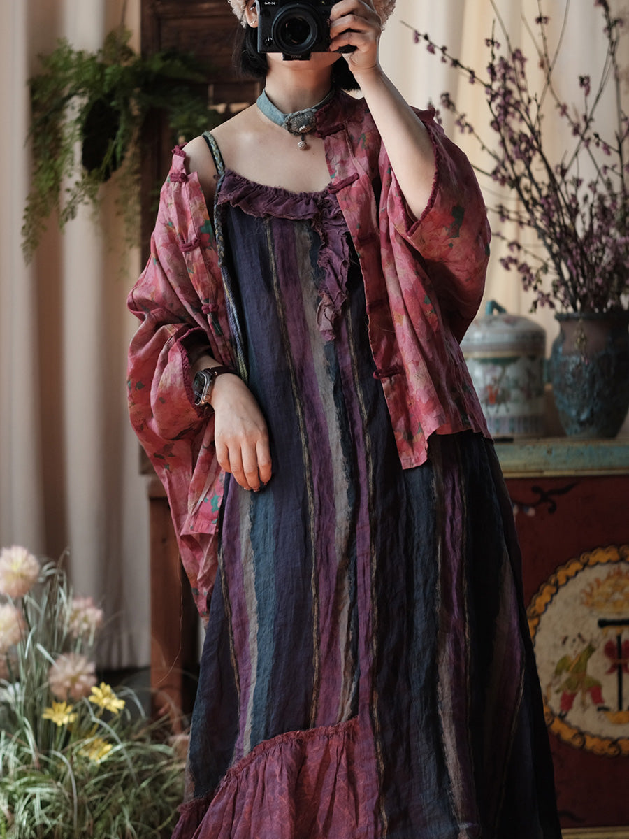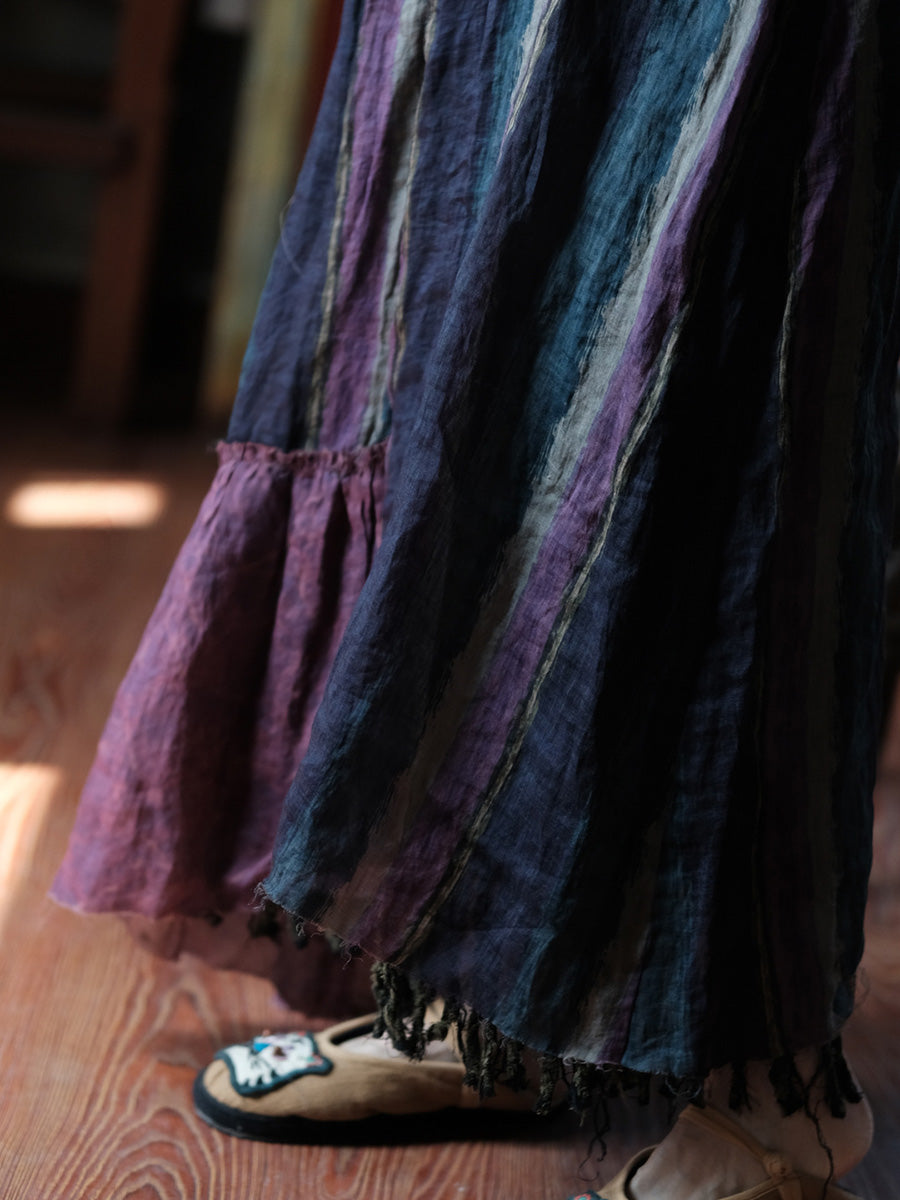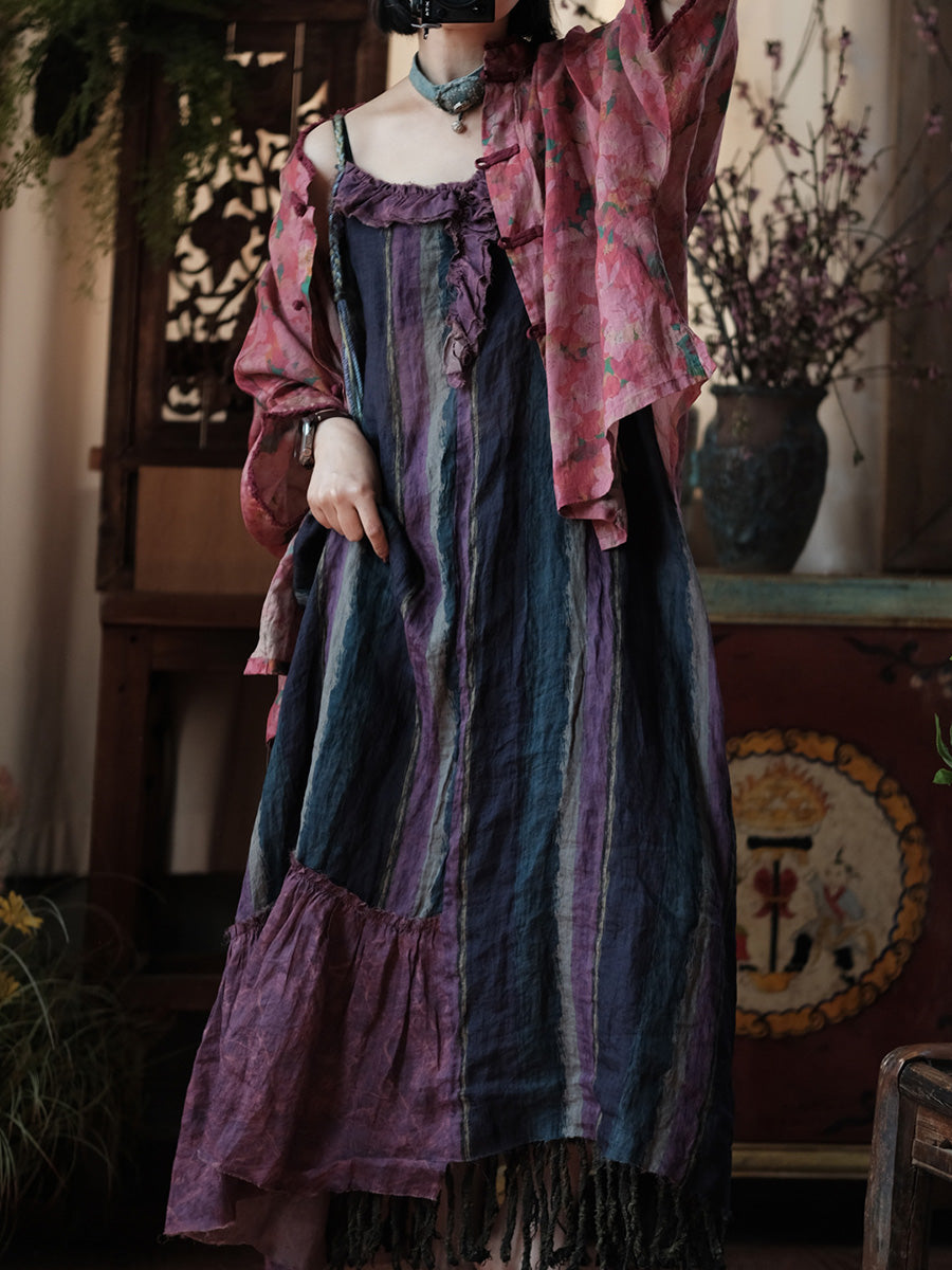 Vestido chaleco de ramio con rayas vintage para mujer, ideal para el verano.