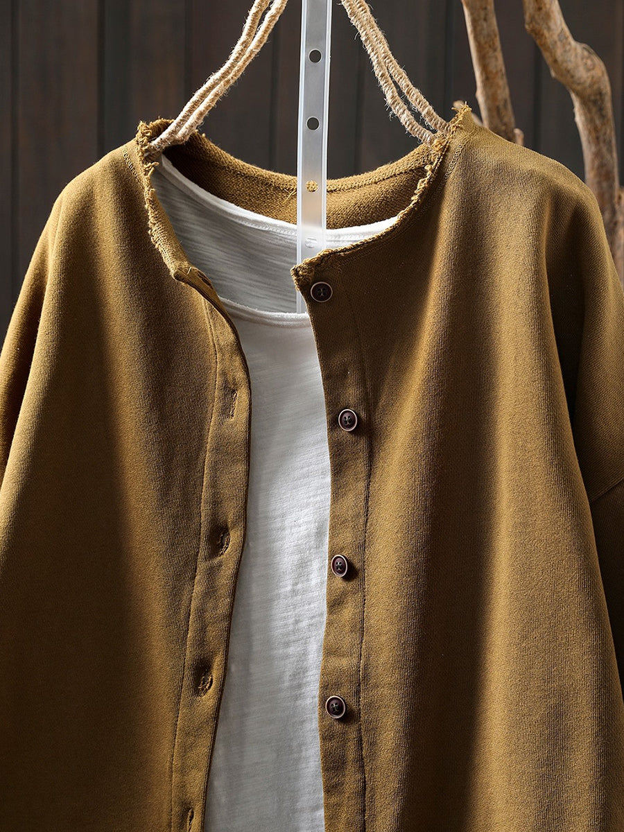 Abrigo de algodón con cuello redondo y color puro para mujer, primavera